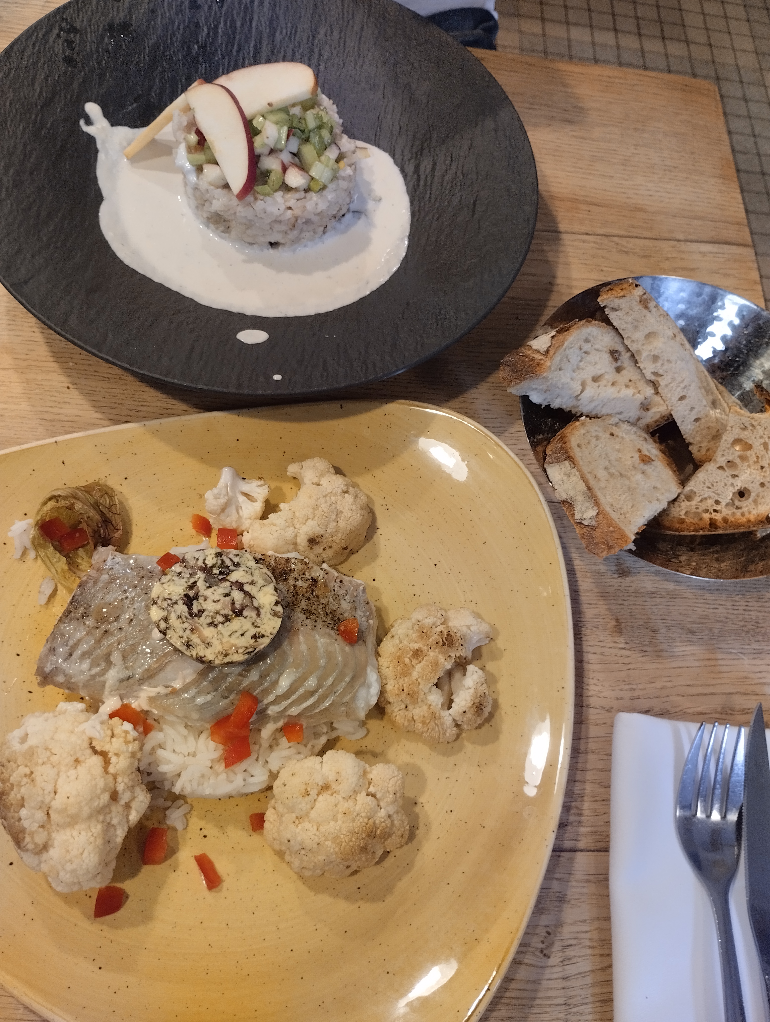 Le personnel est très sympathique et nous apprécions leurs efforts et leurs réflexions pour essayer de nous expliquer les plats en anglais (notre vocabulaire français était assez limité). La soupe de betterave + les entrées au fromage bleu étaient étonnamment bonnes. Nous avons commandé le risotto (végétarien) qui était bien aussi, le poisson nous convenait bien. Je reviendrai certainement pour essayer d'autres plats la prochaine fois.