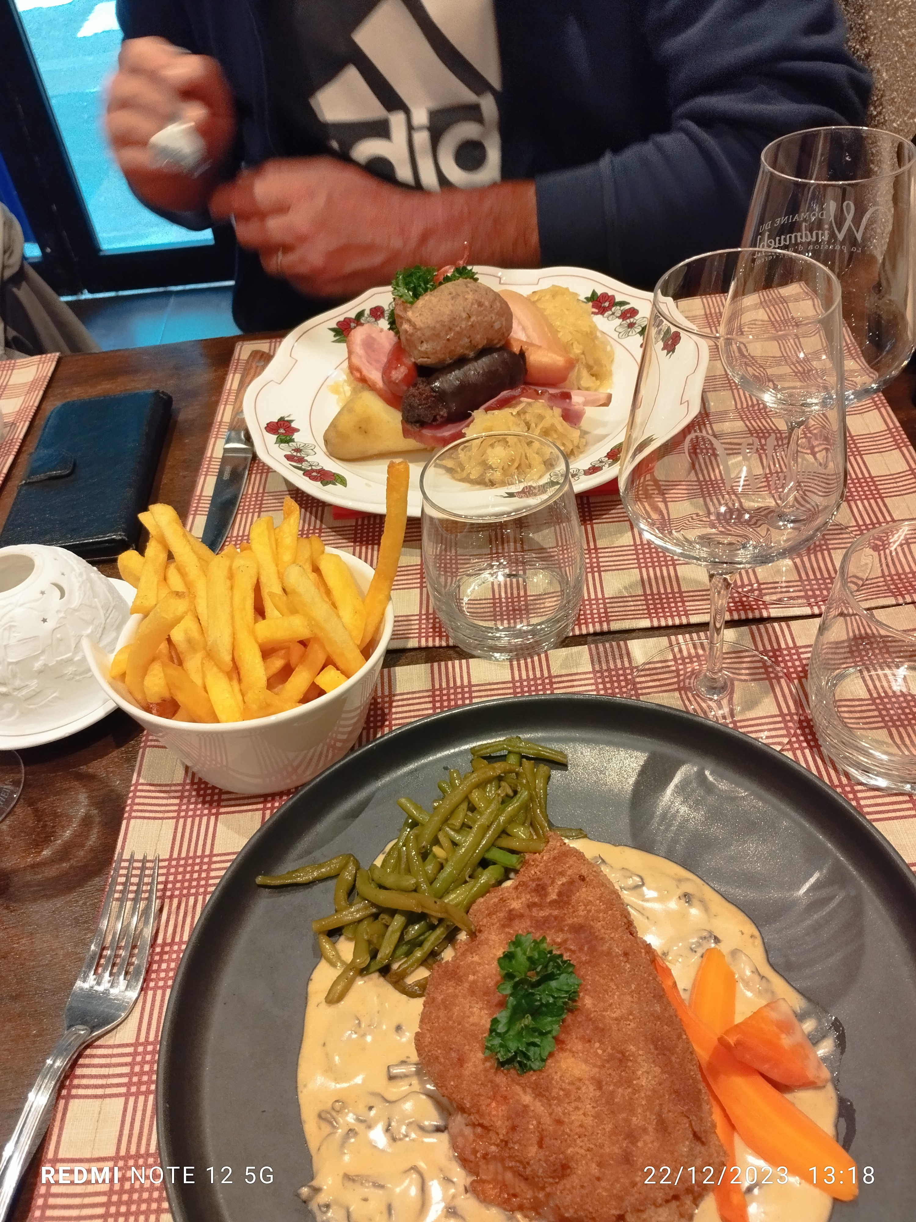 J'ai été déçu de la choucroute,pas de jarret et beaucoup de poitrine, du boudin noir et une boulette ! La serveuse ne rempli pas la même quantité de vin que son collègue !