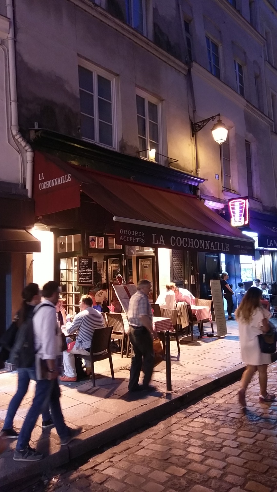 Si d'aventure vous veniez à vous engager dans ce quartier aux rues étroites et par chance, car en la matière le galent ne suffit pas, arrivez à vous défaire des griffes des restaurateurs peu scrupuleux vous abordant pour un repas avec apero offert sans répit, vous trouverez à la Cochonnaille un havre de paix inattendu. Le patron est fort sympathique et la ripaille fort goûtue pour un prix honnête vu la localisation et la qualité des plats. En un mot, ce restaurant est validé par la Street.