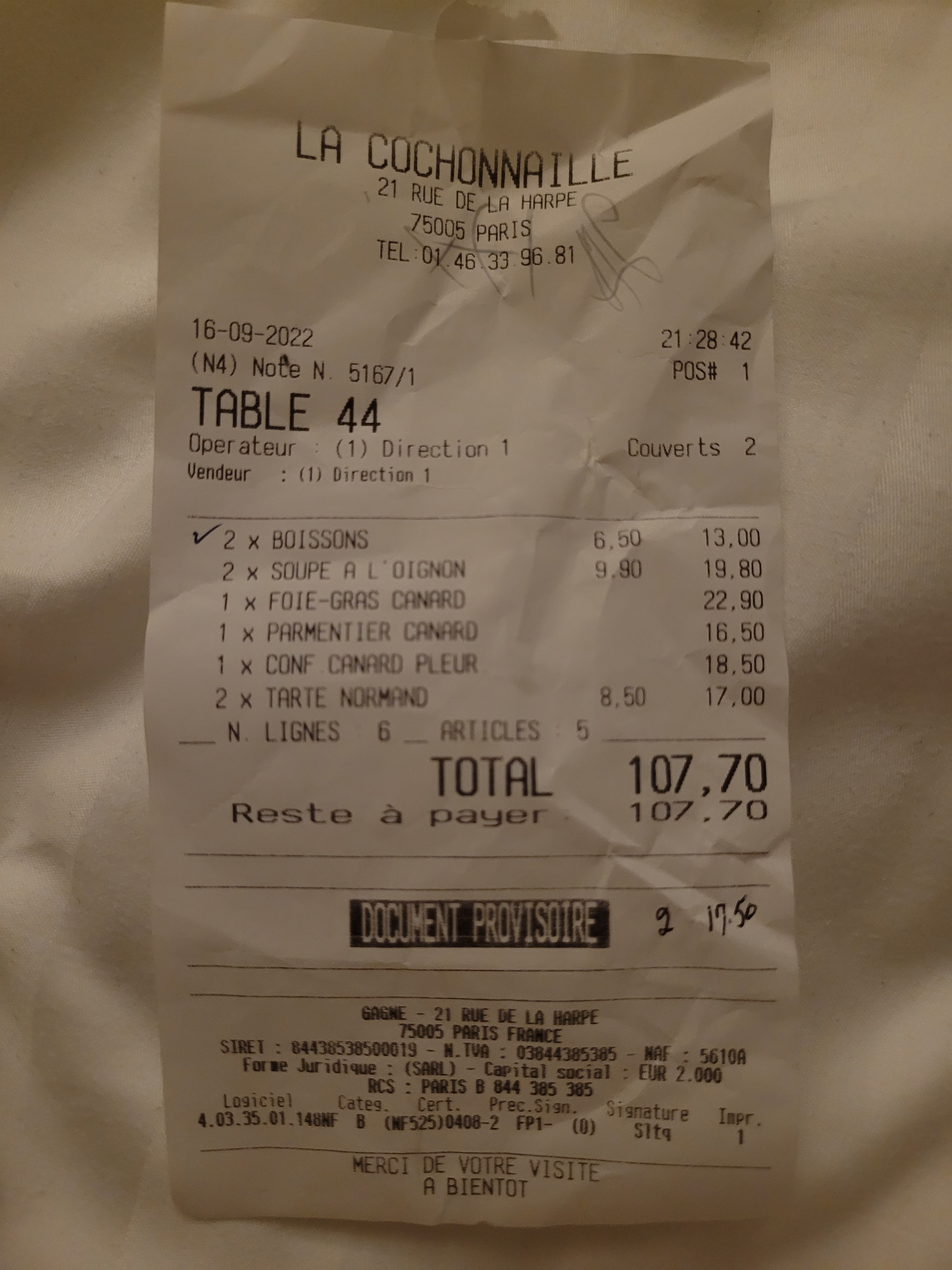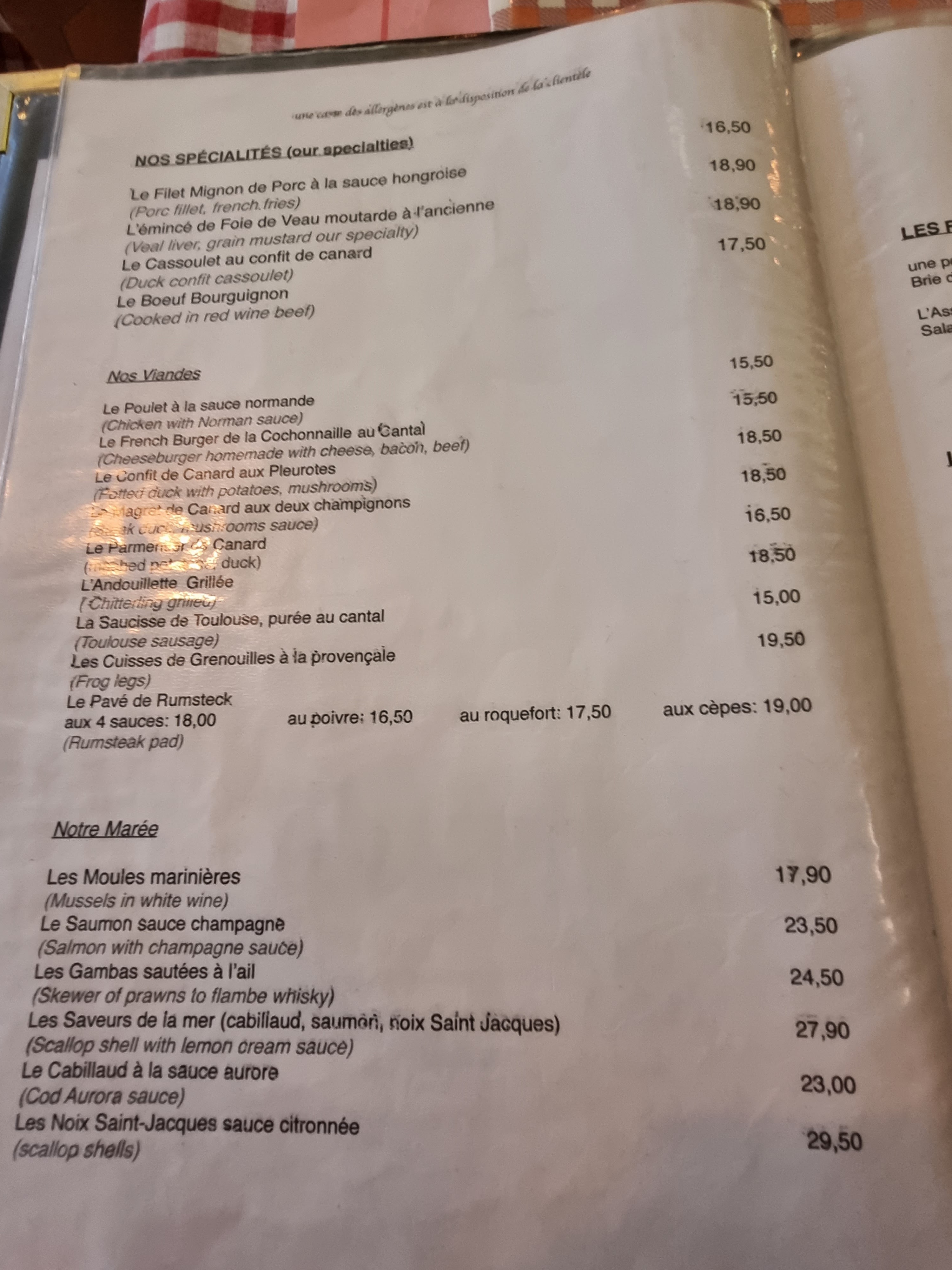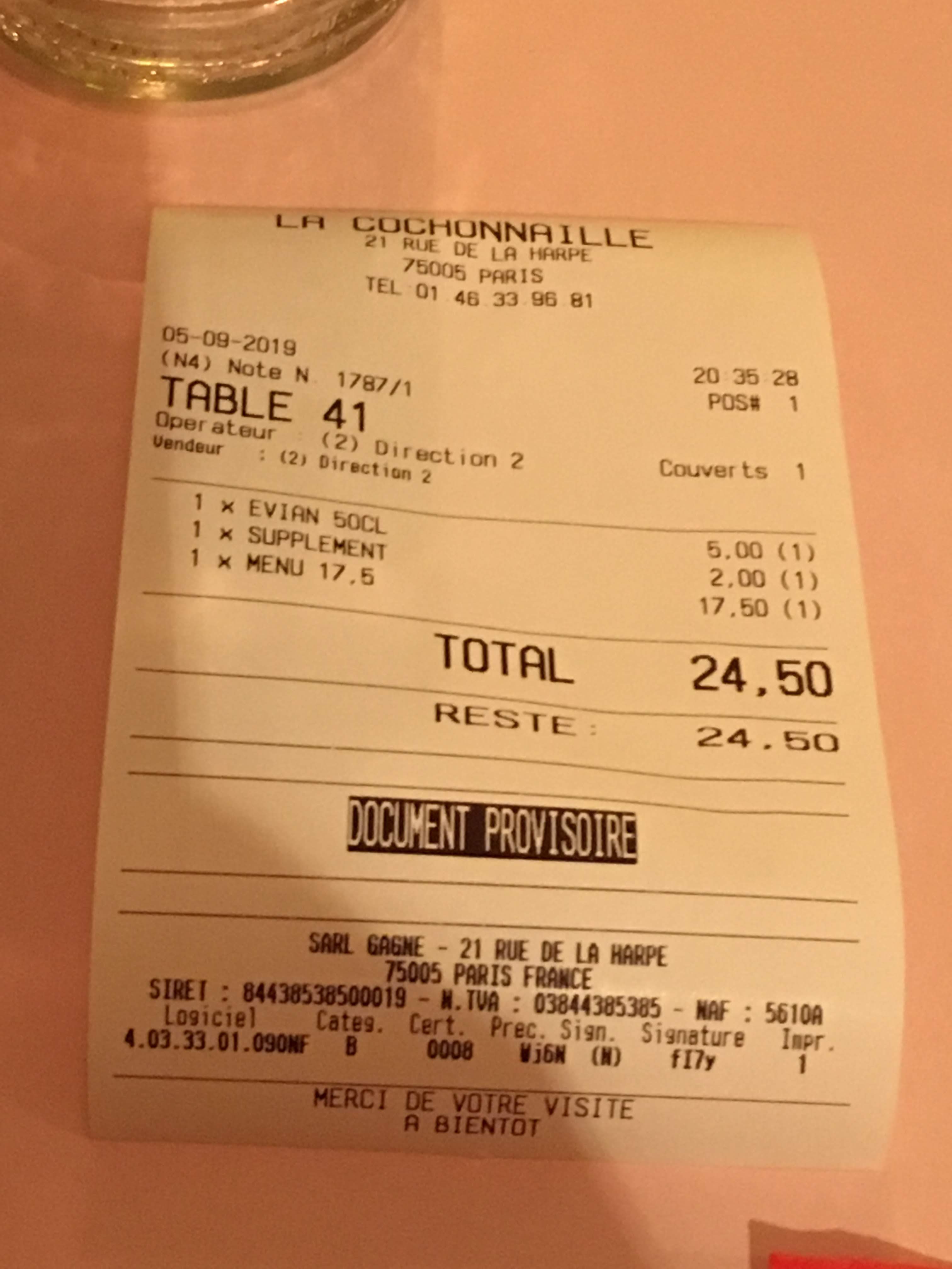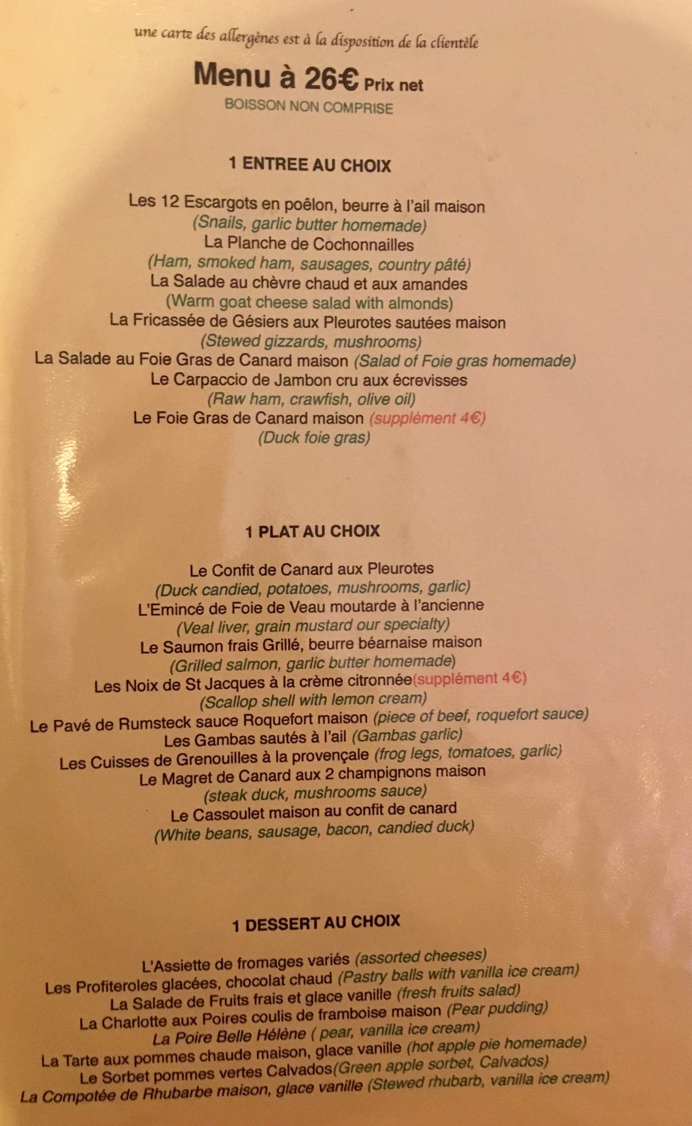 Nous avons pris un menu à 10€, le midi en semaine, avec entrée, plat, dessert, au centre de Paris ! Exceptionnel !