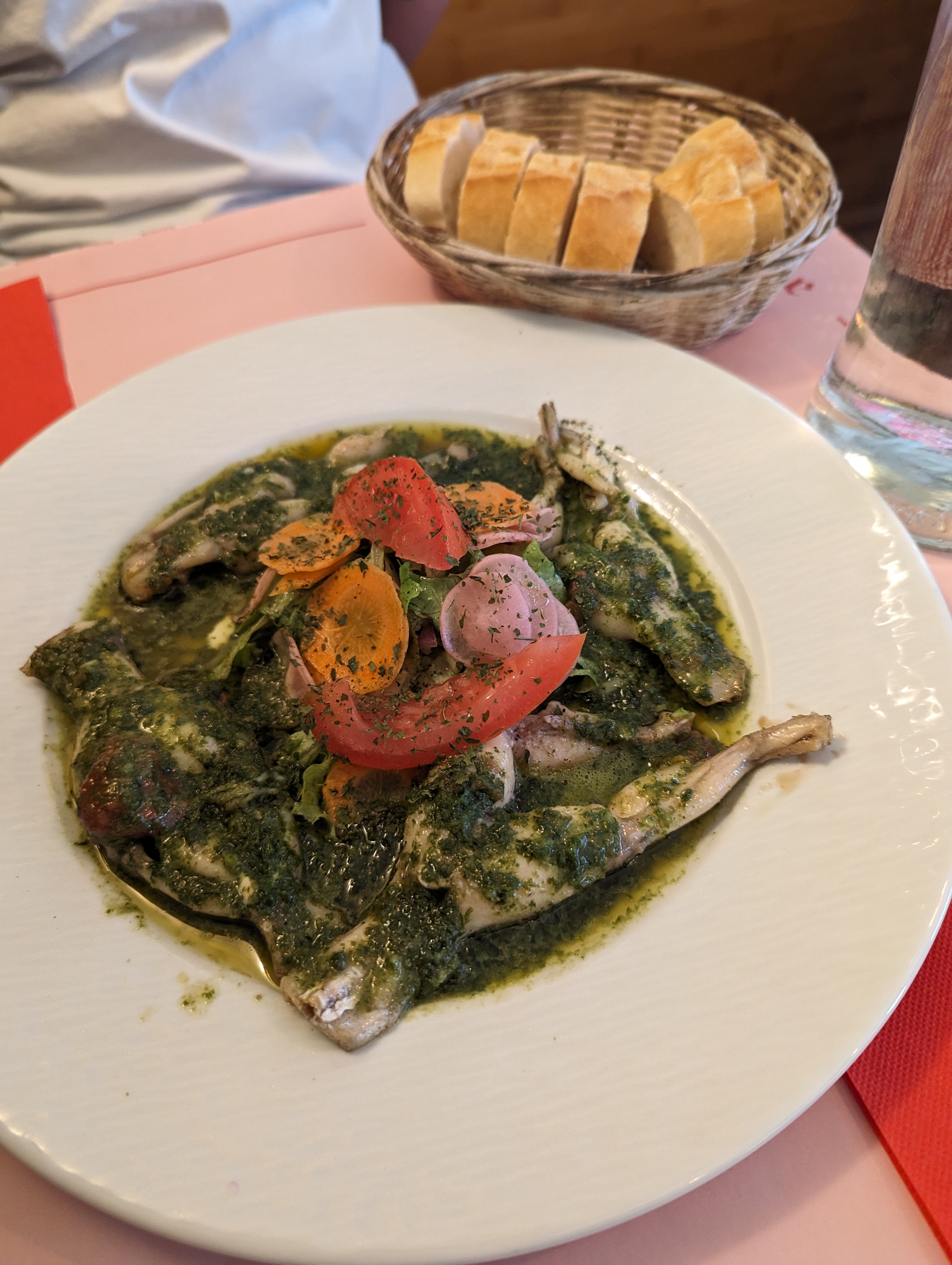 Nous sommes venus ici pour dîner très tard et avec un grand groupe de personnes. Nous ne parlons pas très bien français mais ils étaient très gentils et nous ont aidés. La nourriture était excellente et nous avons eu plein de pain et d'eau gratuits. La nourriture est également très abordable et vaut vraiment le coup !