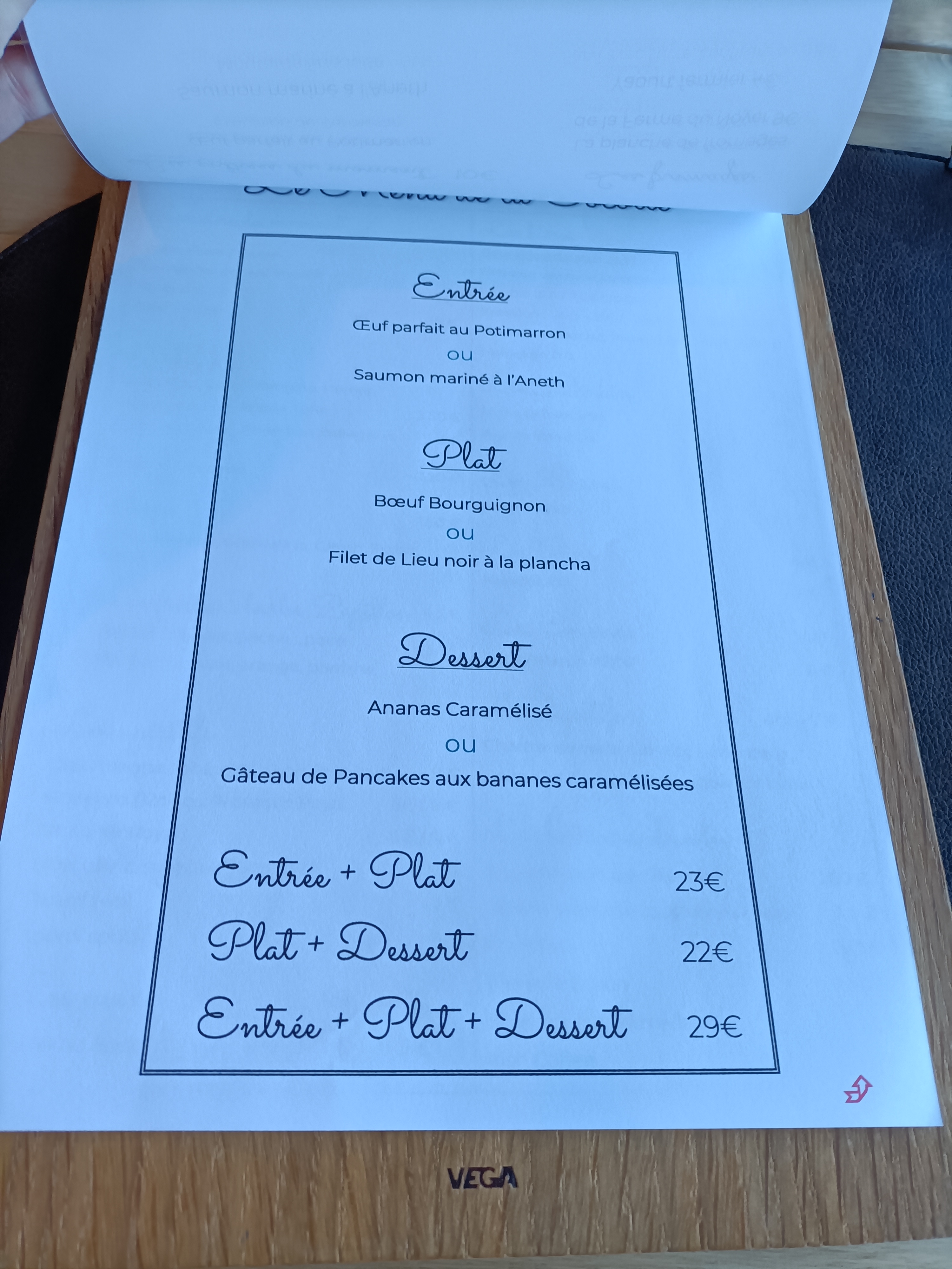 Encore un délicieux menu plein de saveurs . On s est encore régalé de l entrée au dessert . Merci