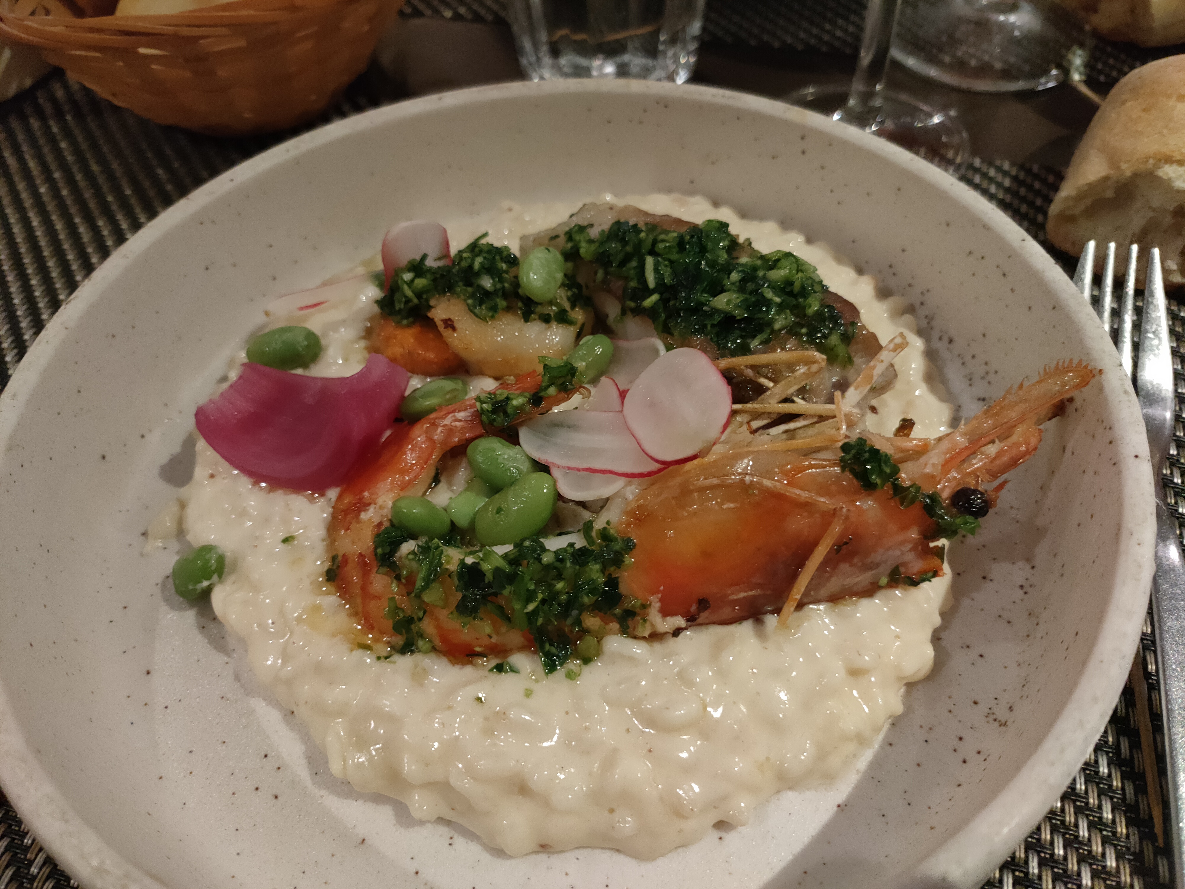 Risotto de la mer et bavette excellente... En attente du dessert !