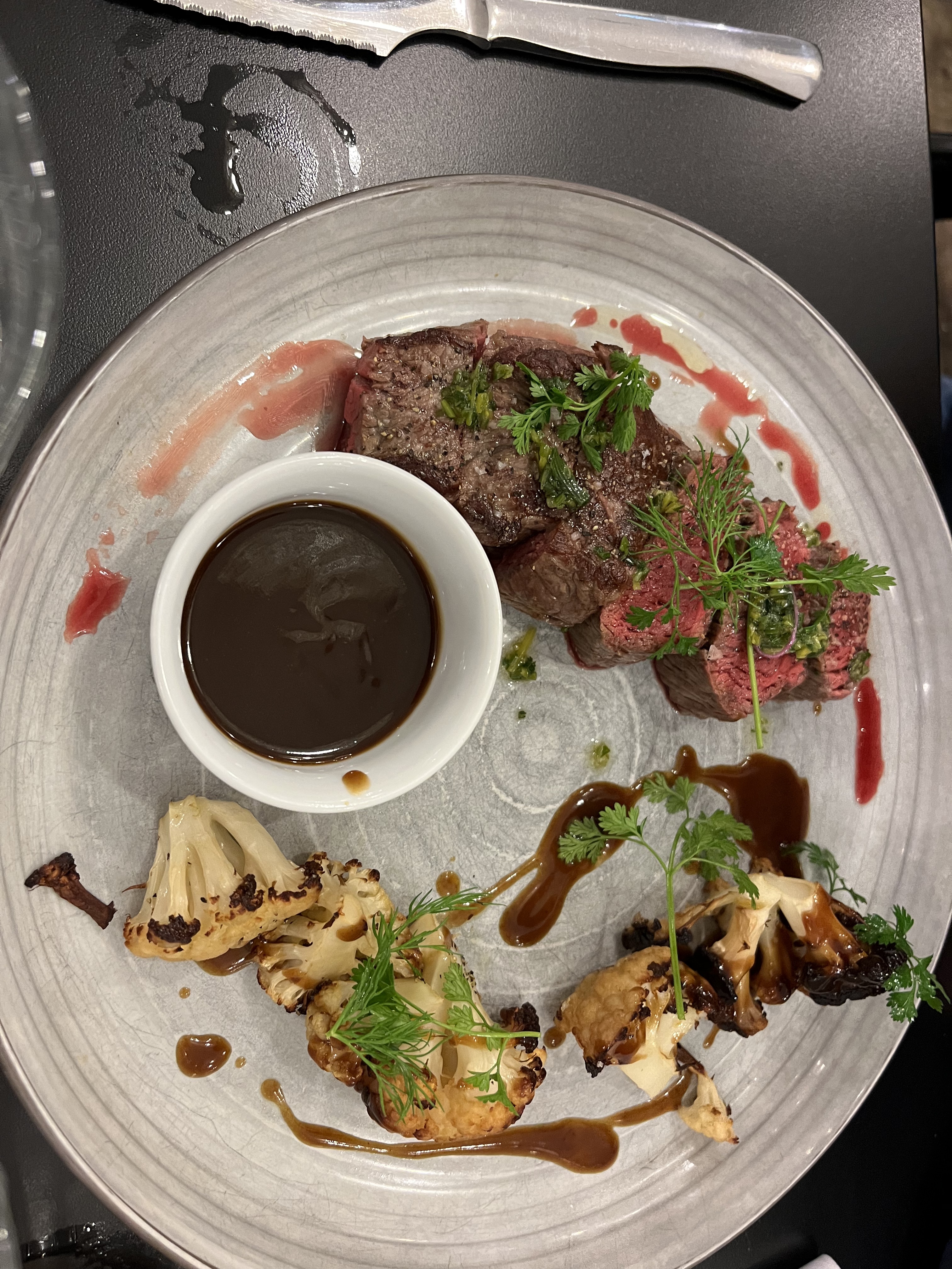 Un peu cher Cuisson demandée non respectée Dessert OK
