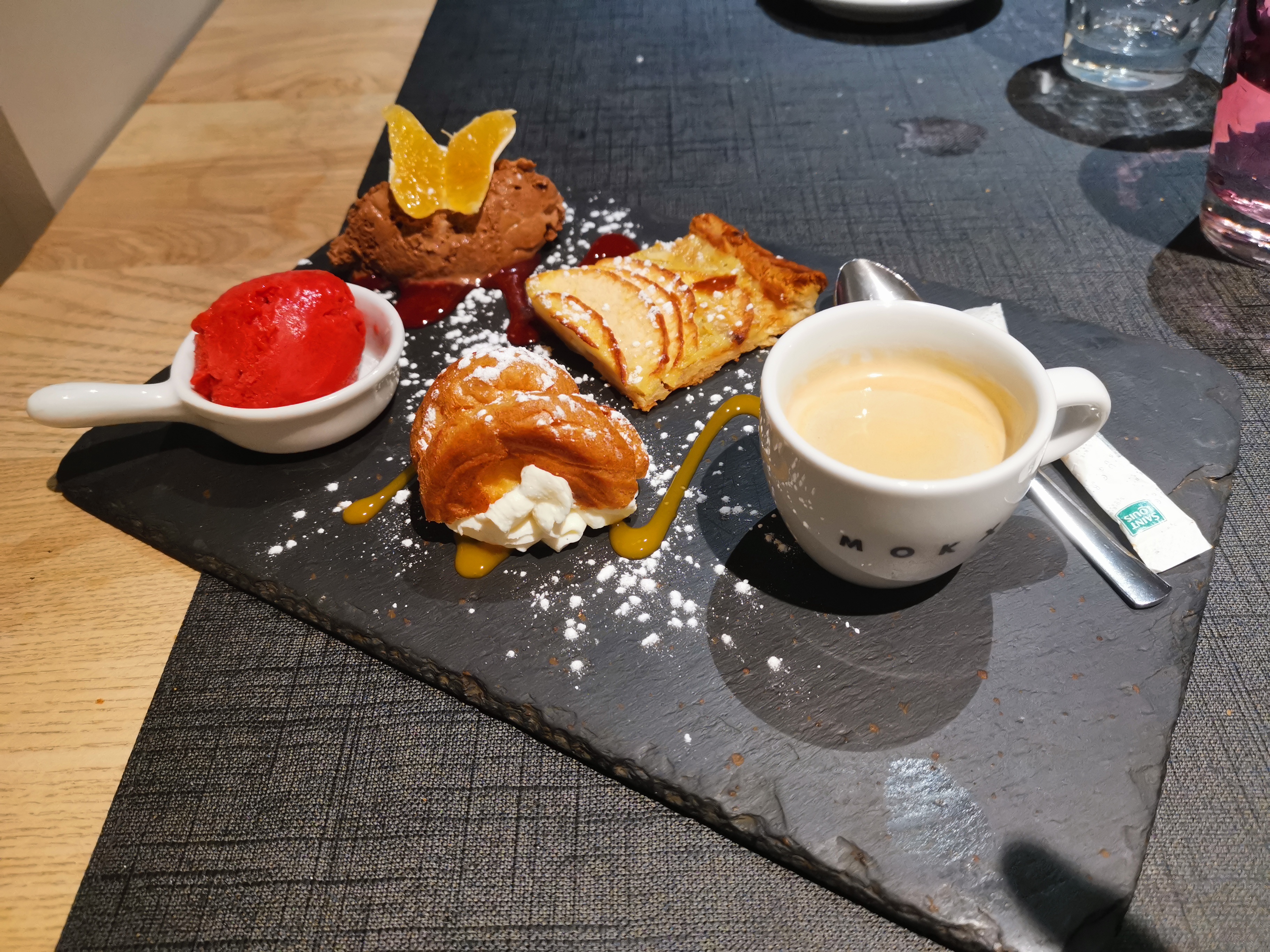 Parfait sur toute le ligne. Le must : le café gourmand. Original et plein de surprise. Rien à voir avec les trop traditionnels crèmes brûlées et pana cotta t'y voilà. A recommander!