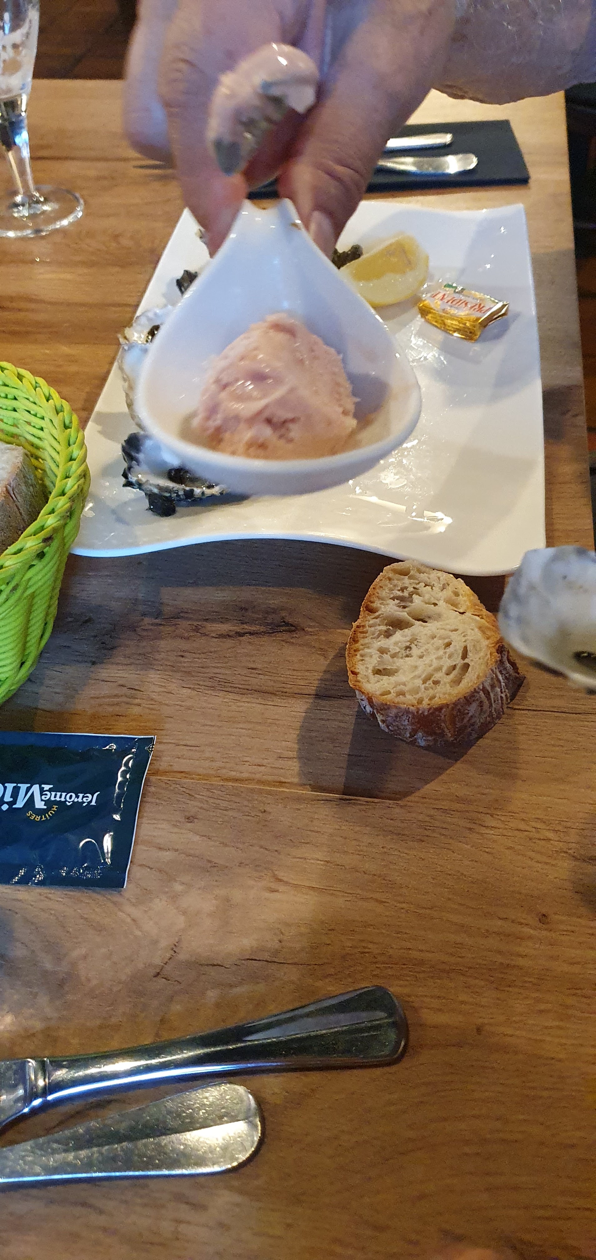 Arrivée à presque 14h, la serveuse a eu la gentillesse de m’installer tout de même pour manger. À peine assise une première petite attention avec une rillettes de poisson. J’ai pris le menu avec en entrée des huîtres excellentes accompagnées d’une glace originale au vinaigre, puis le plat un cabillaud à la cuisson juste parfaite comme j’en ai rarement mangé, cependant l’accompagnement laisse un peu à désirer (peu copieux et sans réel intérêt). En dessert je me suis laissée tenté par les profiteroles maison et je n’ai pas été déçue !!! La formule entrée plat dessert à 30€ est un très bon rapport qualité prix au vu des produits frais de qualité, le service est au top avec une serveuse vraiment gentille ce qui malheureusement devient rare À refaire !