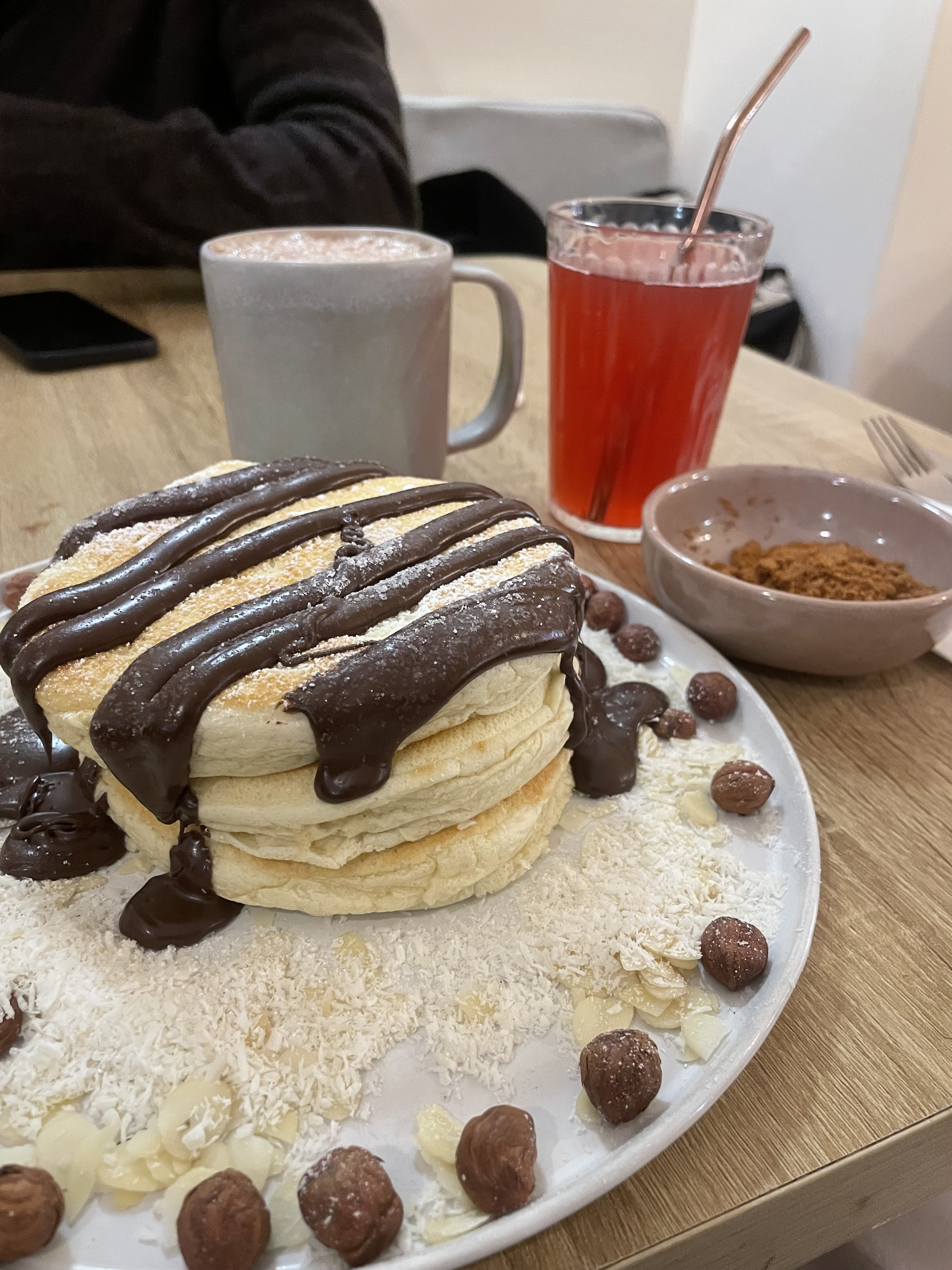Alors là ! Coup de cœur pour les pancakes sucrés hyper bons, bien garnis, bien aérés, les meilleurs que j’ai mangé de loin ! ✨ j’ai pris un frappé vanille très bon également ! Je recommande 😊