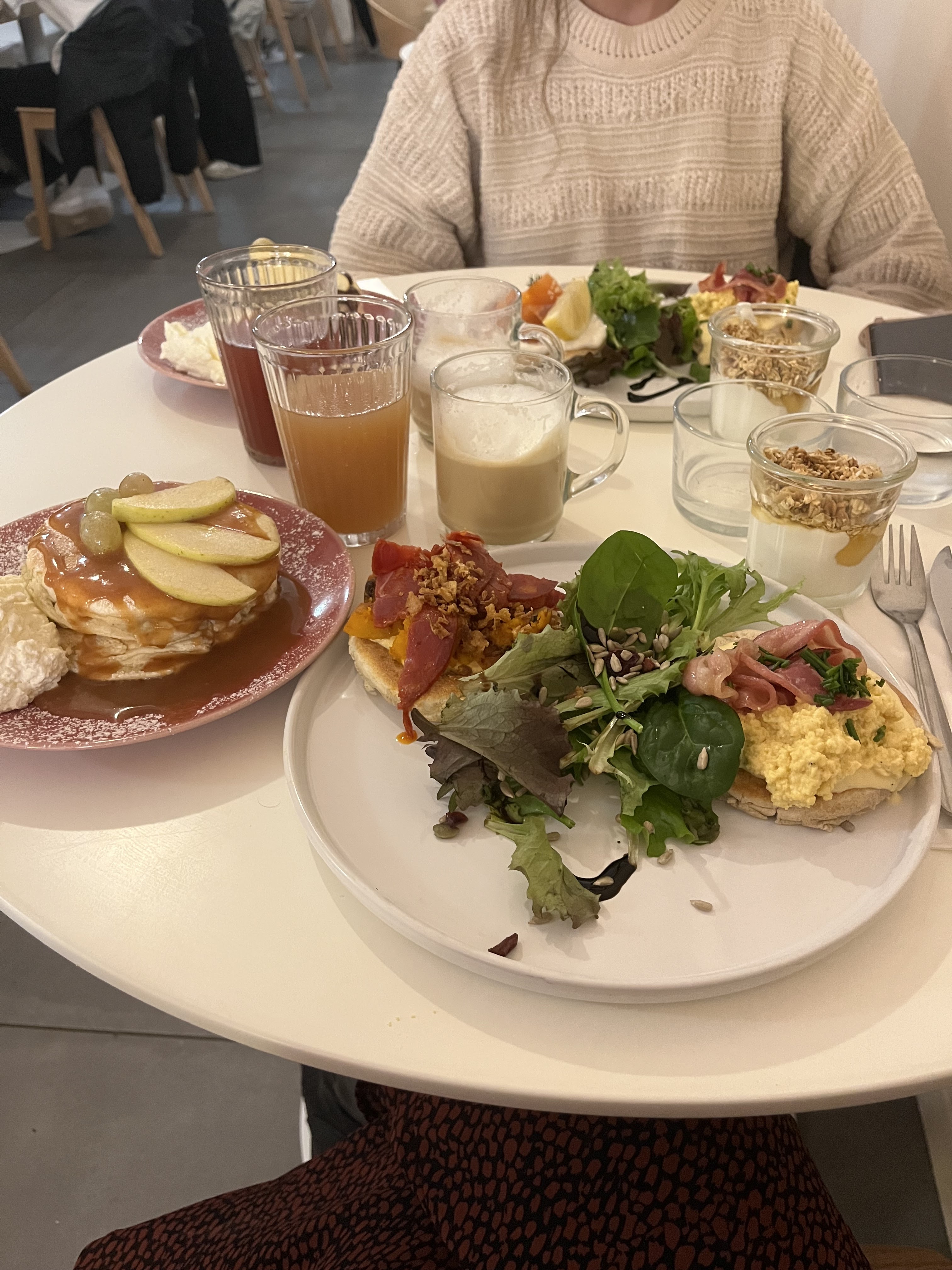 Cadre sympa, serveuse très gentille. Nous avons pris la formule brunch à 27€. Autant visuellement les pancakes étaient jolis, autant le goût n'était pas à la hauteur. Pancakes fades, cuisson bof, froids, trop de saumon (et pourtant j'aime quand c'est bien garni!) et sauce pas goûteuse pour l'un, œufs brouillés pas très bons, pour l'autre. La pâte à tartiner chocolat était par contre bonne. Cela ne vaut pas le prix, beaucoup trop cher pour la qualité des plats. Je recommande plutôt le Miah Café pour un excellent brunch (et moins cher).