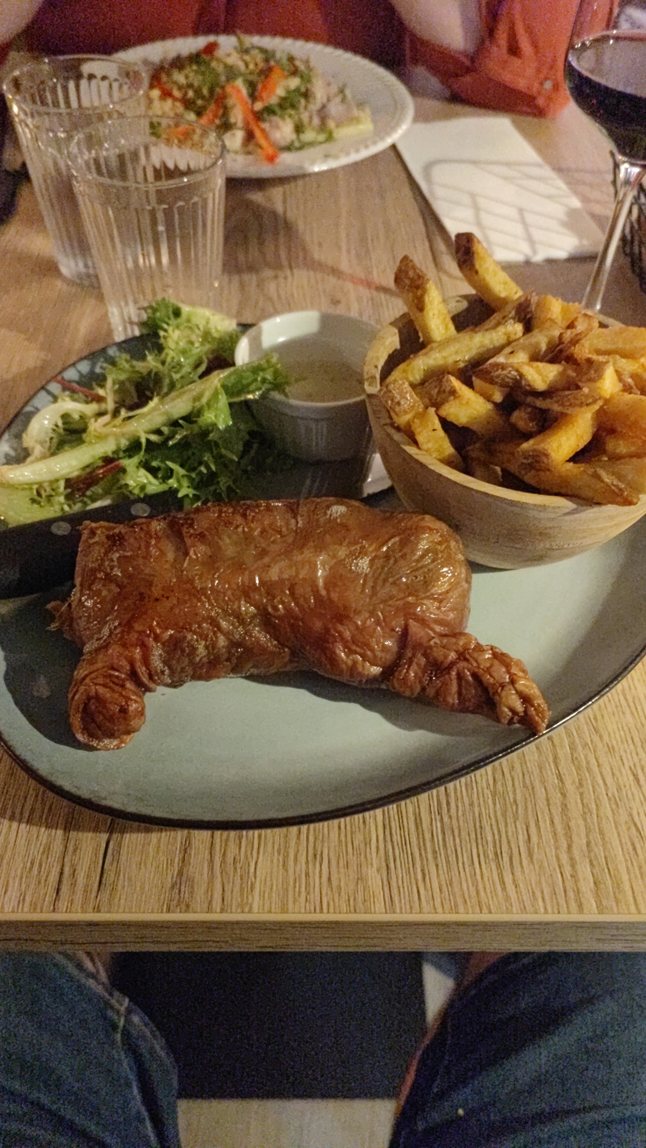 Pris une cote de boeuf à partager, à tomber. Cela faisait bien longtemps que je n’avais pas manger une viande de cette qualité. Et la serveuse aux petits soins pour nous, elle nous a proposé de cuire un peu plus les morceaux choisis par madame. Pour moi un des meilleurs restaurant de Guérande .