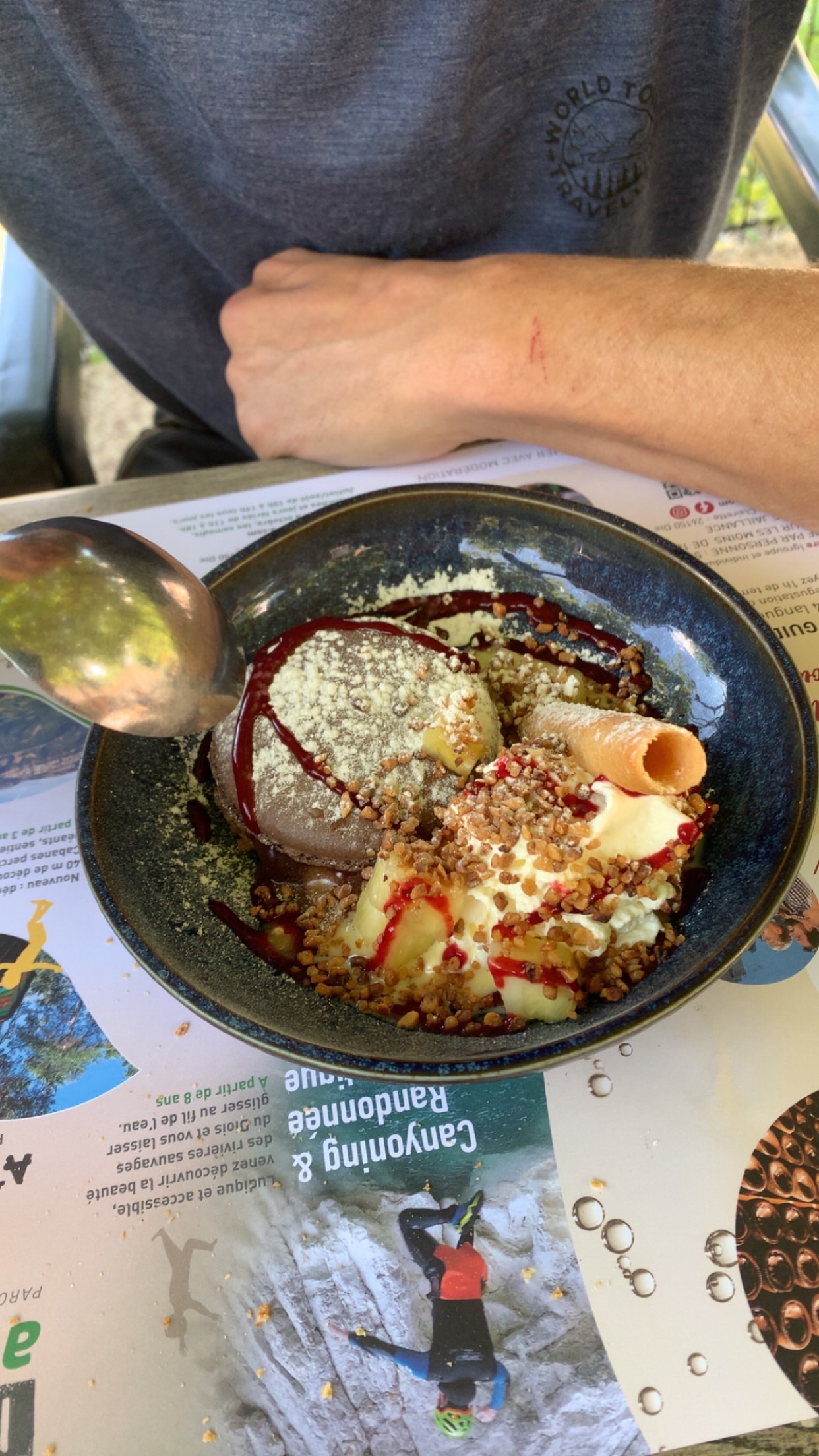 Repas très savoureux et typiquement français. Vous pouvez vous asseoir dehors et avoir une belle vue sur les montagnes. Les propriétaires m'ont permis de leur laisser quelques bagages dont je n'avais pas besoin lors de ma randonnée et de les récupérer en voiture quelques jours plus tard.