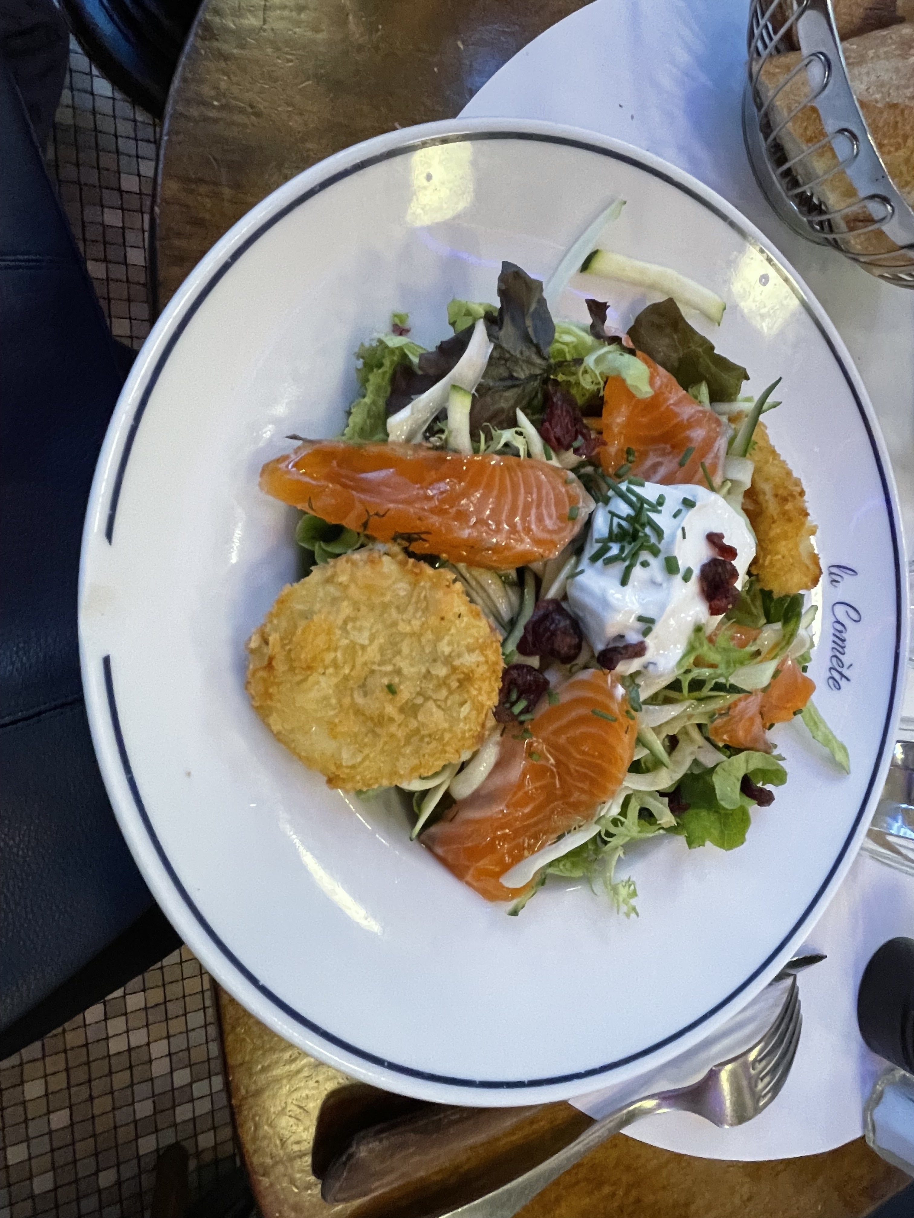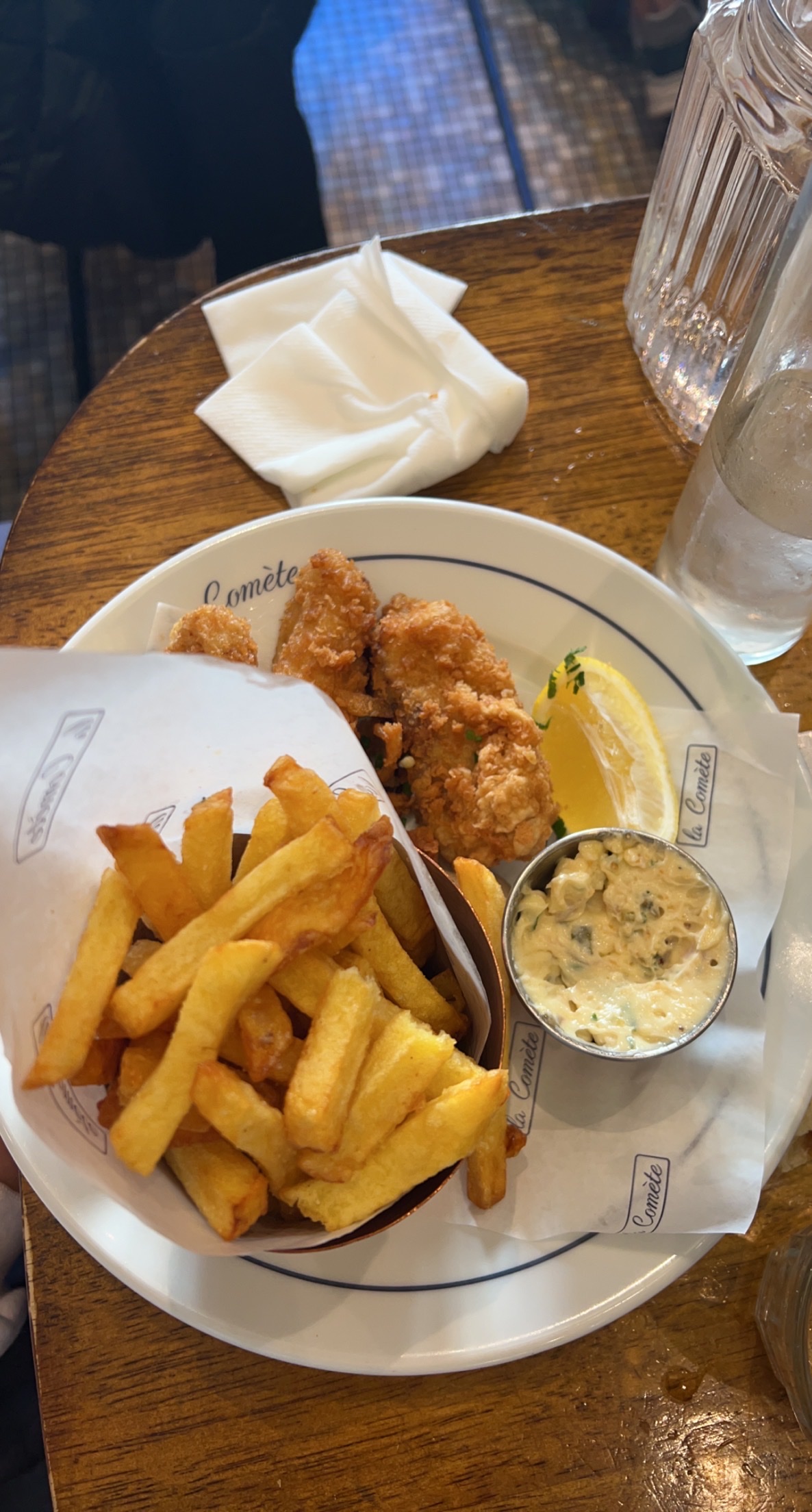 Je suis allé à la Comète après avoir lu de très bonnes revues en ligne. Malheureusement, l'experience n'était pas à la hauteur. Premièrement, le service que j'ai reçu a été maladroit : (i) on m'a demandé de changer de table un long moment après m'être installé (à 17h dans une salle à moitié vide), (ii) la moitié des couverts manquait après avoir été servi et il a été difficile d'appeler un serveur, (iii) on a retiré l'assiette de ma compagne avant que j'ai fini mon entrée et vice-versa pour le plat principal et (iv) on nous a demandé si nous voulions un café/dessert alors que l'un de nous n'avaut pas fini. En ce qui concerne la nourriture, la soupe à l'onion était ennuyeuse en dépit de tous les ingrédients qui la constituaient. L'escalope de veau aveyronnaise était très peu assaisonée... elle est décrite comme étant accompagnée d'une sauce au roquefort mais était couverte d'emmental (?) fondu. Je n'ai perçu le goût du roquefort que sur les pommes de terres où quelques cuillerées d'une sauce blanchâtre (excellente) au fromage tant désiré avaient été versées. Pour couronner le tout : la chaise sur laquelle j'étais était trop basse, me forçait à me tenir trop loin de la table et me donnait mal aux cuisses (le tamis était enfoncé et mes cuisses reposaient sur une barre en bois transversale). En bref, rien de très mauvais mais beaucoup de raisons d'être mécontent.