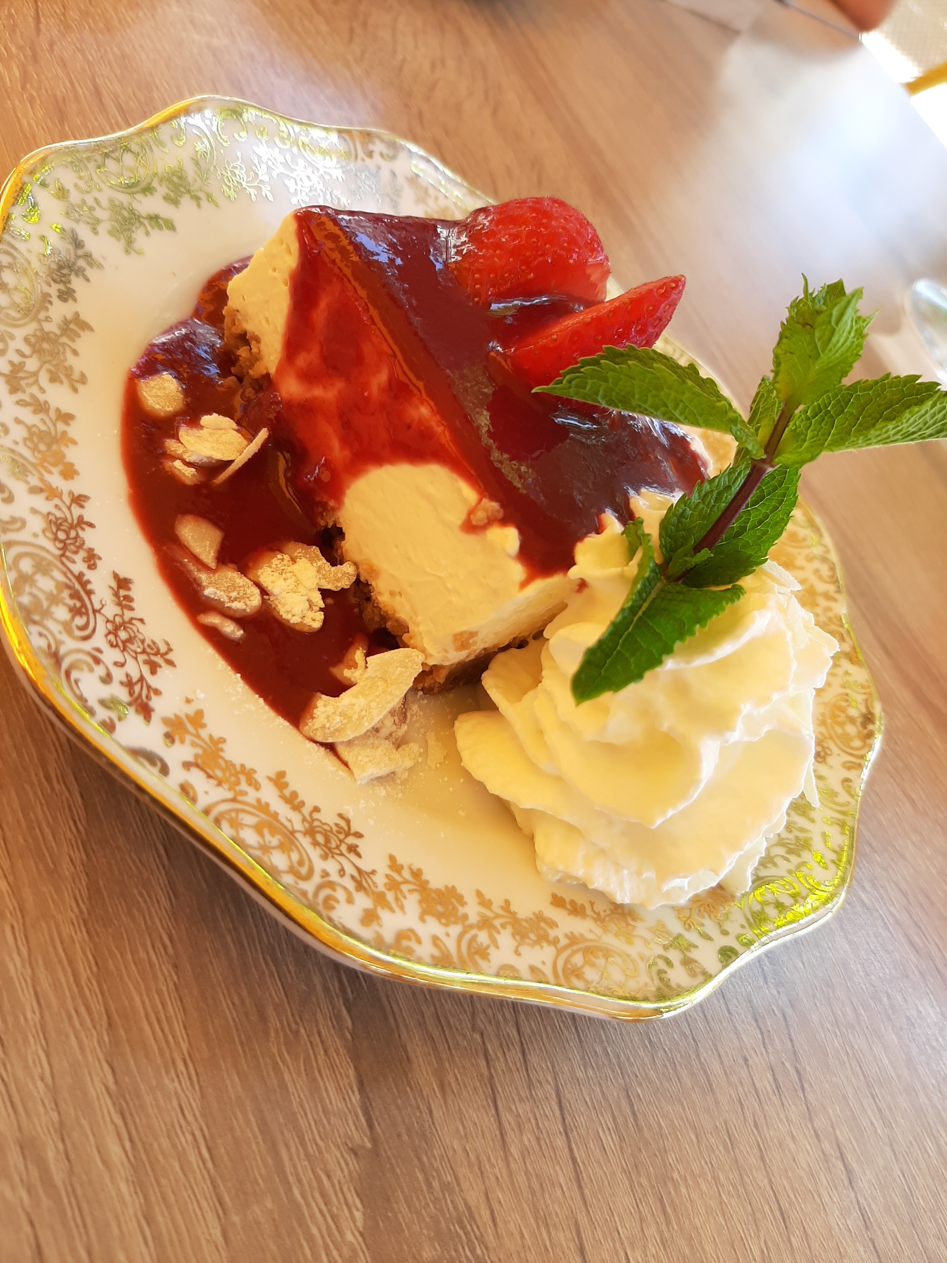 Petite pose sympathique..... bien situé, terrasse à l'ombre ! Personnel disponible ! Café, glaces, cheecake et thé glacé etaient très bon !