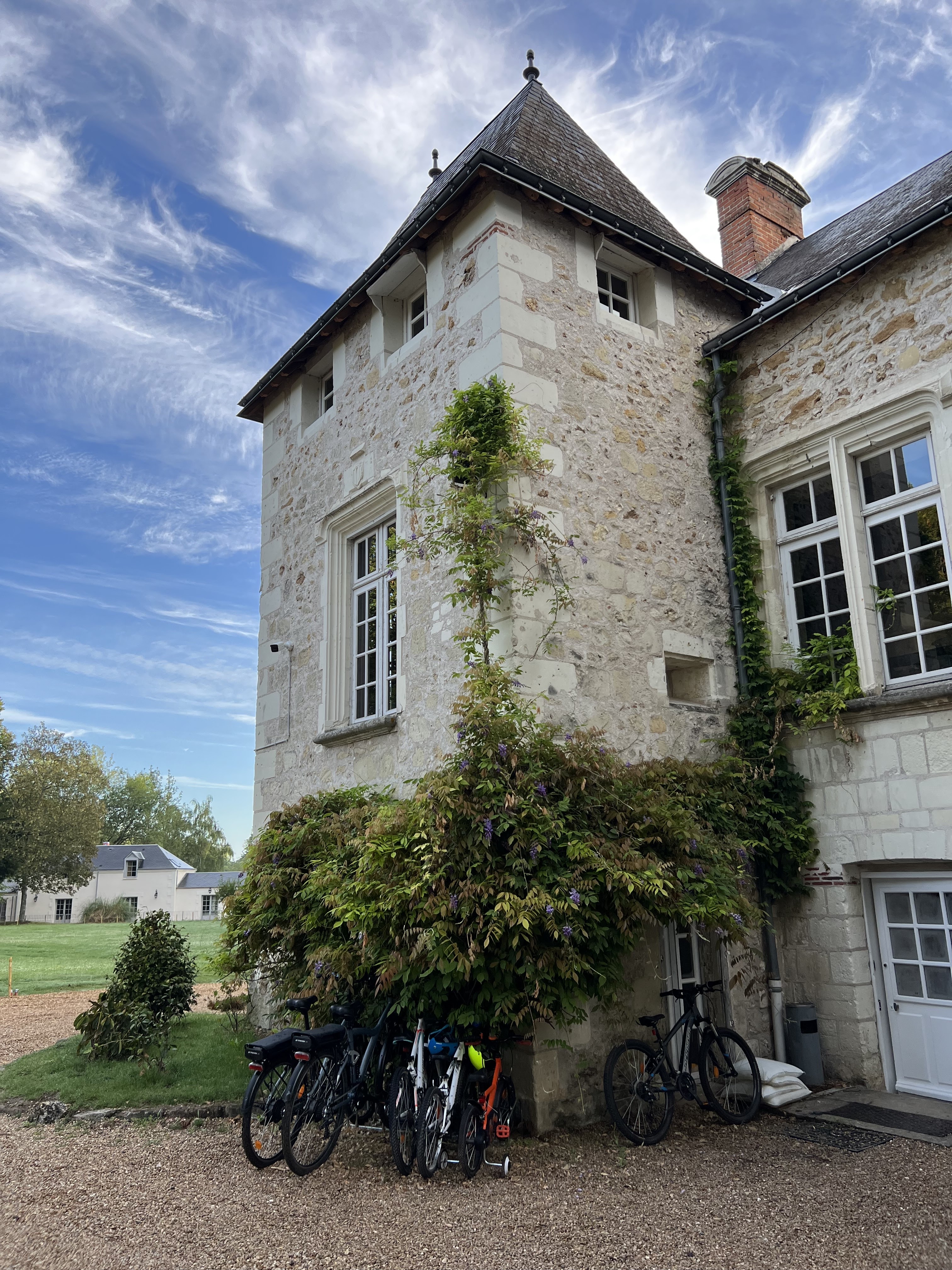 château très agréable chambres spacieuses très jolies, literie très confortable et le petit déjeuner copieux. La piscine était la bienvenue après un périple en vélo