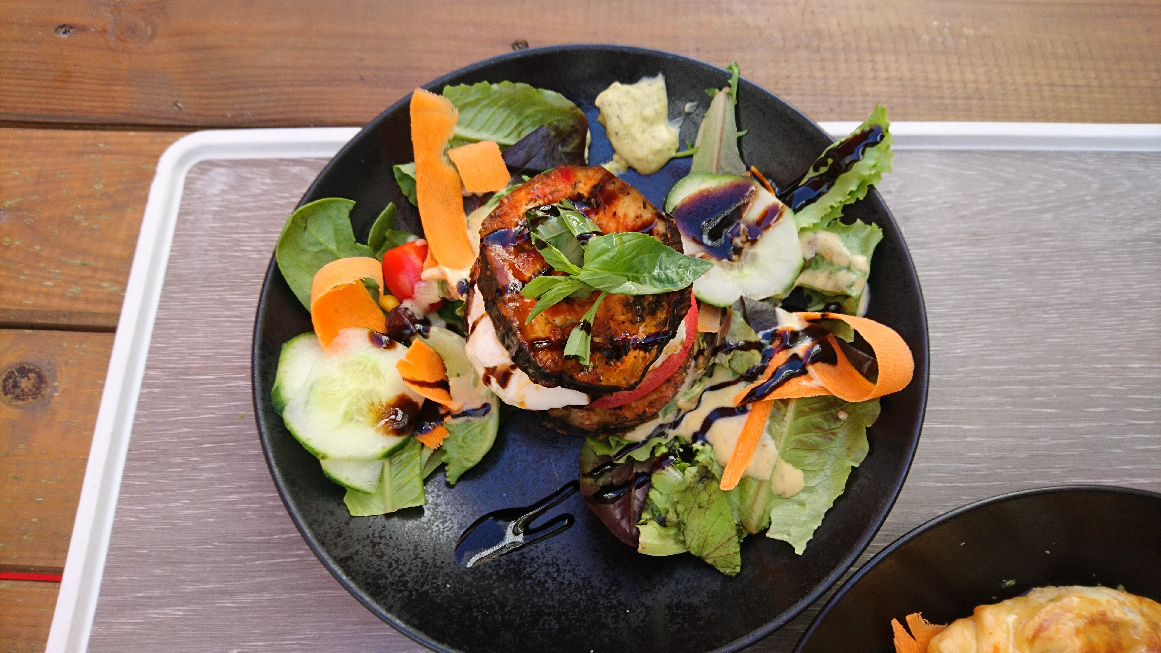 La galette végétarienne chez Ermen était délicieuse : carottes, œuf, fromage, crème et oignons confits. Une vrai régal, et possible sans les épices japonaises ;-) trop Merciiii et la crêpe sucrée hyper généreuse en cacahuètes, succulente.