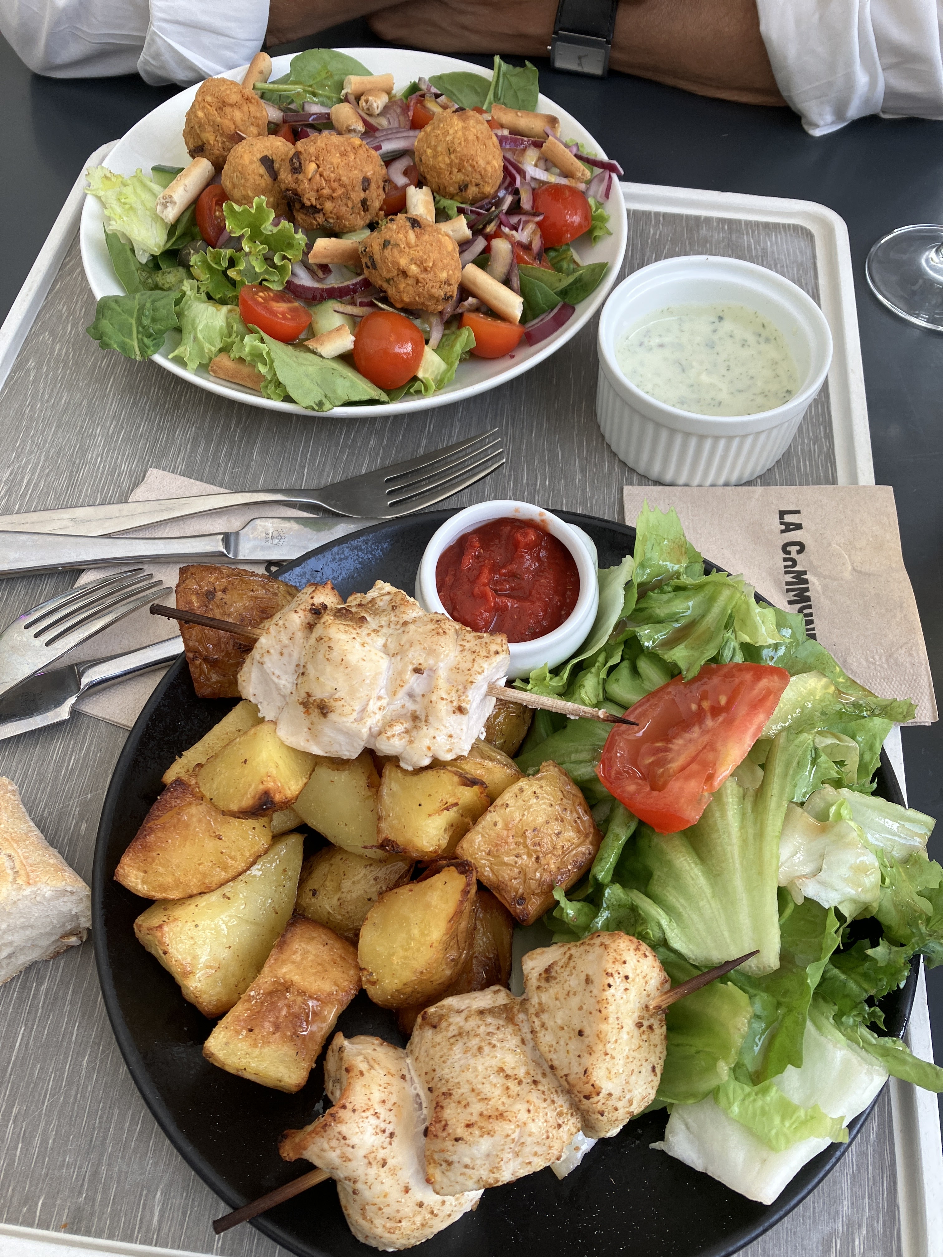 Belle terrasse pour l été, le concept de Food Court et vraiment bien et permet à chacun de choisir ce qu’il a envie. Pas de la grande gastronomie mais mention spéciale pour #frenchoux avec des profiteroles maison et des vrais choix maison : suffisamment rare pour être souligné ! Bravo