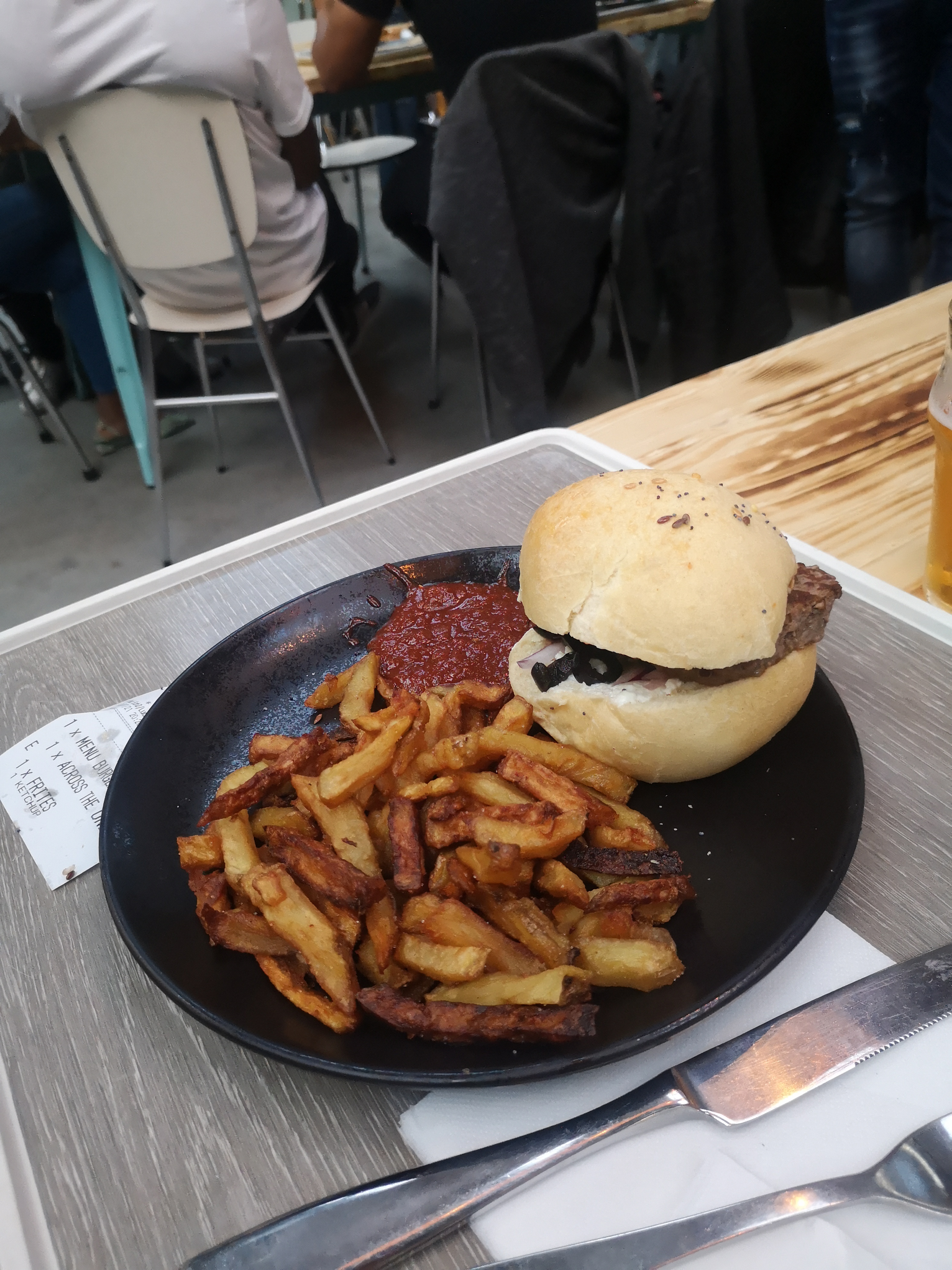 Trop bien ! Arrivé avec des amis pour se détendre et ça a été chose faite ! Quelques planches (très abordable 16€ la mixte ) accompagnée de pichets de bière pour commencer puis un plat pris dans un stand pour 15€, tout est bien organisé il y a même des badges qui vibrent pour prévenir que c'est prêt, le cadre est super avec une belle terrasse et le staff pour le peu que j'ai vu est très sympathique, je reviendrais et je recommande (mais pas trop pour qu'il me reste de la place :p)