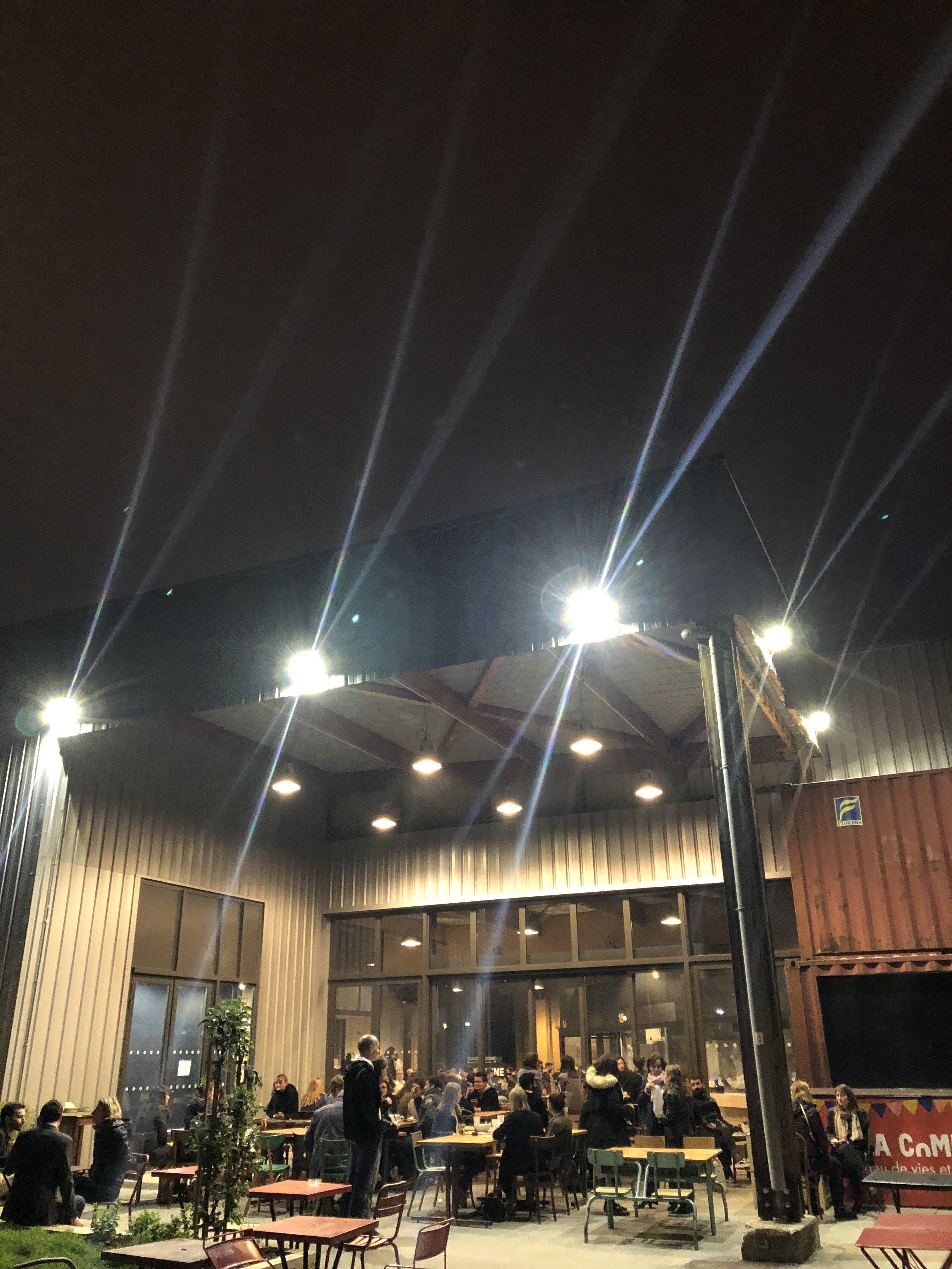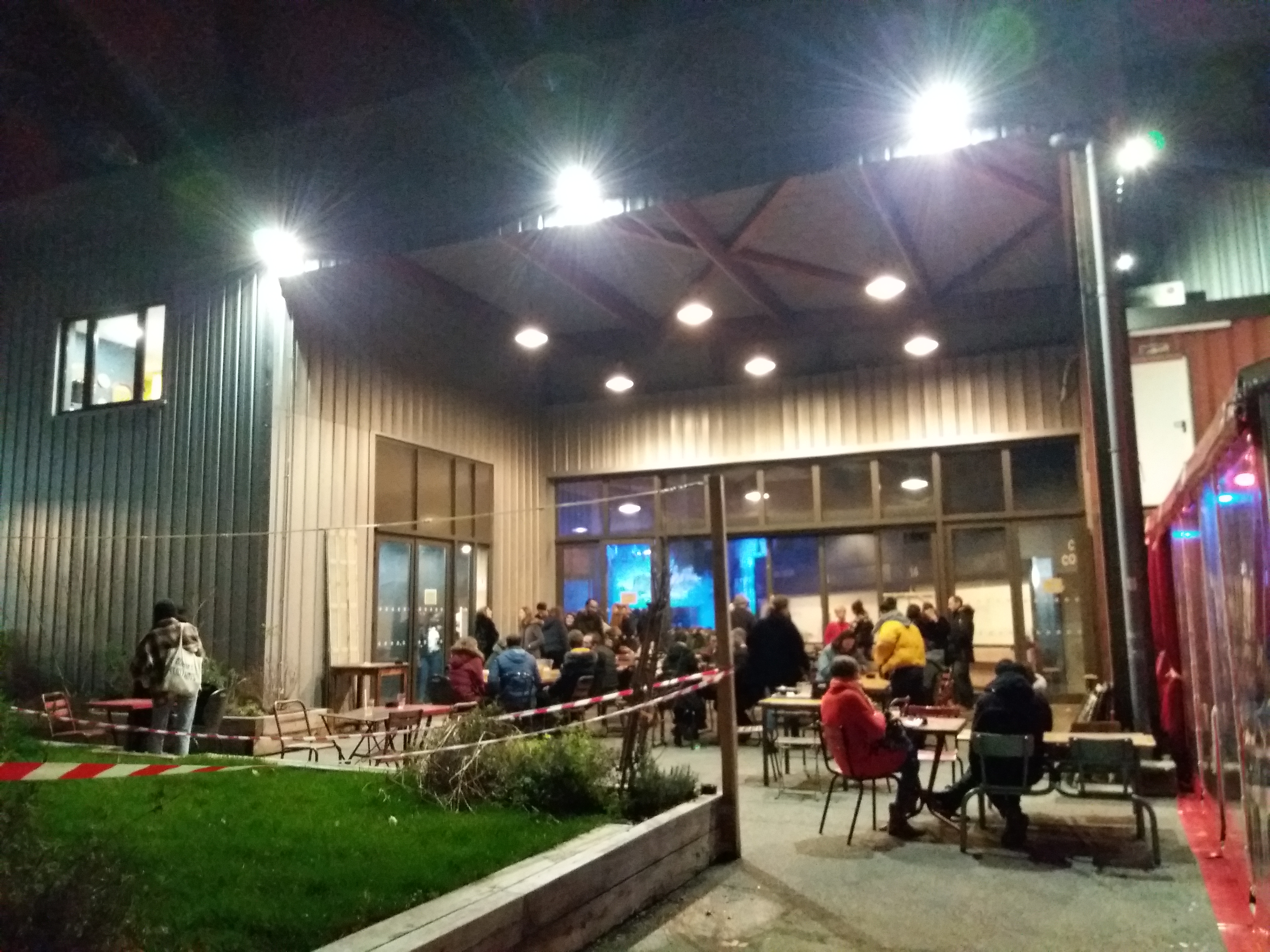 Lieu sympa et conviviale. Plusieurs stands sont proposés ce qui permet à chacun de manger ce qu il veut, ce soir là les stands allaient d’une pizza au pakistanais en passant par le Sénégal ou au plat fumé maison disposé dans une brioche dorée