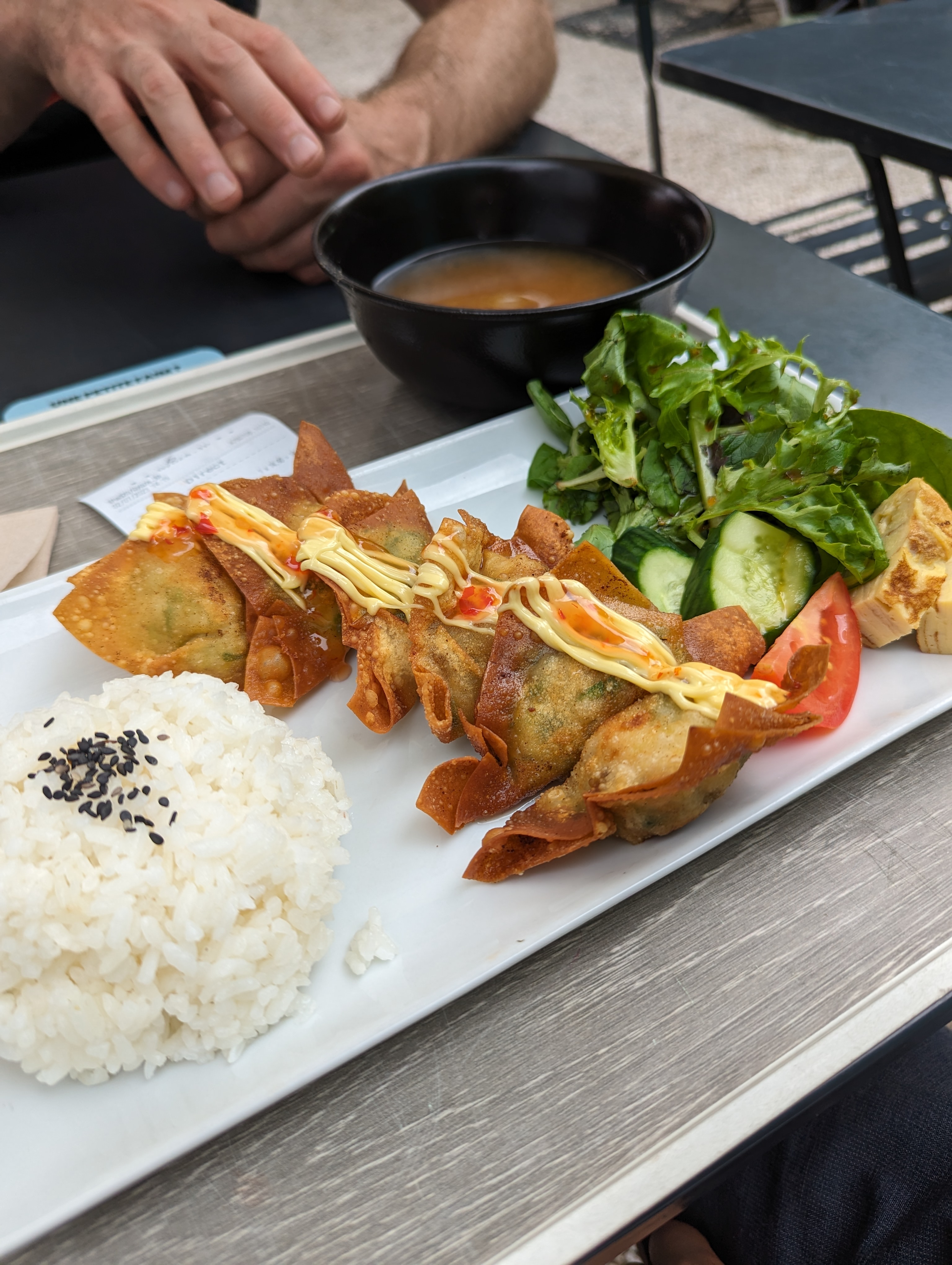 Première visite de cet endroit, un lieu très sympathique très spacieux et propre✨. Il y a un concept de réfectoire plutôt cool où l'on a la possibilité de manger dans différents stands ce qui donne des choses assez variées.(un peu comme au Halles)😋🍽️ Pour ma première expérience, j'ai plutôt voulu tester le stand coréen où j'ai pu manger un Bibimapvégé 🥗 puis au stand plus japonais où j'ai pu y avoir des Gyozas🥟. Les deux repas étaient vraiment très très bons ☺️, de plus il y avait le choix de manger autant en extérieur qu'en intérieur.🏞️ Un personnel très poli et accueillant qui en fin peut se charger de débarrasser.🥸 Au niveau des prix ils n'excèdent pas les 20€, ils avoisinent plutôt les 15€ je trouve ça plutôt raisonnable pour ma part.🤑 Je ne sais pas si la structure propose d'autres choses mais en tout cas j'ai été conquis!🔥 Je ne peux que fortement recommander ! 🥳🥳🥳