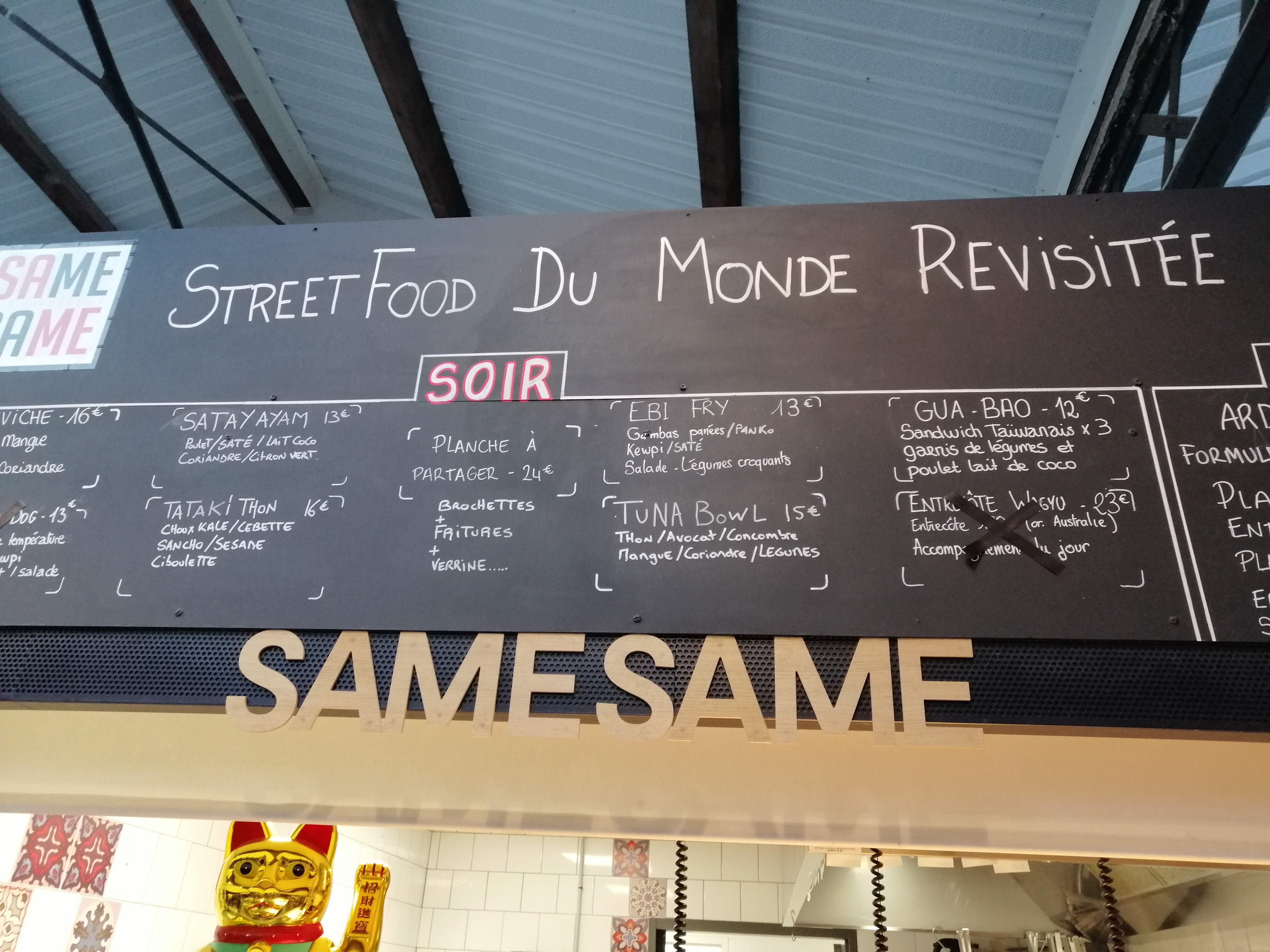 Chouette concept. Dans un immense espace quelque peu bruyant…différents stands vous proposent leur cuisine et leurs spécialités. Cela va de la galette au plat coréen. Vous déambulez, voyez ce qui vous est proposé puis choisissez ce qui vous fait envie. Vous vous installez à votre convenance dans la grande salle commune de restauration. L’ambiance est conviviale. Une découverte où je retournerai avec plaisir pour connaître de nouveaux plats.