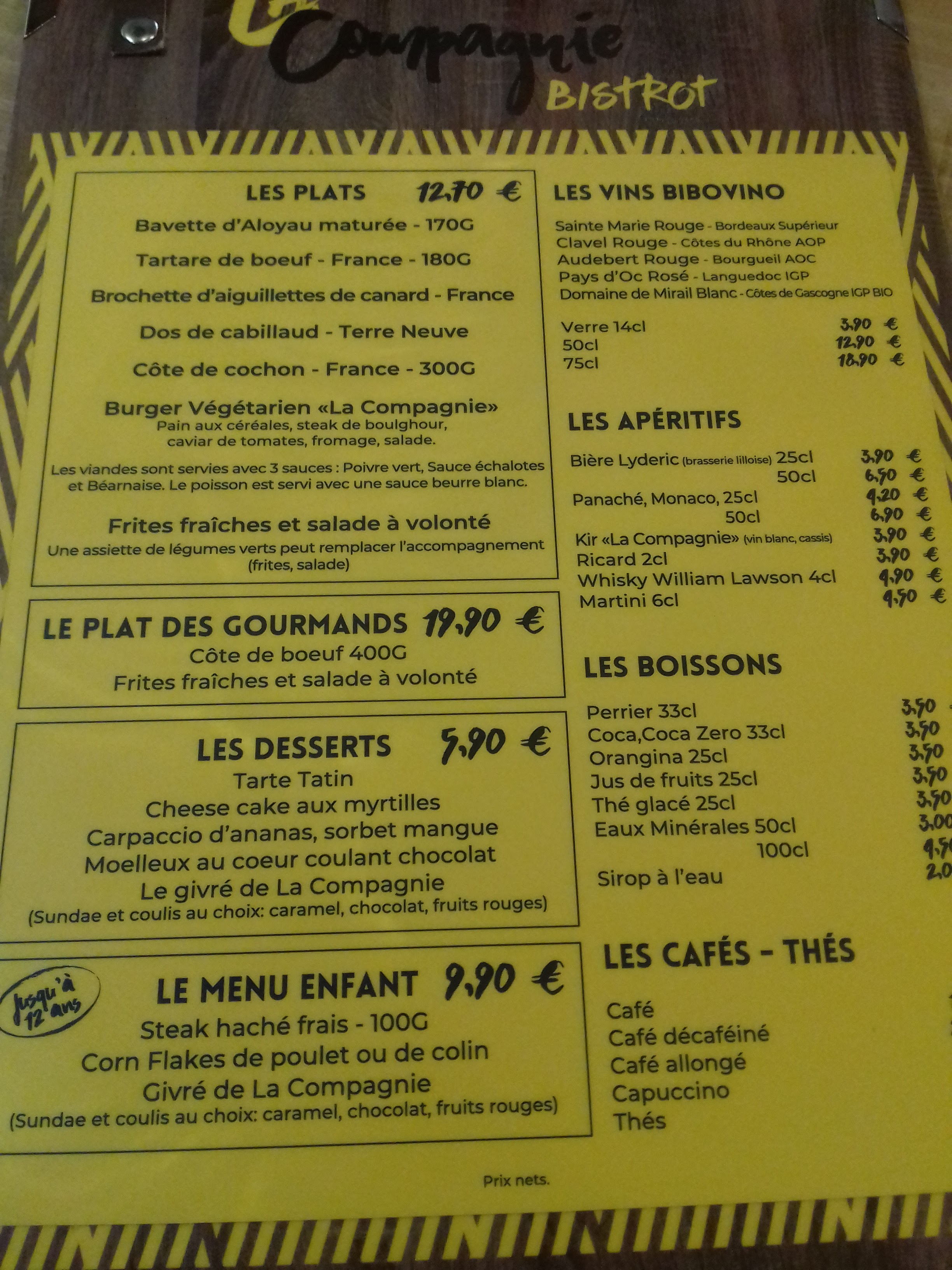 Un accueil et une déco sympa par contre au niveau restauration un flunch en moins bien très déçu la viande d une qualité médiocre sauce en poudre bien industrielle je l ai signalé au serveur et on m a même fait payer le café bilan 42 euros pour 2 pour du moins bien que flunch ça fait très cher !