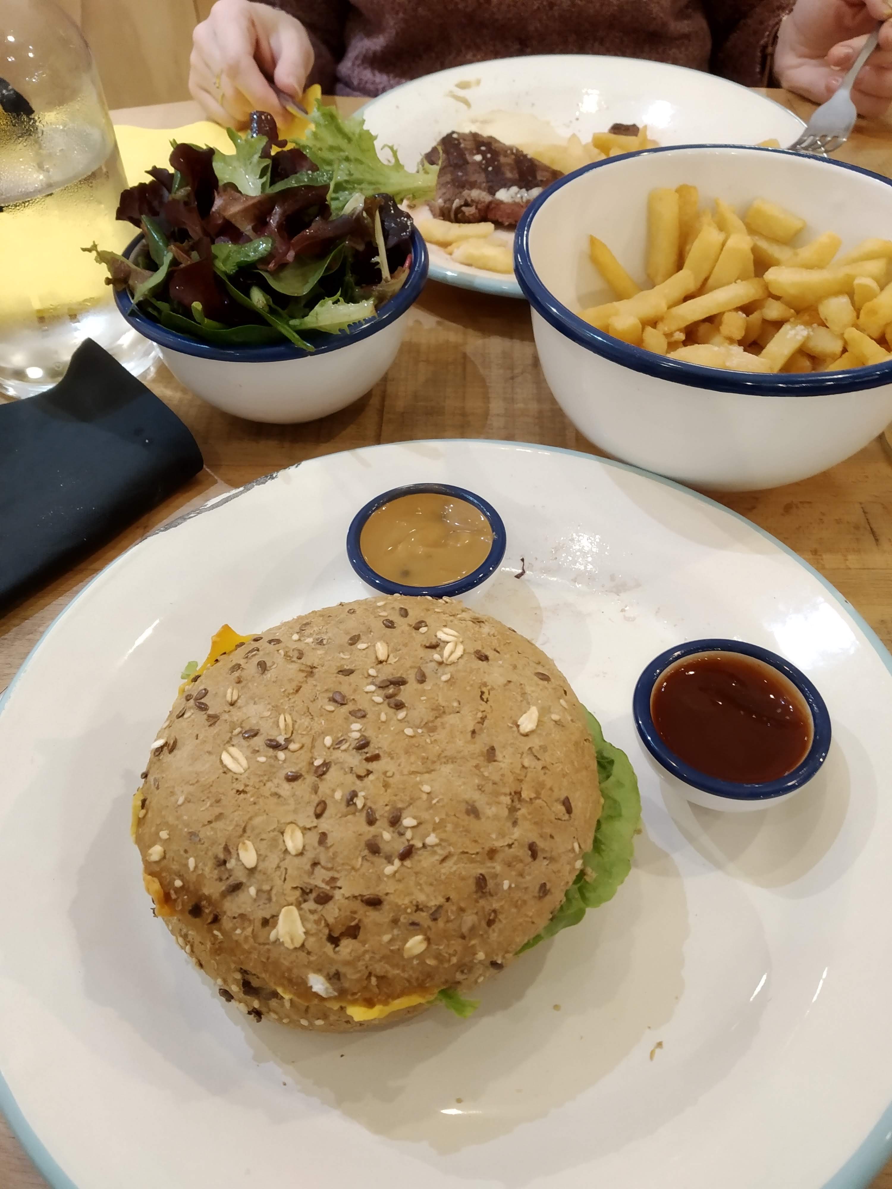 J'adore ce concept, vous choisissez votre protéine et le reste est à volonté : salade, frites, légumes. J adore le Burger vegetarien