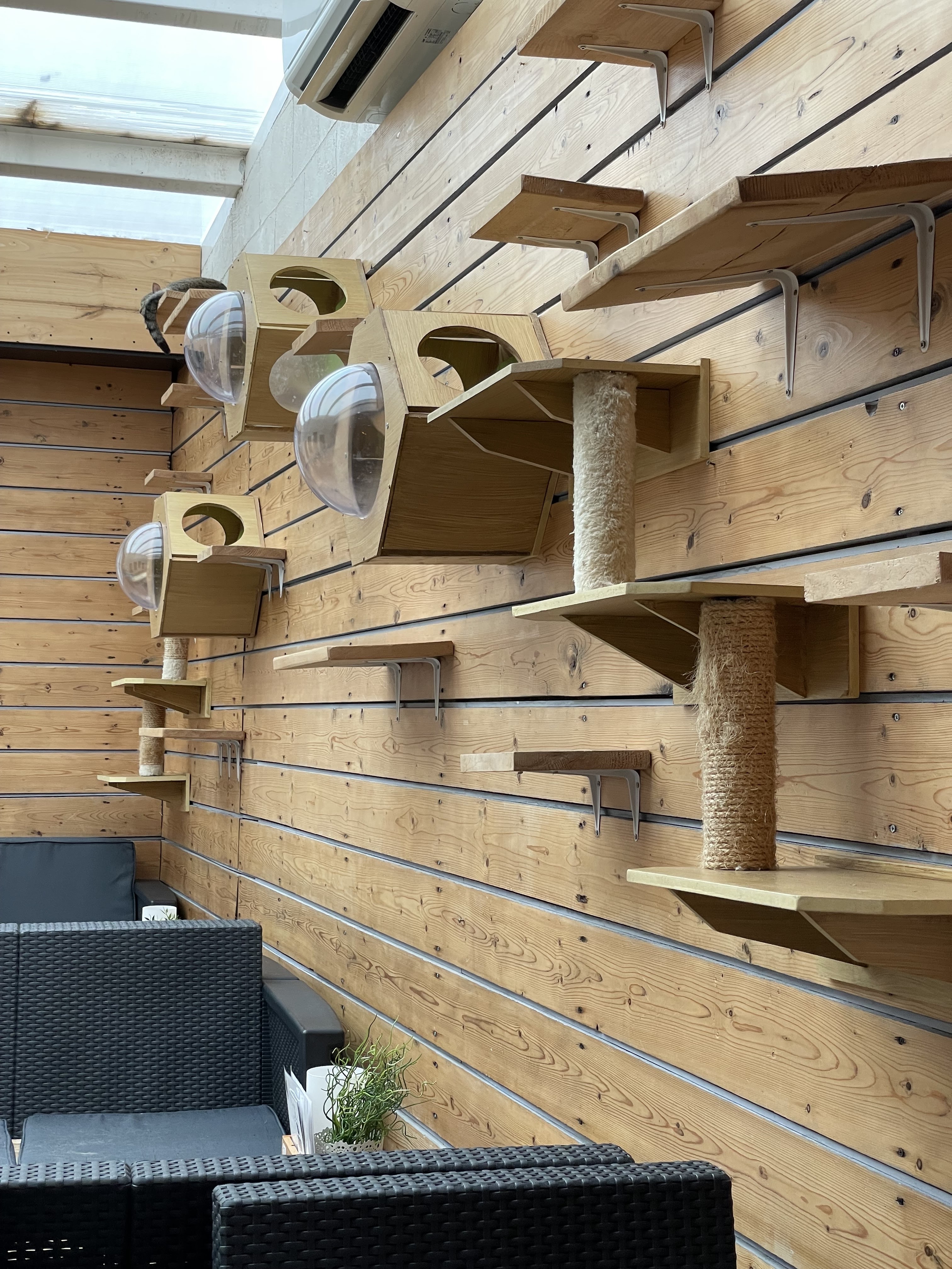 J adore les chats , super déco Par contre l acceuil laisse à désirer, l hôte a l air de faire la gueule.... et l odeur d urine de chat est tres forte comparé aux autres bar à chats que j ai pu visiter