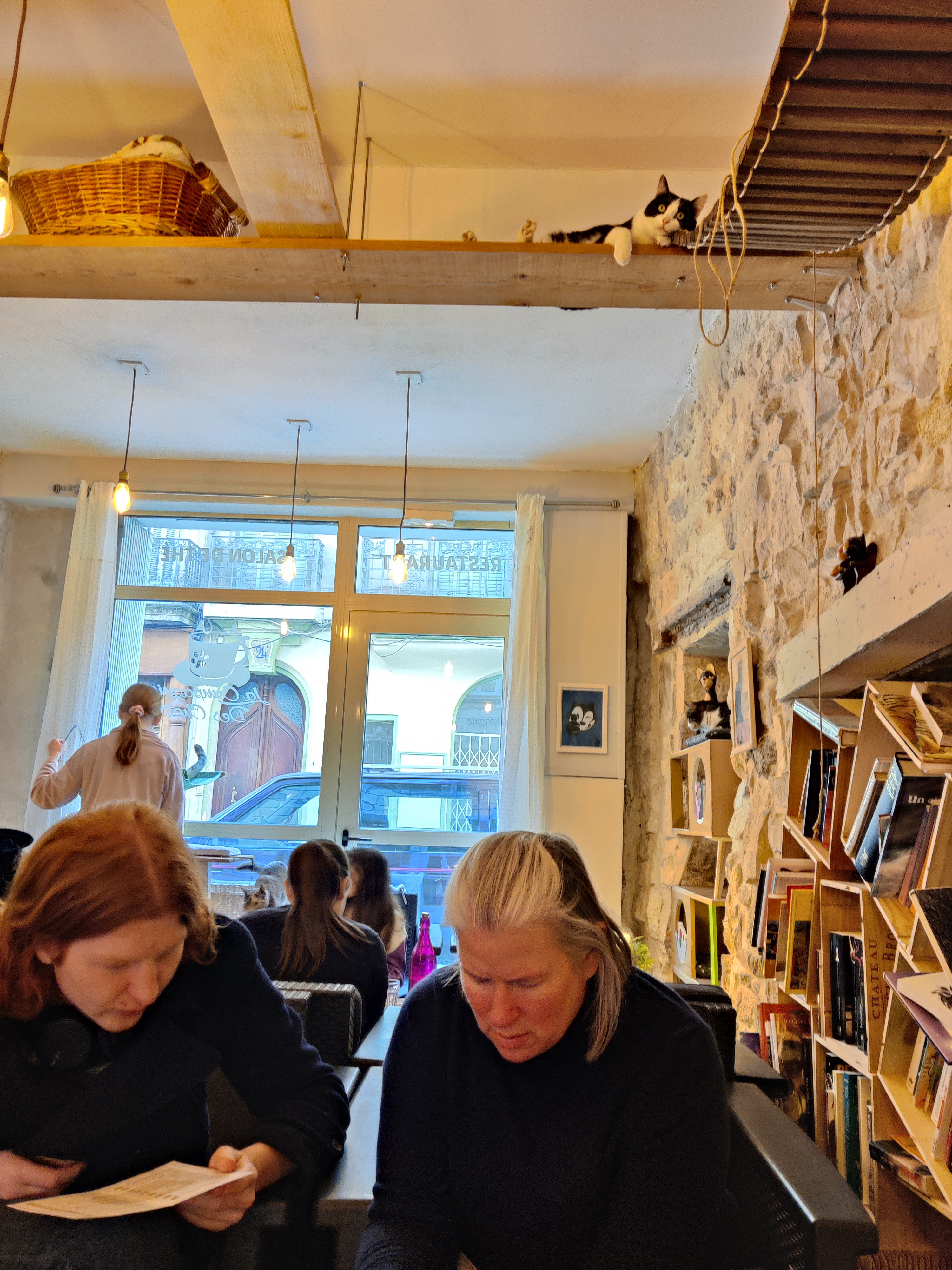Lieu très convivial, mais nous avons eu un Orangina avec date dépassée de 10 jours, du beurre congelé... (donc une étoile en moins). Mais le reste était très bon et correct. Odeur d'urine assez forte au moment où nous sommes passés, mais c'est inévitable en présence de nombreux chats malgré un nettoyage régulier.