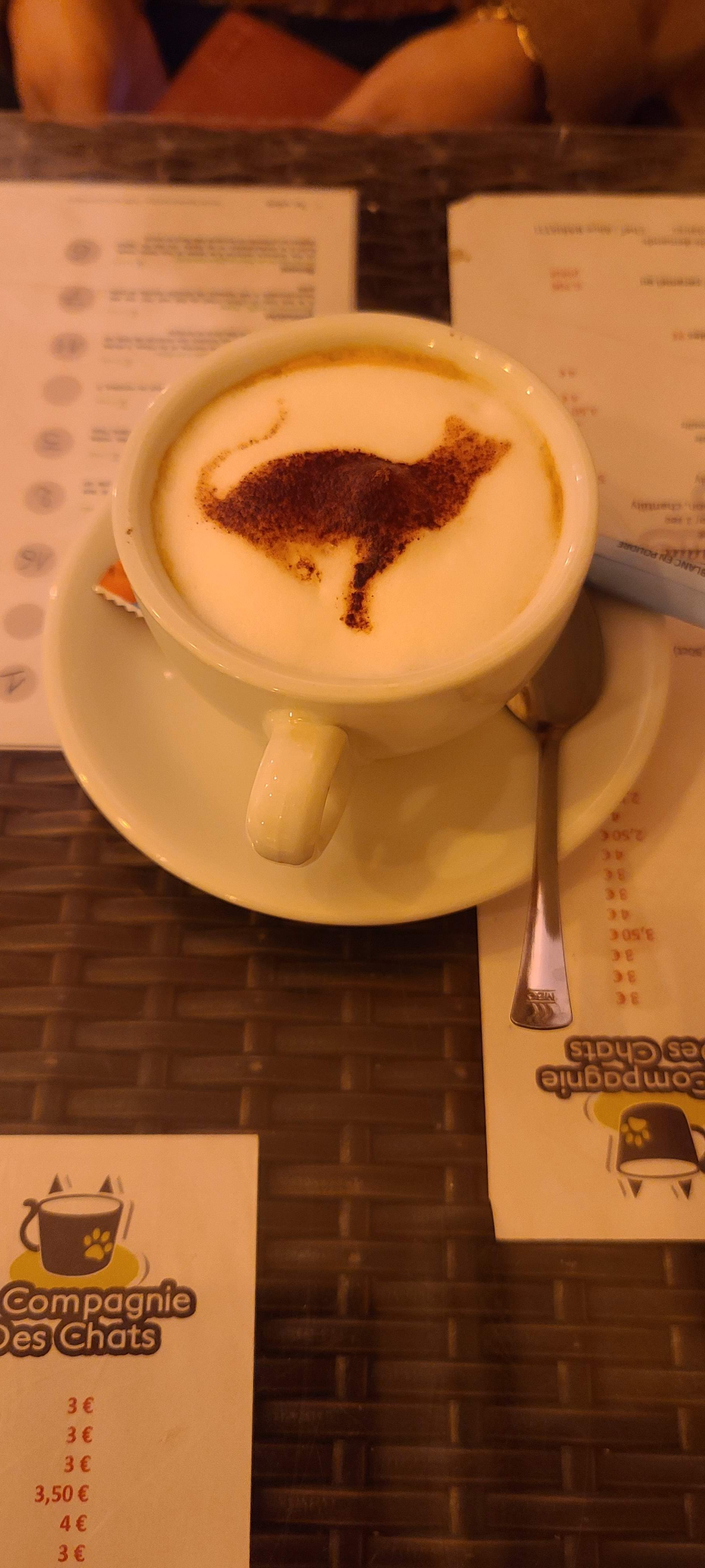 🙀Super moment🙀 Le personnel est super accueillant, très souriant. Les chats ne sont pas envahissant, ils sont curieux juste se qu'il faut. Les boissons sont très travaillées (voir photo) et les accompagnement sont délicieux et généreux. Je rexommande 😊