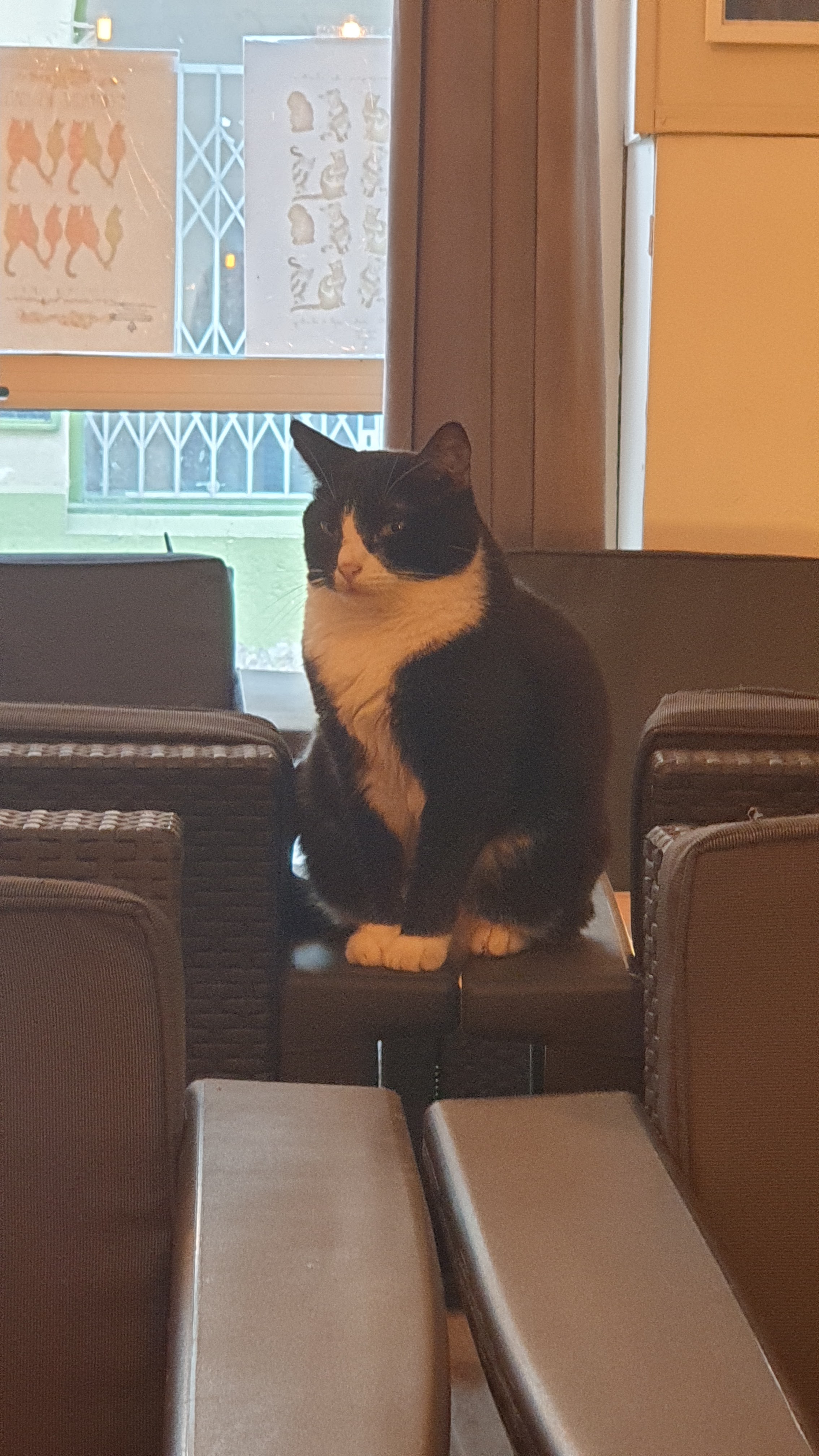 Super calme, des chats tranquille qui se balade dans ce restaurant très accueillant. Pour ceux qui aiment les chats : A ne pas rater !