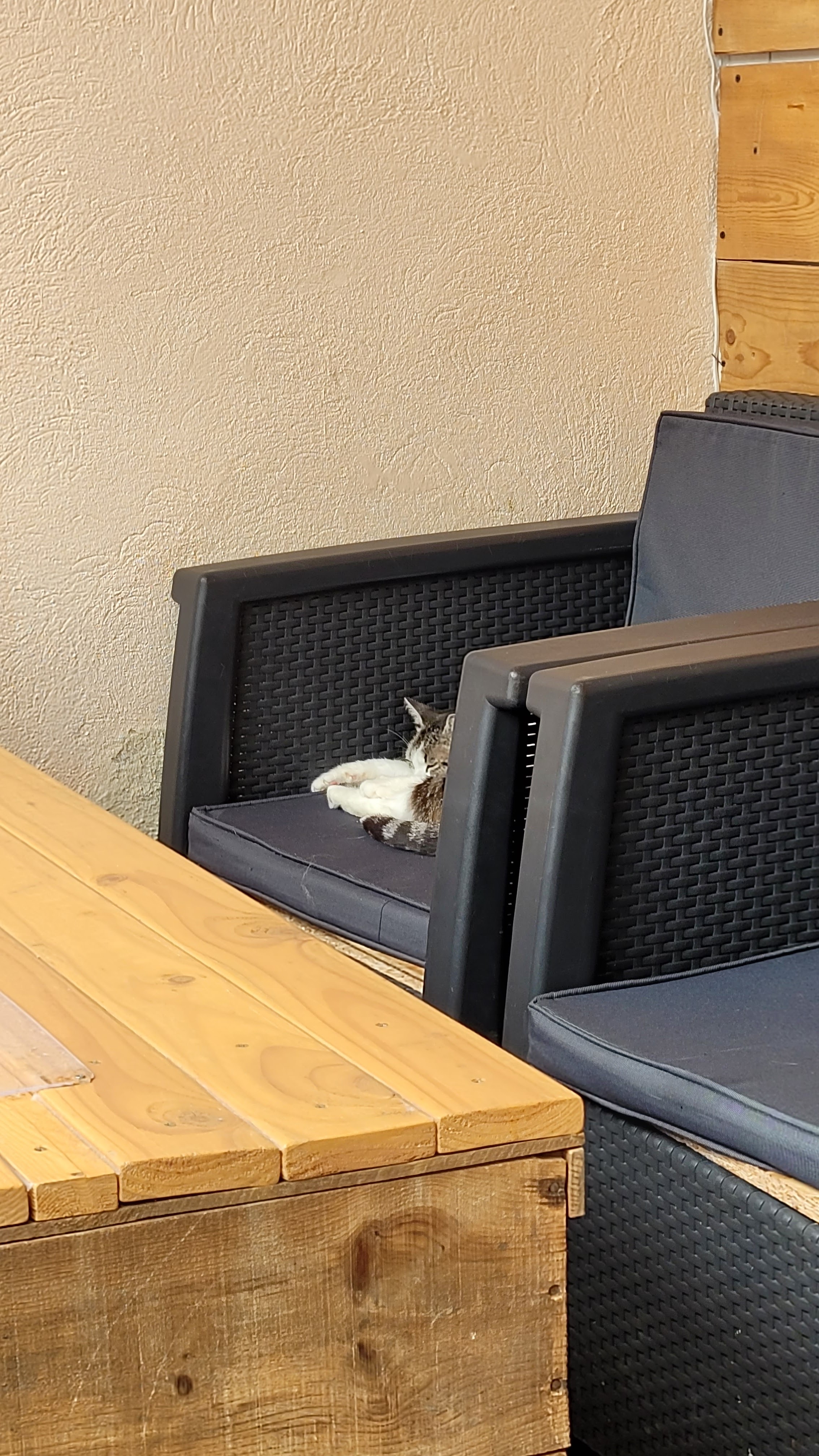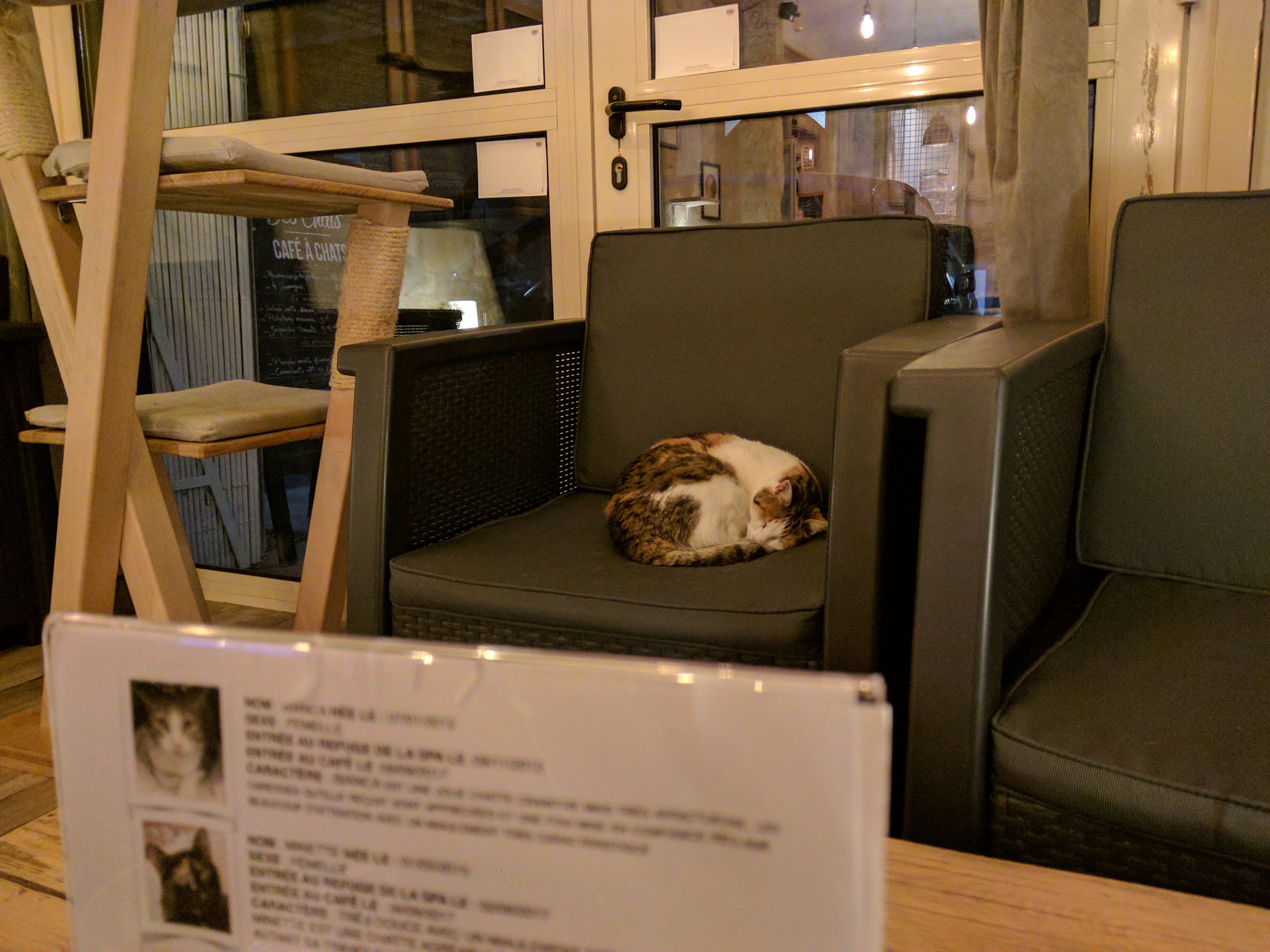 Je n'y ai pas mangé juste bu un coup Pour découvrir ce concept pour chat tout est fait en fonction des chats qui sont à l'adoption b je trouve cela très bien au moins ils ne sont pas dans une cage a Aspa . Les chats sont en liberté et font leur vie. 🐈