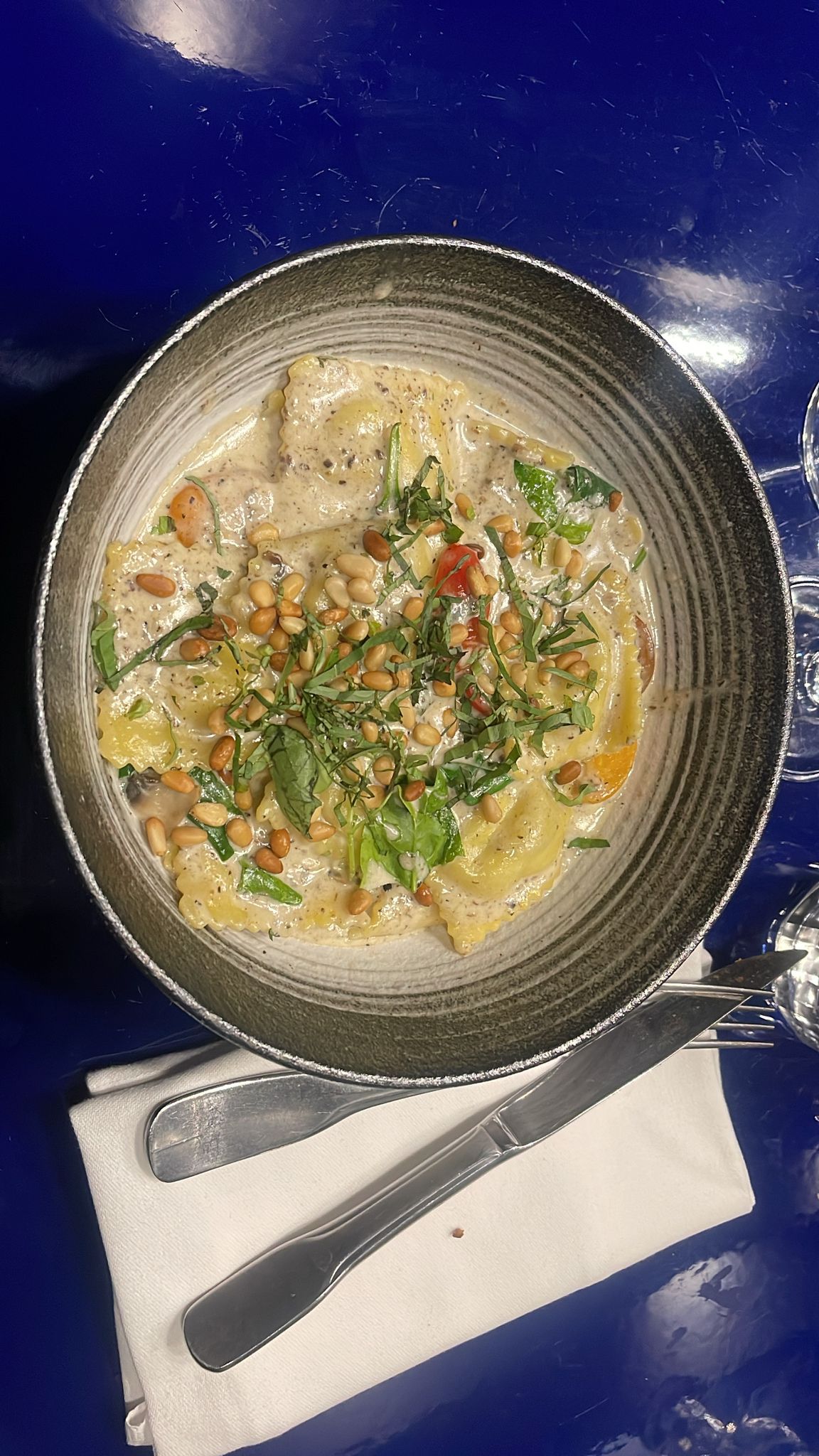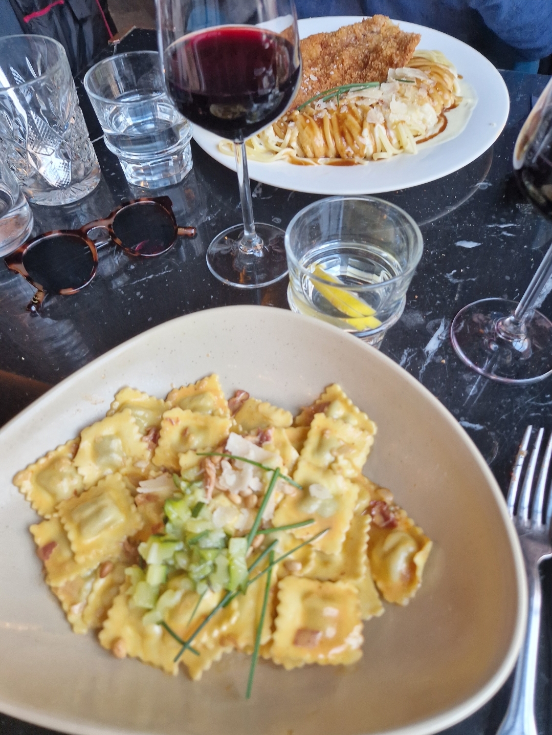 Alors nous avons pas réservé, on a donc été placé dehors, le chauffage en suspension est très élevé! Les serveuses sont gentilles mais un peu froide par moment. Les repas servies sont bons mais quelques détails à revoir (beaucoup d’huile dans le plat au pesto). Le serveur qui nous a ramené les plats et les vins (très bons) était très sympa ! Les prix sont assez élevés. La personne du comptoir pour le paiement était agréable. J’ai pu découvrir le restaurant mais je ne suis pas si fan.