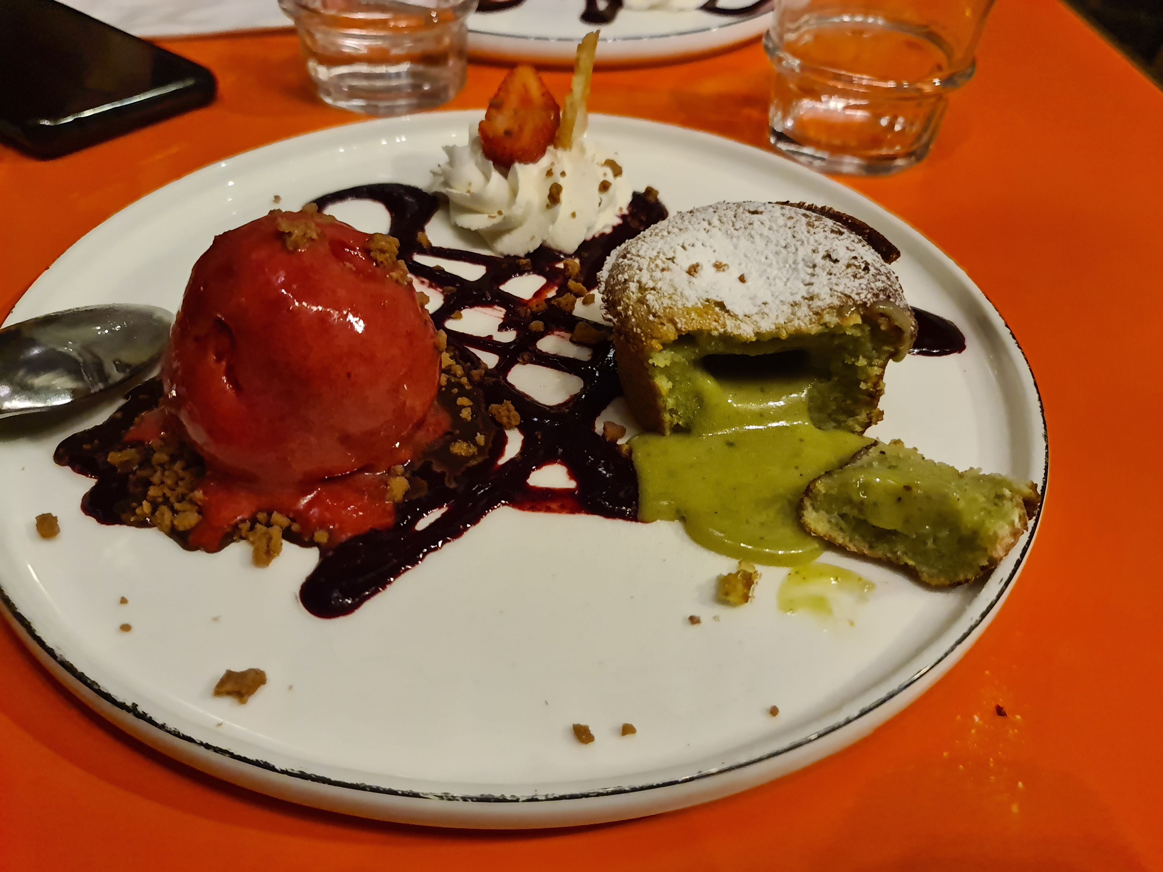 Très bon accueil, ambiance sympatique, une équipe jeune et dynamique, à l'écoute des clients. Côté repas, un délice, ce n'est pas la première fois que nous y mangeons, jamais déçu, les pâtes les sauces les petits légumes.....vraiment au top. Côté desserts nous avons testé le tiramisu, très bien présenté, avec de la recherche et de plus très bon et le moelleux a la pistache, il porte bien son nom, très bon. Les tarifs sont abordables. Nous y reviendrons avec plaisir