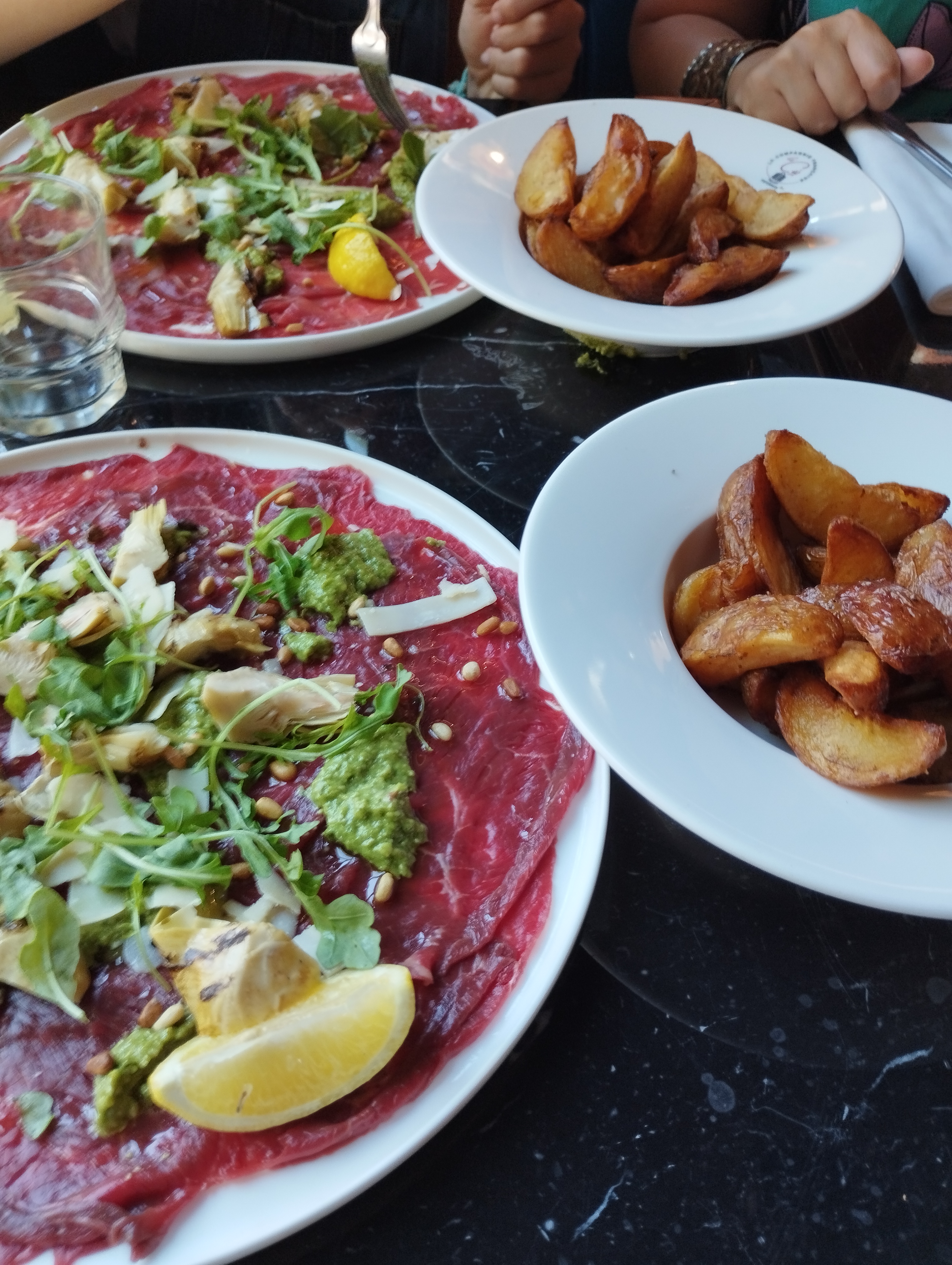 Bruschetta, Tartare de saumon et carpaccio de bœuf excellents !! La salade de fruit régal 😊 Très bon accueil, moment très agréable. Une bonne adresse sur Toulouse..