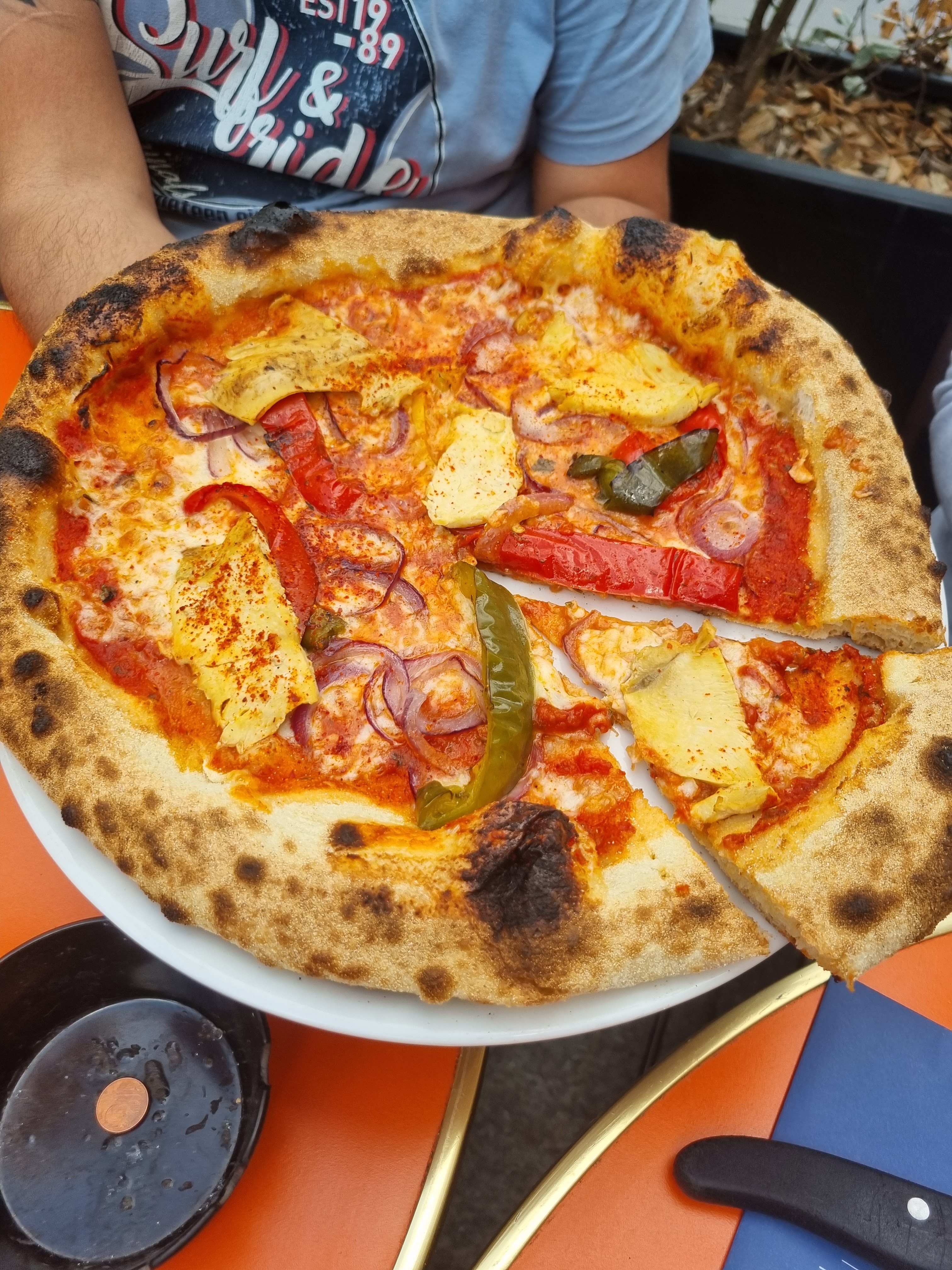 Nous avons mangé en terrasse la pizza était bonne ainsi que le fondant à la pistache, un peu chère à mon goût mais cela reste un abordable. Très bien localisé, grande terrasse, personnel à l’écoute et sympathique. Un peu d’attente le midi, à part ça je recommande. 8/10
