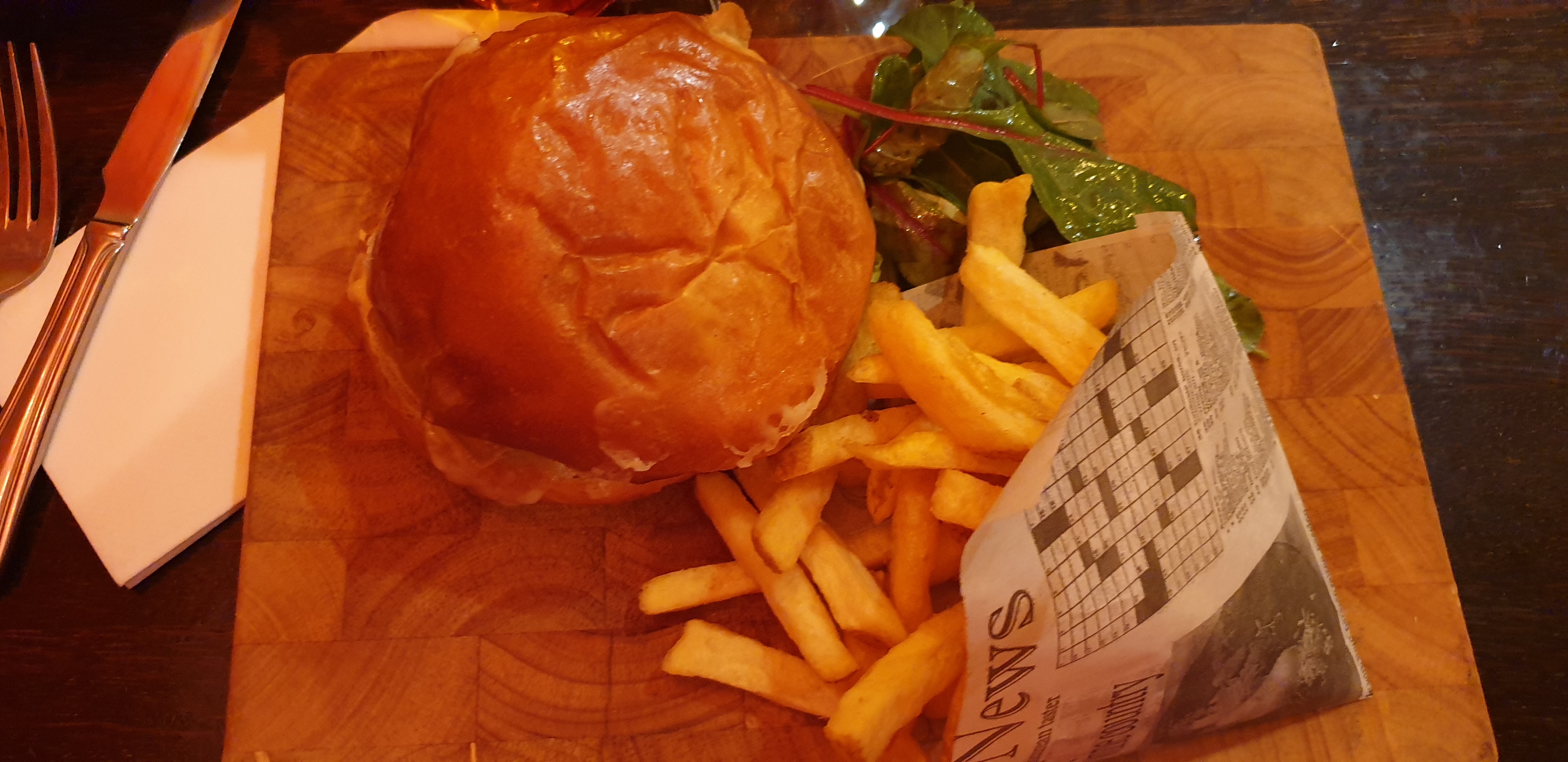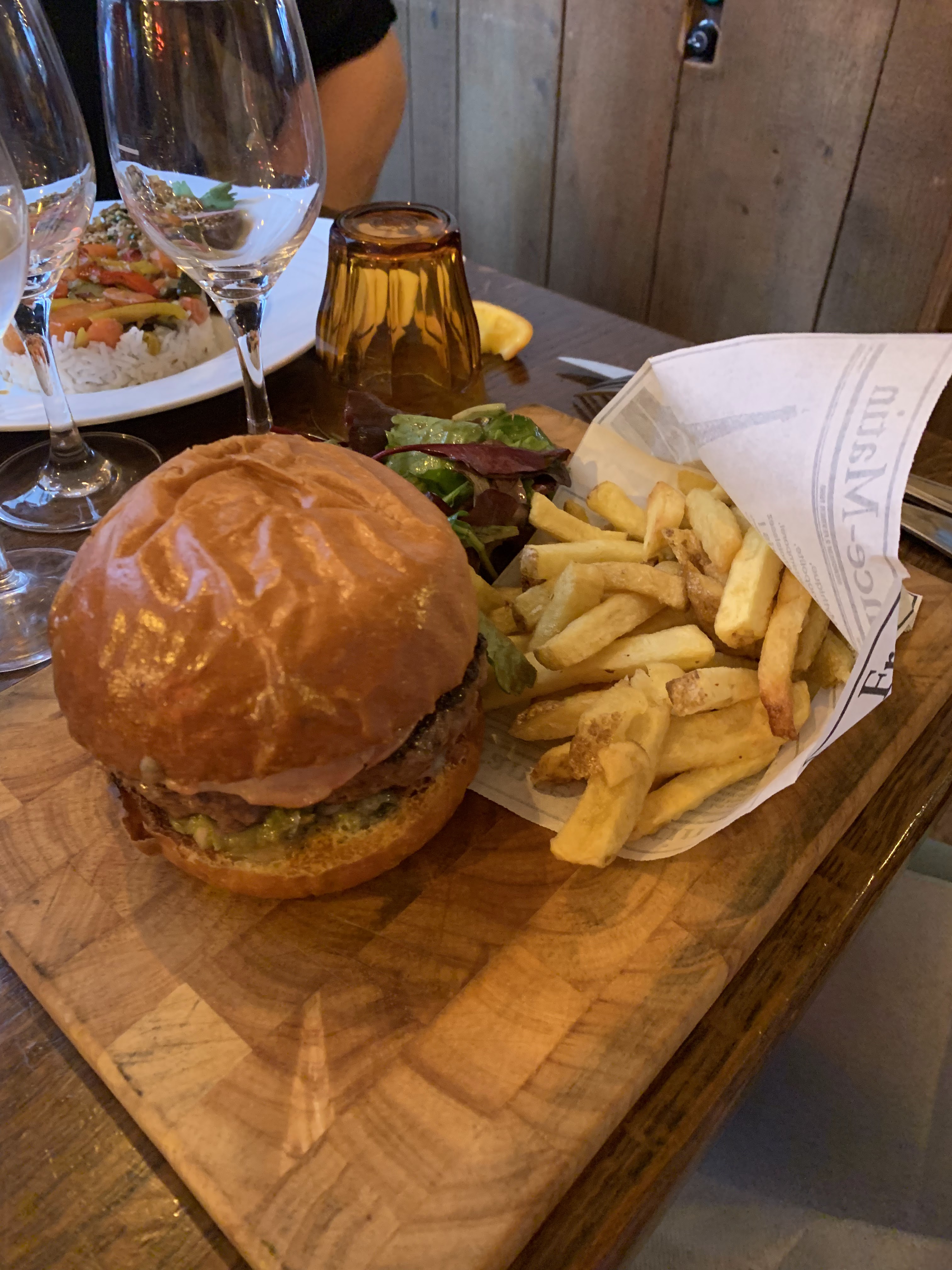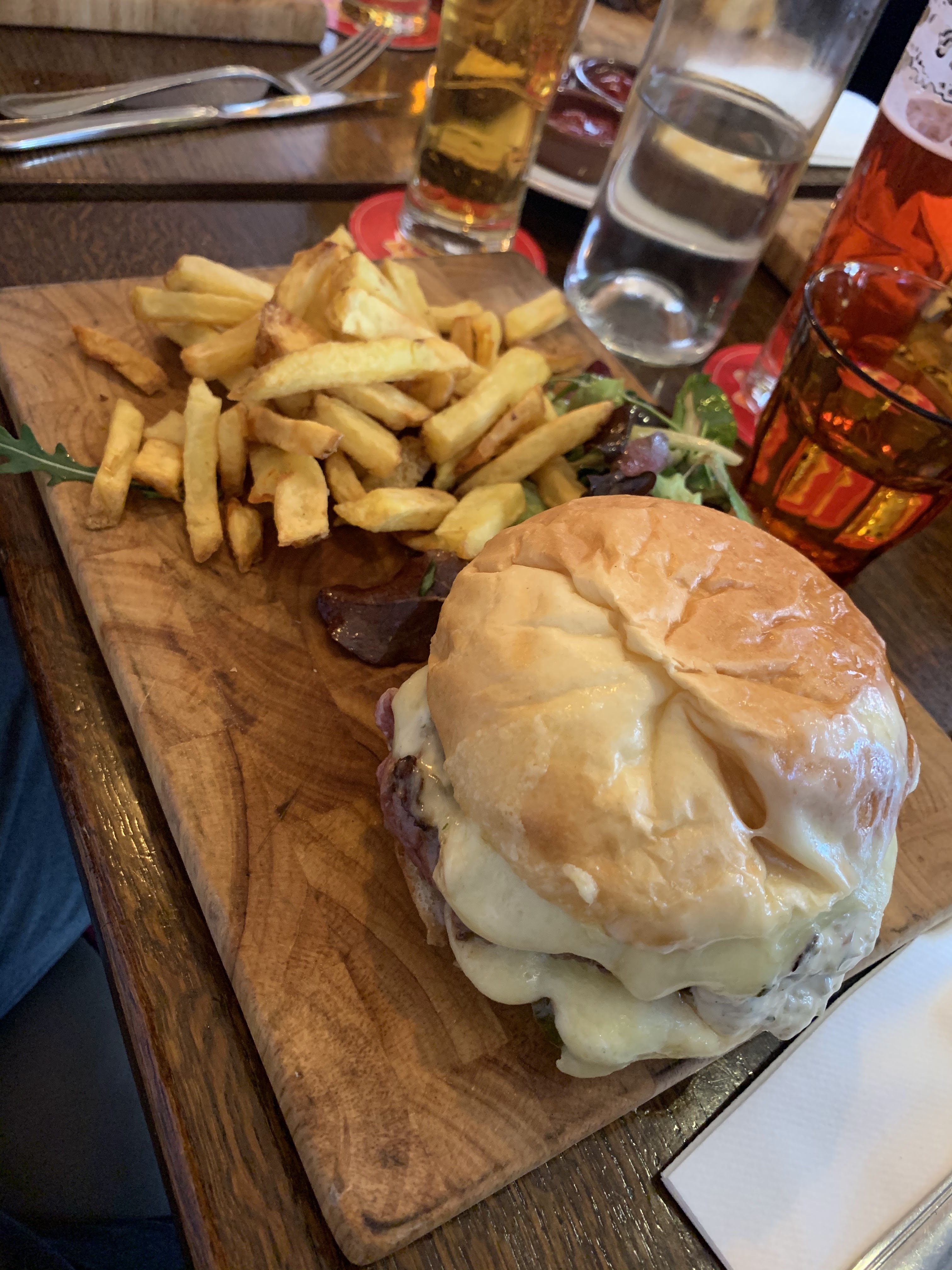 Cadre et ambiance très cosy Très bon accueil Hamburger très très très bon !