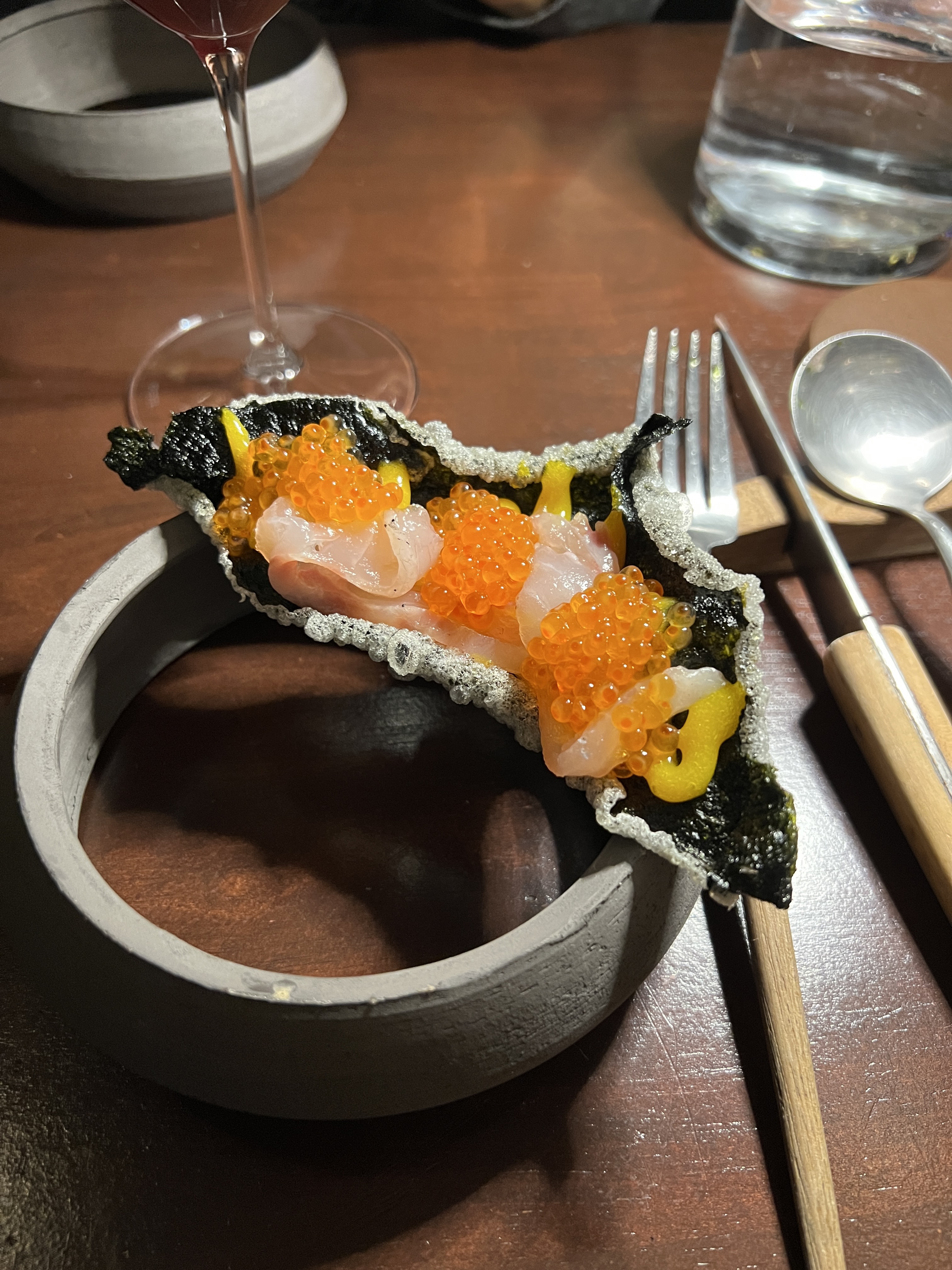 Ce petit restaurant est tout ce qu'il y a de formidable dans la cuisine fusion : le monde de l'umami et de la fermentation a été parfaitement intégré à la créativité, à la rigueur et à la volonté caractéristiques de laisser les ingrédients parler d'eux-mêmes dans la cuisine française. Le service était impeccable, créant une atmosphère détendue qui vous ramène à la raison pour laquelle il est si amusant de manger de la bonne nourriture. je lui donnerais 12/10 si je pouvais
