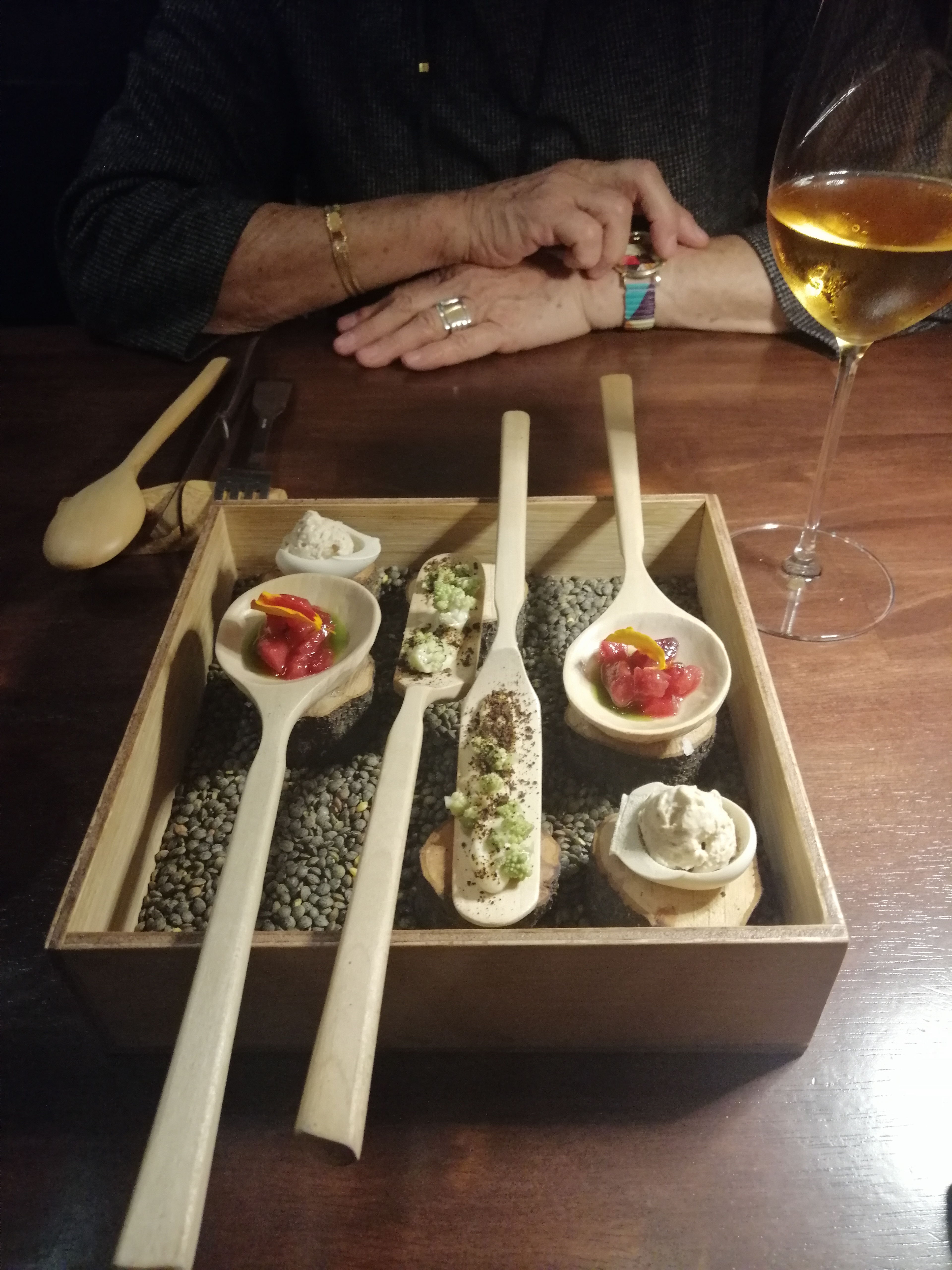 Soirée decouverte du concept 8 plats associés à 8 vins differents Divin. Raffiné. Avec une équipe passionnée prenant le temps de partager son savoir-faire Lydie et son ami...
