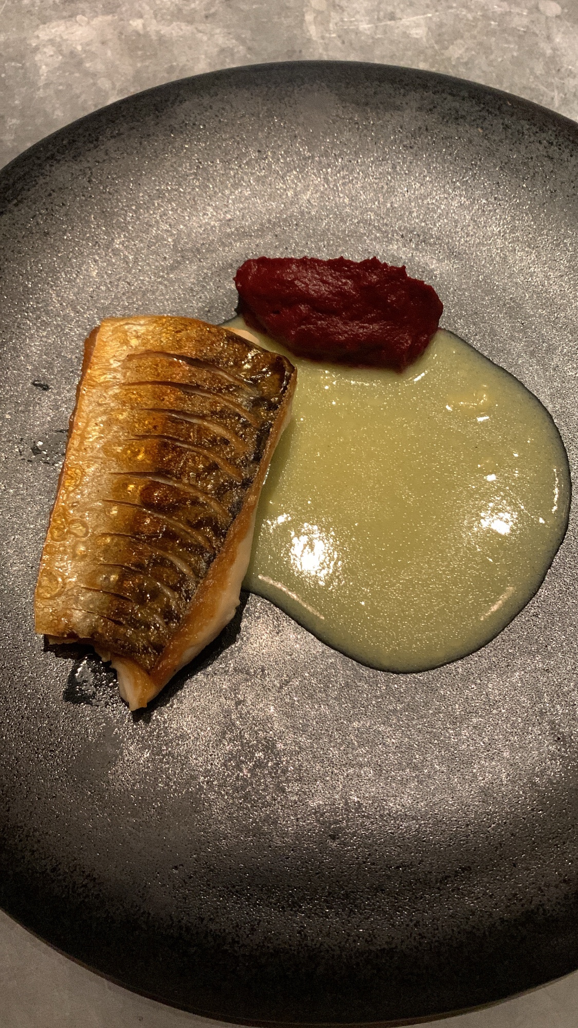Excellent restaurant gastronomique !!! Tout d’abord le cocktail était très bien préparé tout comme l’entièreté des mets ! Menu de saison d’Hiver basé sur la fermentation et ici plus précisément sur le poisson et les fruits de mer. On sent une véritable maîtrise dans l’équilibre des plats mis à part quelques petits couacs sur le pré-dessert. L’ambiance est parfaite à mon goût ! On s’y sent bien, les lumières apportent un côté intimiste et unique au lieu ainsi que le style musical qui change des adresse plus classiques (hip-hop / rap) Le service est très agréable et on sent l’intérêt que porte chaque personne dans la bonne mise en scène du menu et des dégustations.