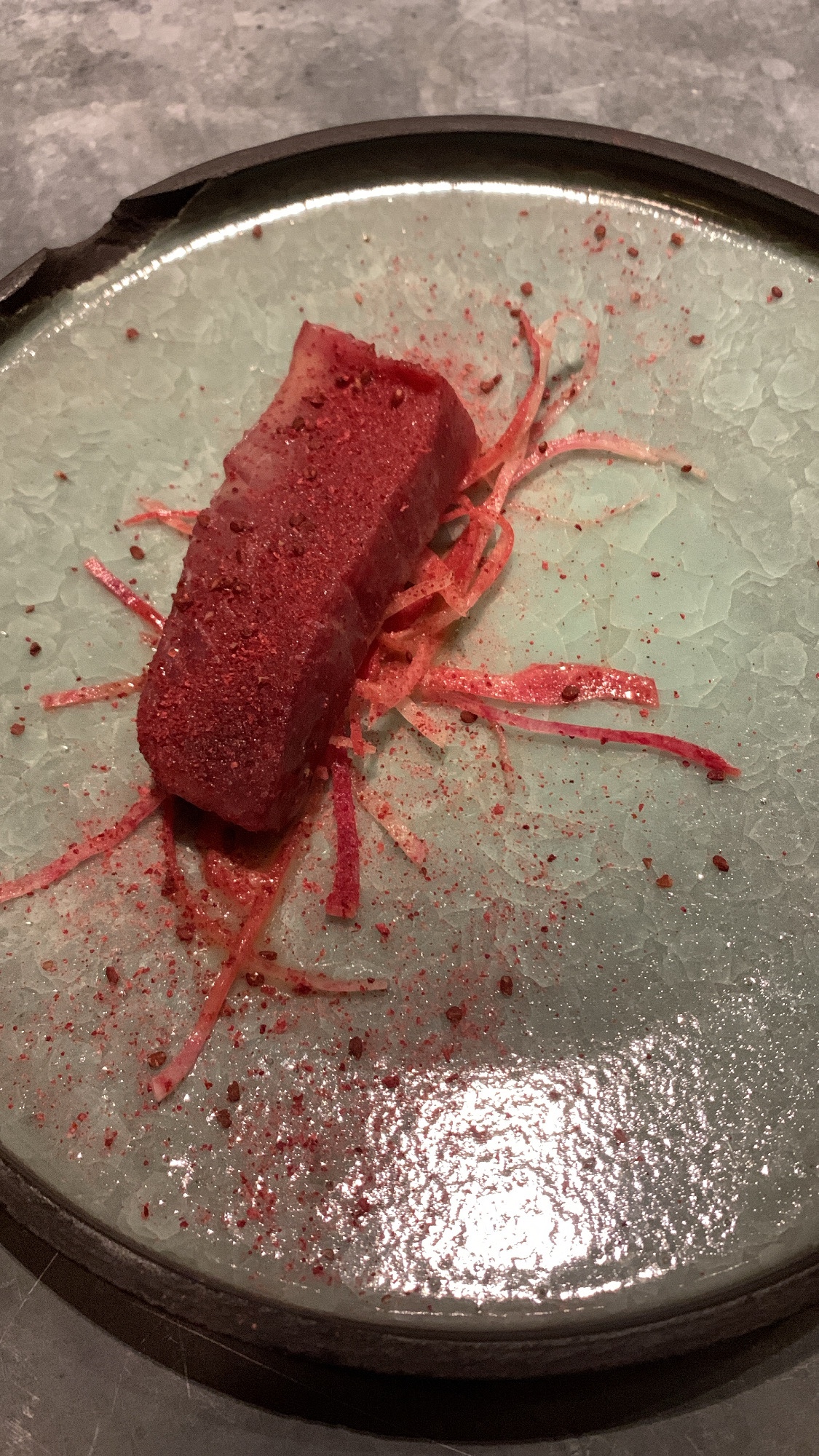 Une très belle adresse à découvrir à Toulouse. Probablement l'un des meilleurs restaurants que nous avons fait ces dernières années. Le menu en 8 temps est souvent étonnant par les saveurs très originales proposées et chaque plat est un réel régal pour les papilles en plus d'être bien présenté dans une vaisselle minimaliste, brut, comme j'aime particulièrement. À chaque fois que nous y allons, nous ne sommes jamais déçus. Vous êtes la seule adresse capable de faire aimer un dessert à mon mari c qui est un véritable exploit ahah! . Je vous laisse découvrir le dernier en date, une merveille gustative, on a même raclé l'assiette avec notre doigt...(pas bien, mal élevés que nous sommes) quand personne ne nous regardait pour ne pas en perdre une miette! C'est pour vous dire... Allez-y, courez-y!
