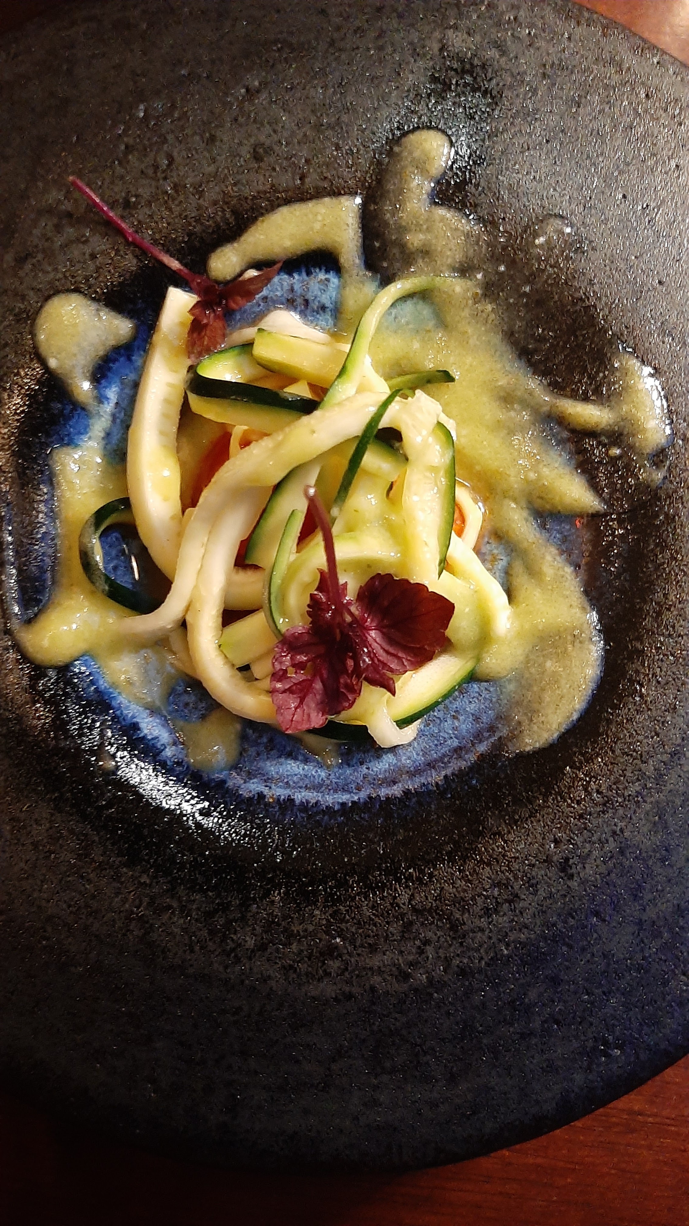 Une expérience gustative incroyable, dans un cadre chaleureux et cosy. Un accueil bienveillant, simple, on se sent bienvenu dès les premiers instants. Et surtout une ligne directrice tant dans la cuisine, les vins que dans le service... Merci à mon ami qui m'avait conseillé d'y aller les yeux fermés et de me laisser guider... Bravo. Et une spéciale admiration pour le chef, qui pousse sa vision et son don de la cuisine jusqu'à réaliser lui-même tous les plats de service sur son tour de poterie, à ses heures perdues.......