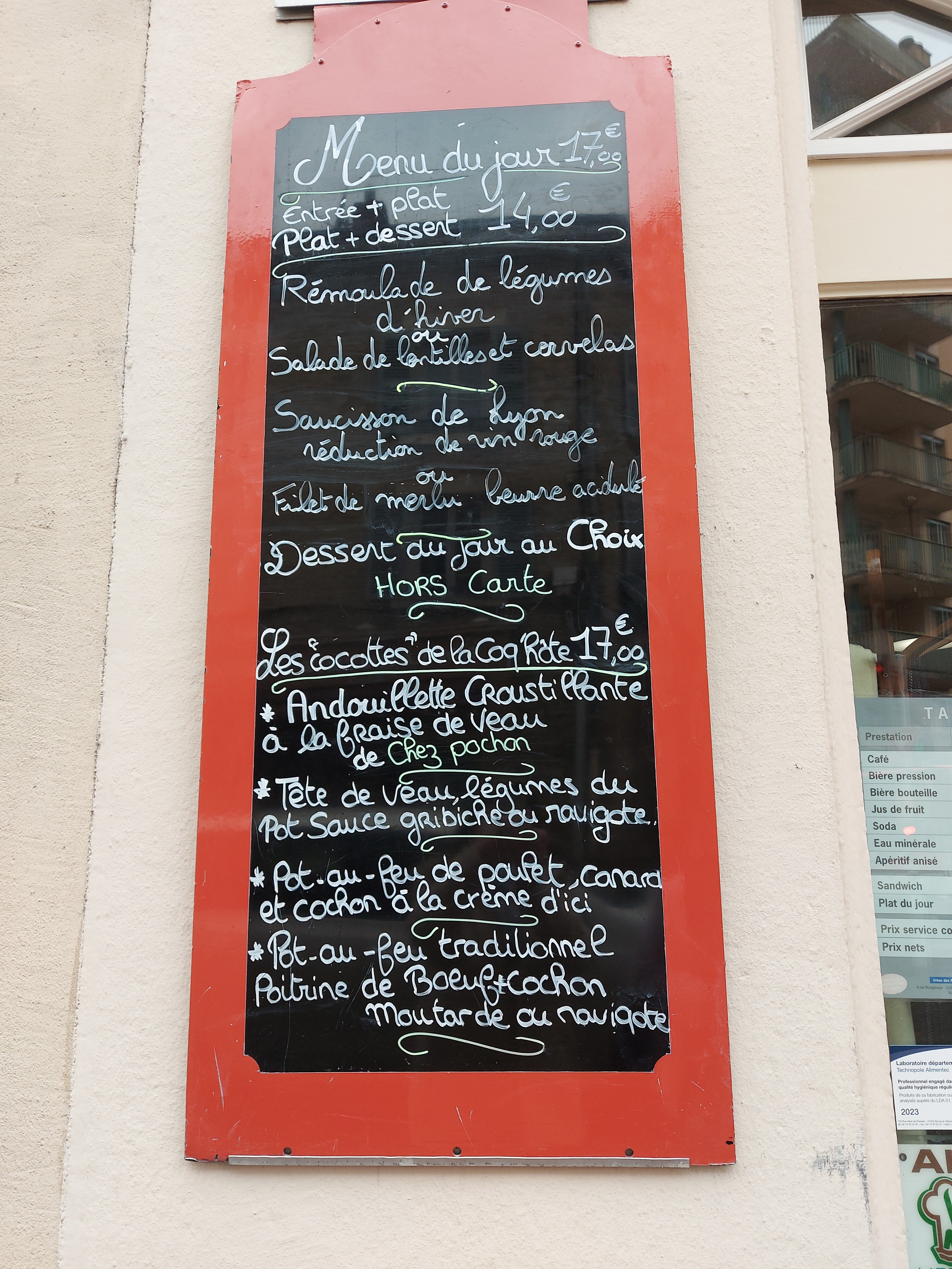 Menu du jour extra avec des plats fais maison, le tout à un tarif très abordable