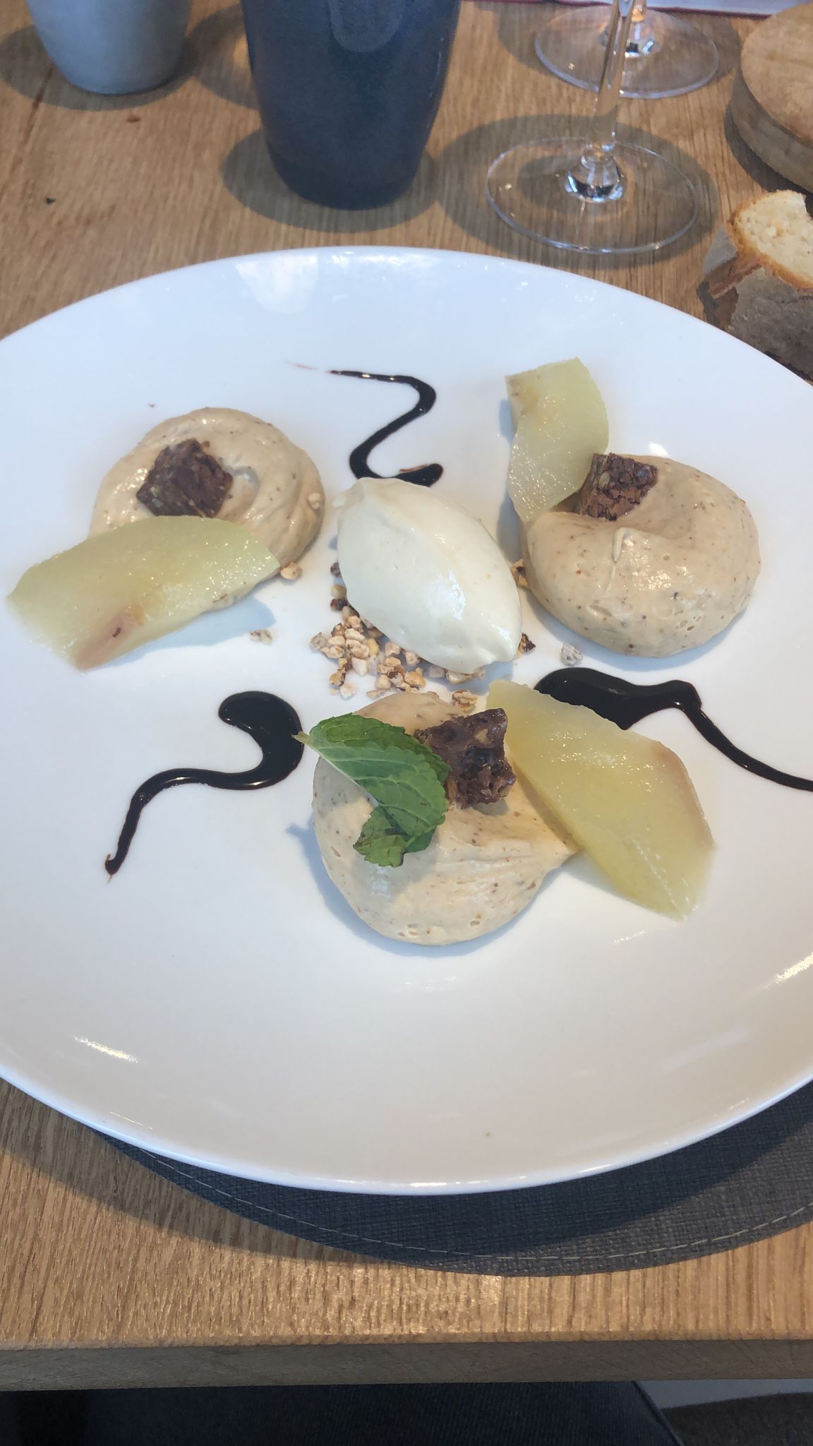 Très bonne découverte dans le coin, beau cadre, des saveurs raffinée, équipe professionnelle, belle carte des vins de la région aux prix raisonnable. En tant que carnivore j'aurais préféré un quantité de la viande plus élevée, 5 étoiles quand même car c'est simplement un très bon adresse ! Je vous conseille de déguster ce bouteille de rouge, cépage Gamay croisée avec un cépage allemand, très bon vin 🍷