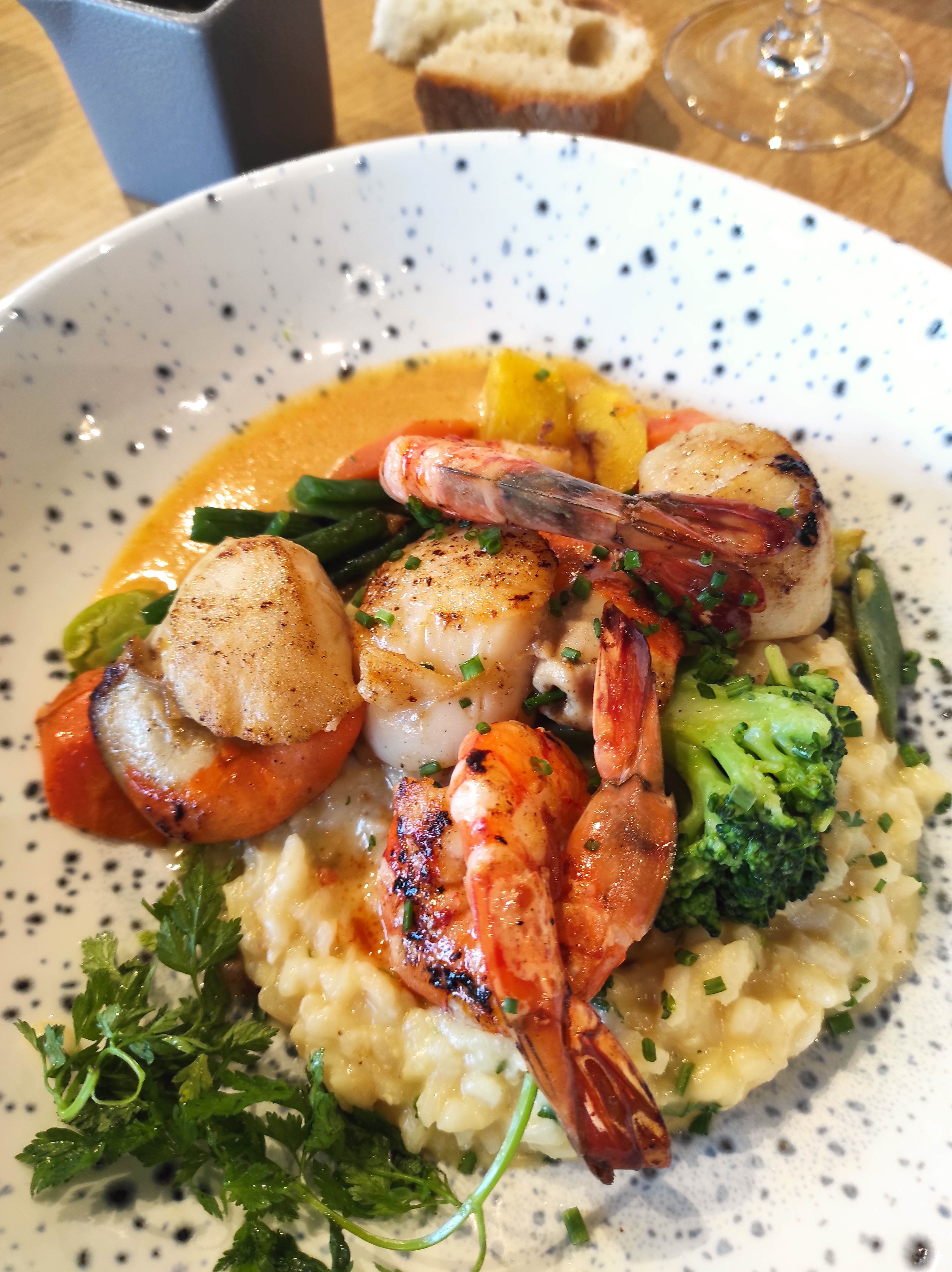 Excellente découverte ! Nous sommes partis sur les suggestions du chef avec un gravlax de saumon en entrée, une noix de Saint Jacques/Gambas et un boeuf bourguignon, puis un finger de mousse de chocolat au lait pour finir sur une touche sucrée 😋 Rien à dire sur la présentation, le goût et la quantité. Tout était là ! Le service est parfait, les serveuses prennent le temps d'échanger avec vous lors de leur passage entre les tables. Nous avons passé un agréable moment et comptons bien revenir pour goûter d'autres plats.