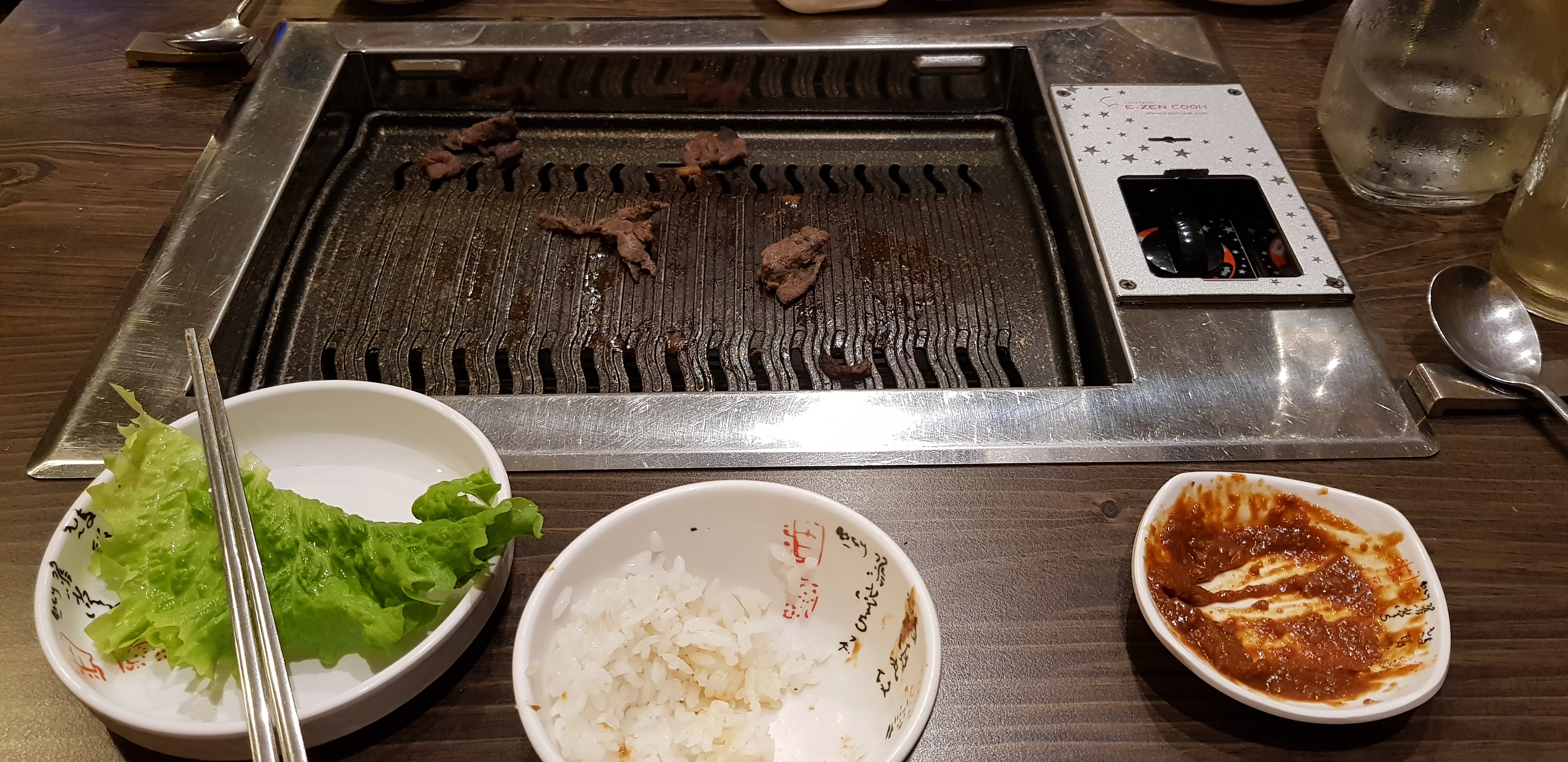 J'ai adoré manger dans ce restaurant ! Beaucoup de personne se plaignent des petites quantités et j'avais quelques aprioris, mais finalement c'était juste suffisant. On a pris un barbecue coréen qui comprend 180g de viande, riz et 3 bacchan (petits plats additionnels) par personne. Le riz était comme il devait être, le kimchi n'était pas trop fort, la sauce ssamjang était parfaite et la viande était très bonne! (Porc et bœuf mariné). J'aurai juste aimé avoir la version marinée épicée du porc, c'est mon seul regret. Un autre point que j'ai apprécié est la salade supplémentaires gratuite !