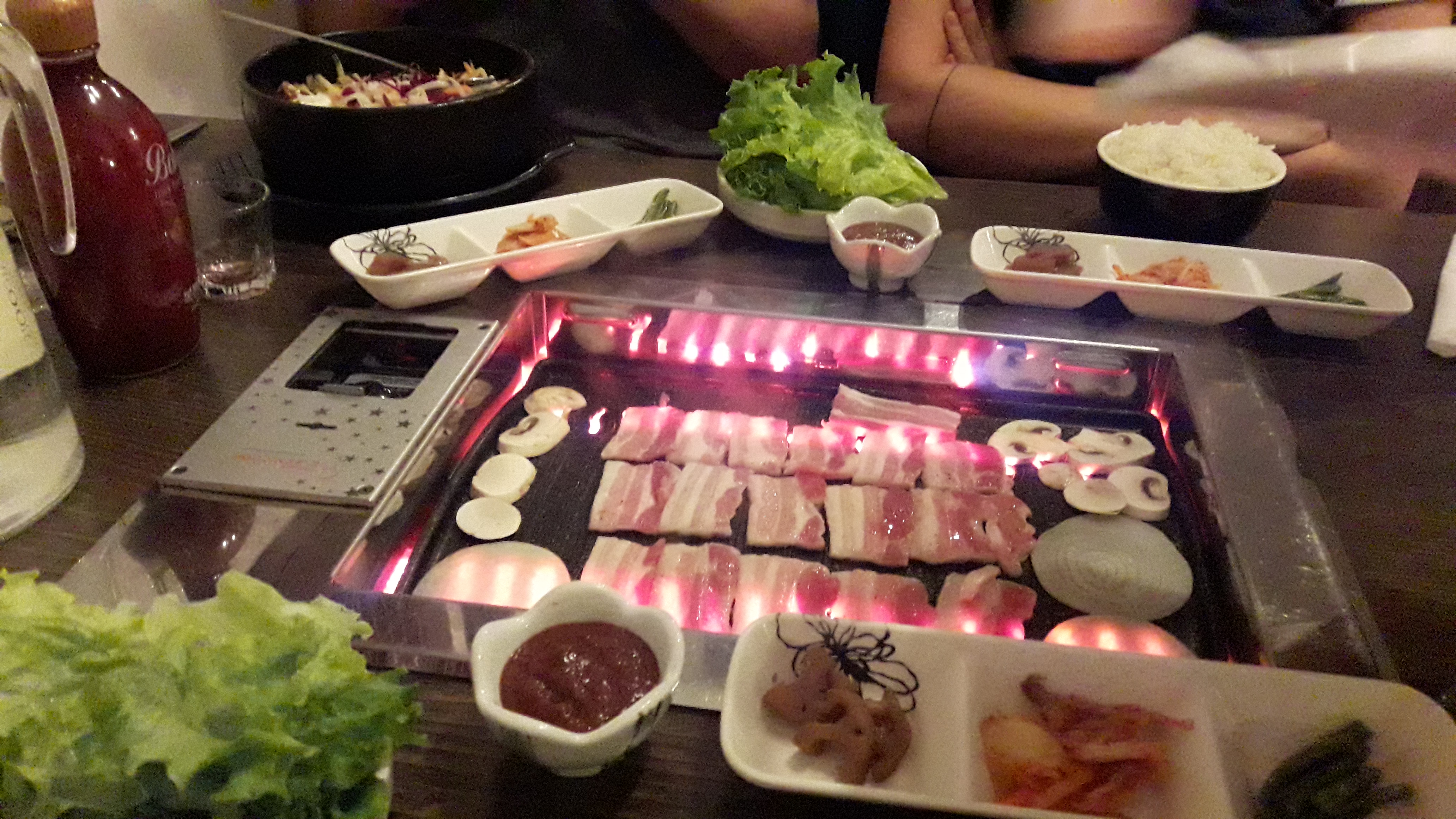 Ambiance très sympathique, avec les plancha intégrées à la table, service impeccable, un peu déçu du barbecue Coréen qui n’était pas la hauteur des 44€ pour 2 personnes