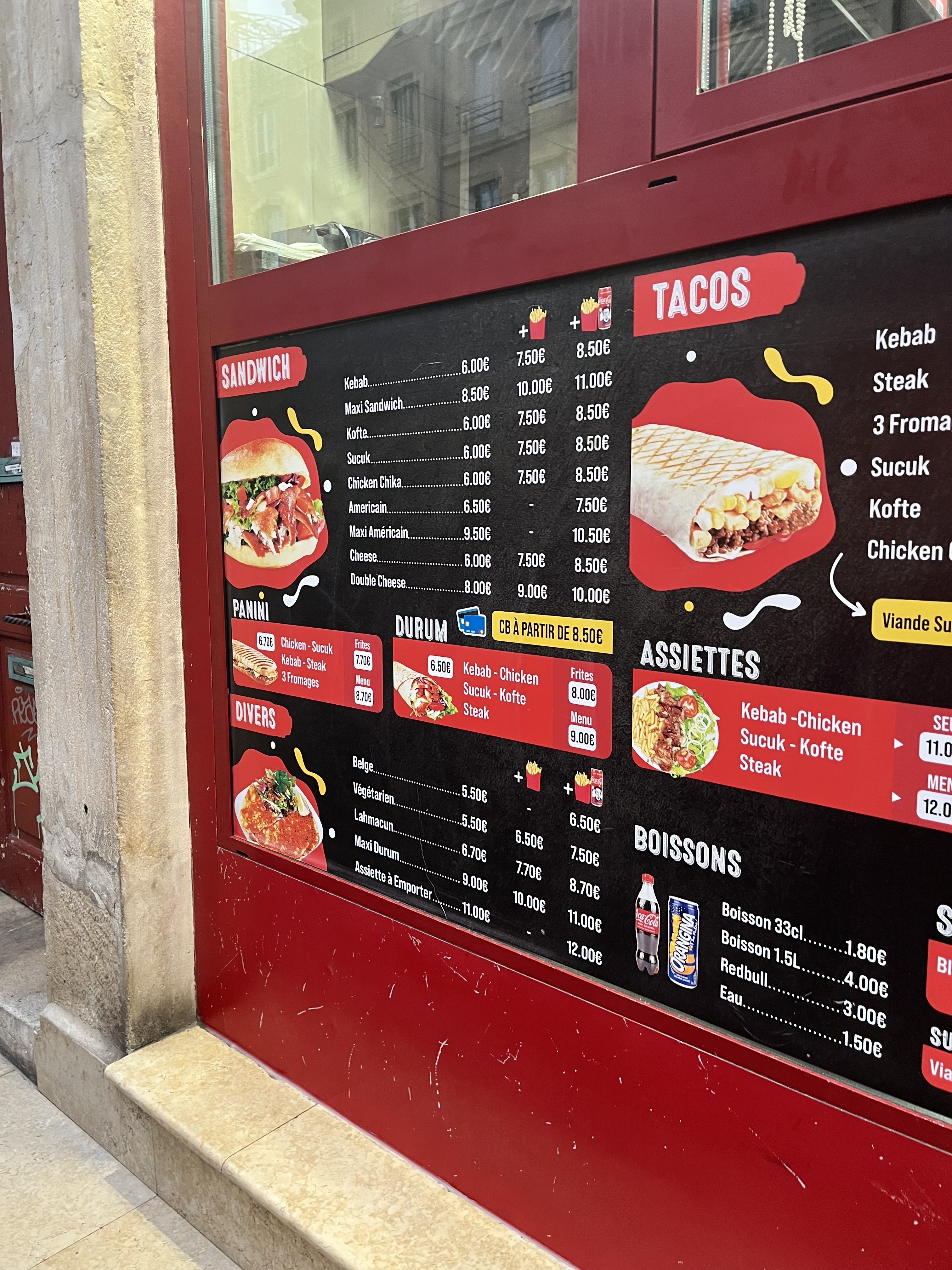Quand le menu est afficher à 8,50 et que l’on te demande 12,50 avec pas une once de politesse. J’appelle ça des voleurs qui profitent que certaines personnes sont éméchées pour pouvoir voler tout le monde. 12,50e un menu kebab, qui m’aurais était servie par un serveur qui me prends de haut. Plus jamais un seul euro que je vous donnent.
