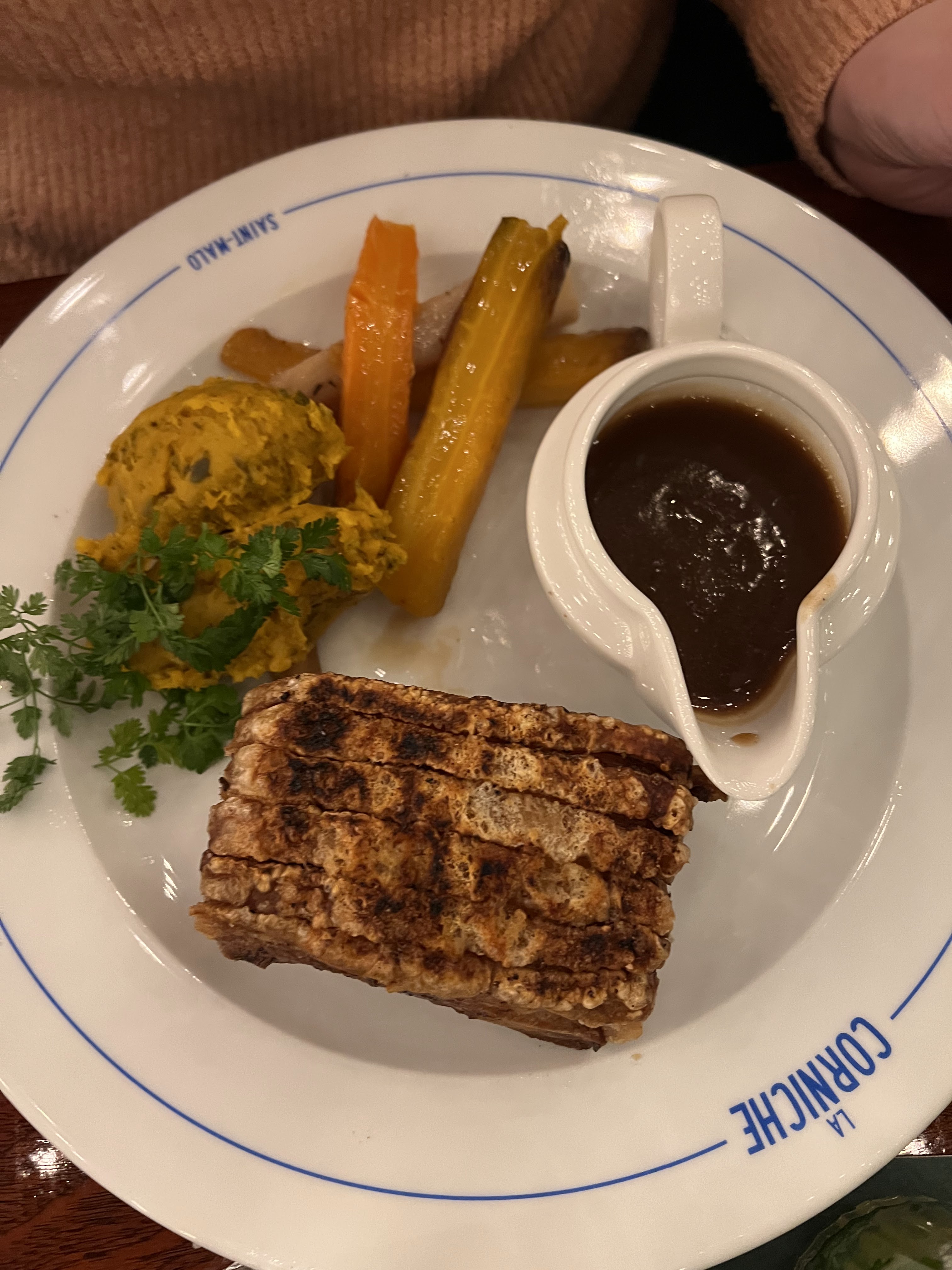 La cuisine manque de raffinement pour un prix si élevé. Le gratin dauphinois n'était qu'un bloc de pomme de terre sec et à part la sauce, rien pour accompagner le filet... A ce prix, un accompagnement de légumes serait au moins le bienvenu. J'ai fini le burger (un peu sec et compact) de ma compagne pour me rassasier. Personnel sympathique mais quelques manquements de service (pour commander le vin il a fallu attendre plusieurs aller-retours du serveur et une cuiller laissée tomber par terre par le serveur au moment du dessert n'a jamais été remplacée). Peut-être lié au monde ce jour là mais pas convaincu par l'établissement dans l'ensemble qui propose pourtant un chouette cadre.