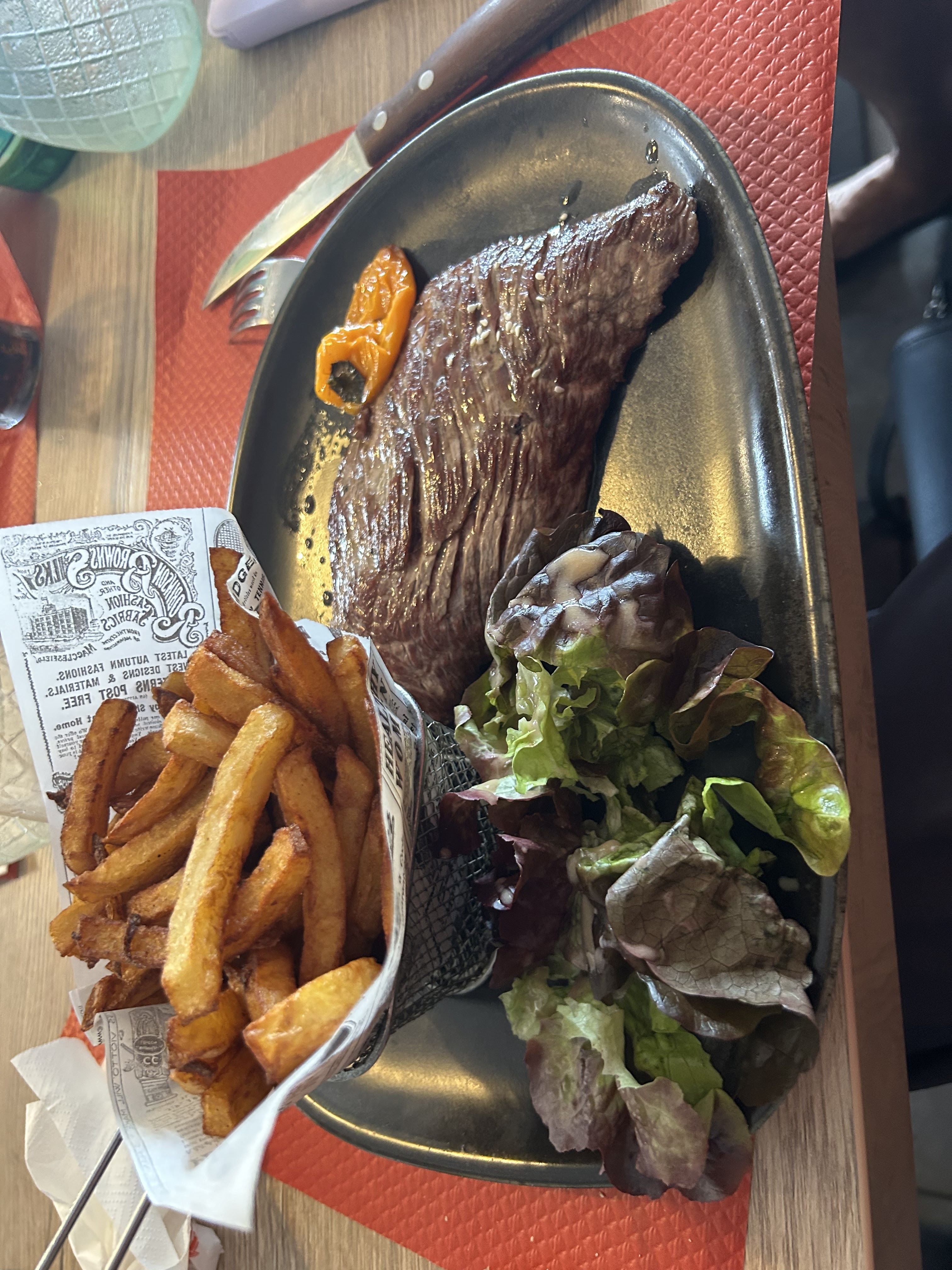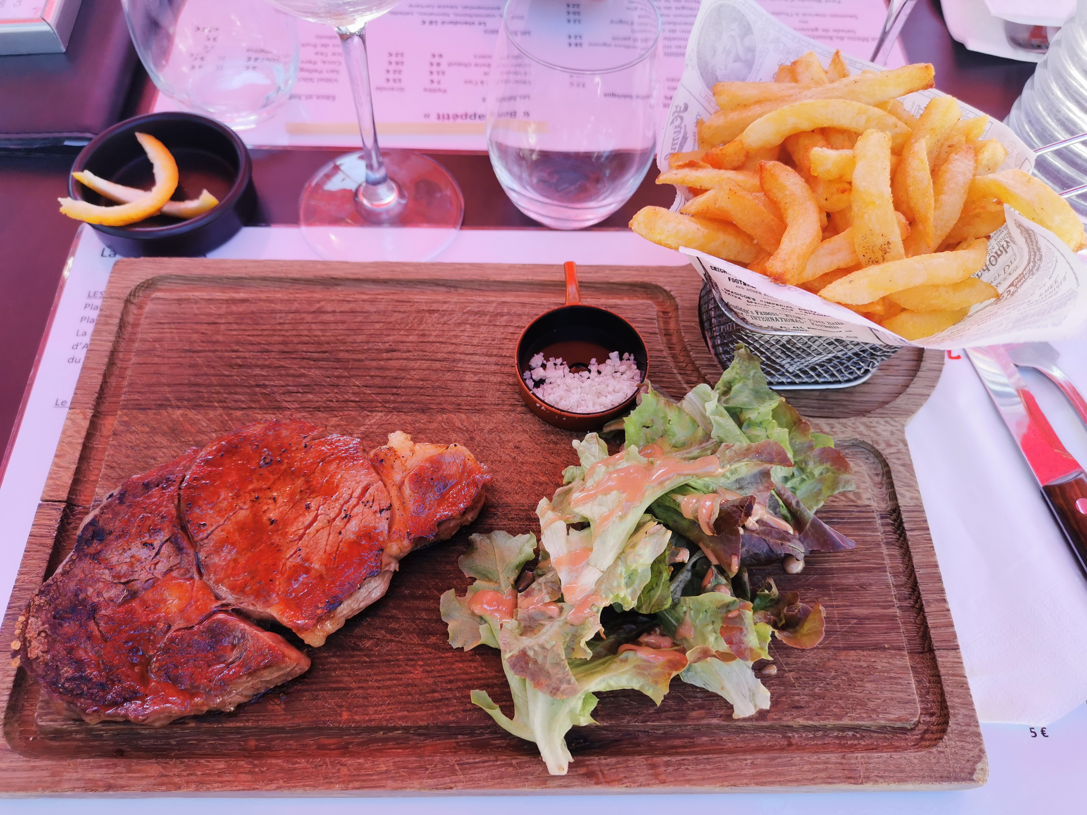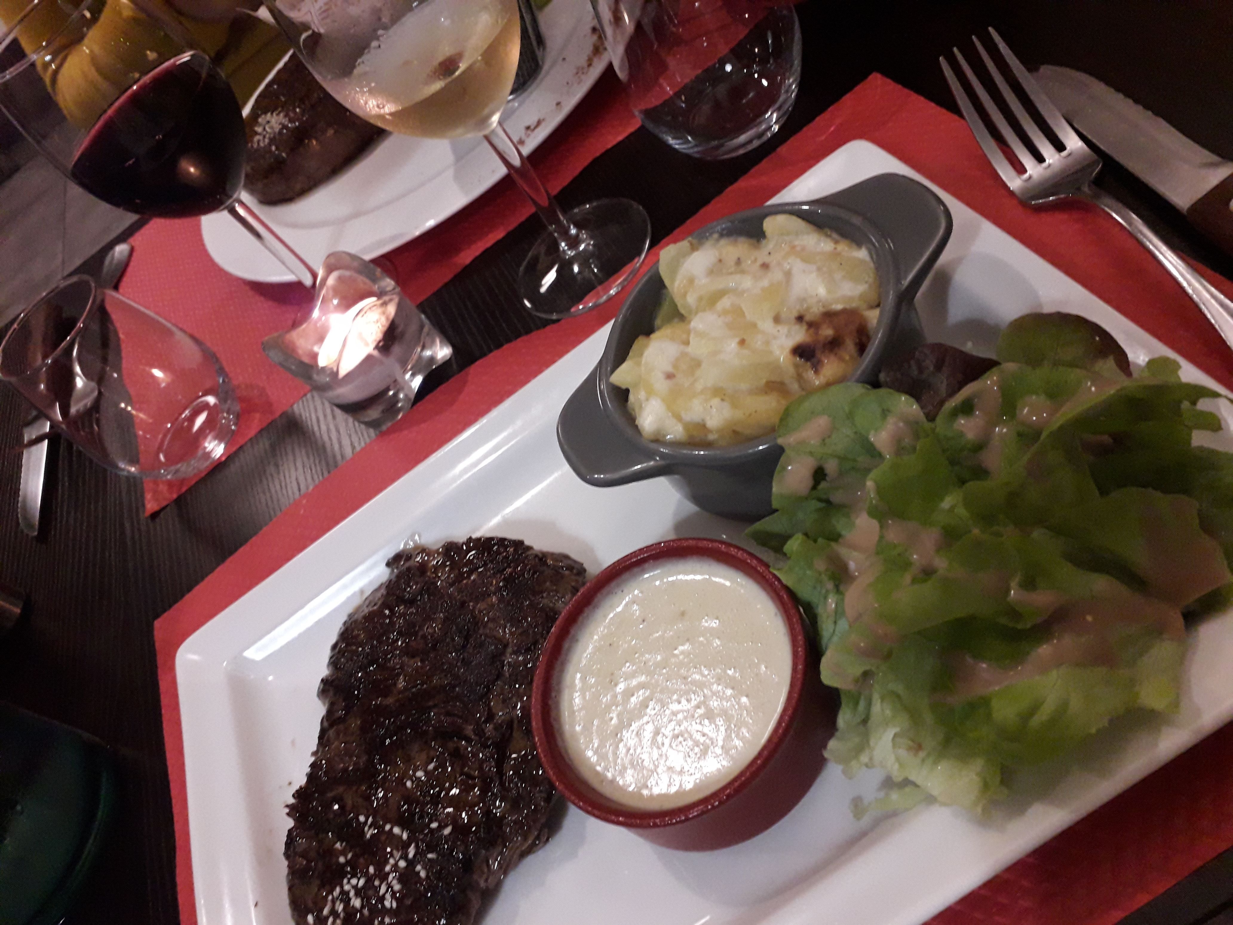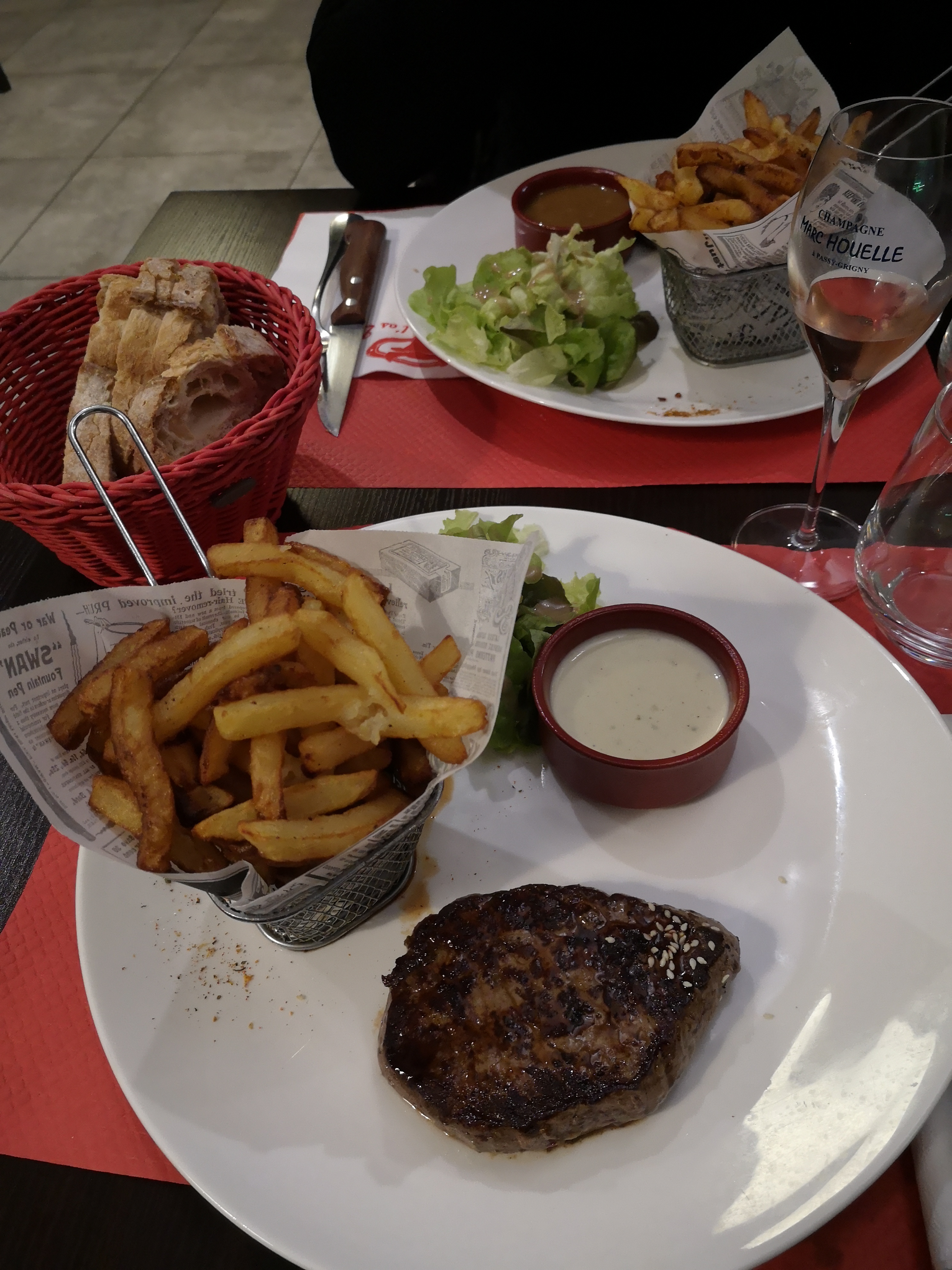 Reçu 30min avant la fermeture en débordant même un peu l'heure. C'est un restaurant pour déguster de la bonne viande, donc je vous conseille de ne pas prendre autre chose au risque d'être un peu déçu (surtout que le prix est assez élevé). La qualité de l'entrecôte que j'ai pris est exceptionnelle, juteuse et fondante, whaouh un régal! La sauce au roquefort est également une très bonne surprise, j'aurais dû en demander une deuxième. Et les frites, malgré le gras de la friture et de l'enveloppe pas croustillante, j'ai adoré le goût sucré et onctueux tout de même ! Je souhaite de tout coeur une très bonne continuation sur cette voie.
