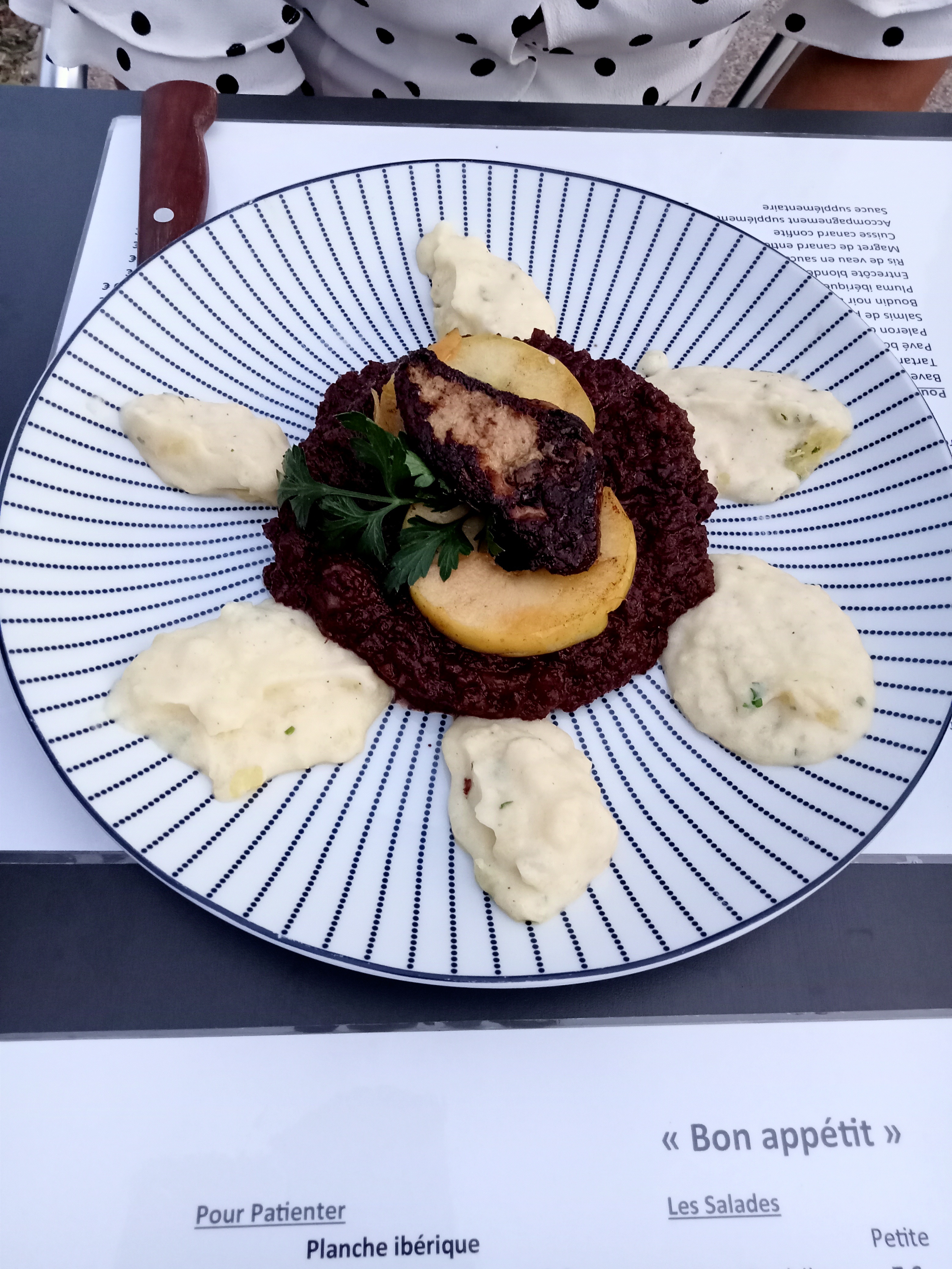 Ardoise des viandes maturées trop loin pour être bien perçue depuis la table, aucun autre support disponible d’après la serveuse « il suffit de vous lever et d’en prendre une photo »… Service des plats avec la sauce de Monsieur dans mon assiette, la serveuse ne rectifie pas l’erreur. Une bouteille de vin rouge ayant été commandée pour être servie avec les plats, il a fallu qu’on la réclame, aucun questionnement quant à qui se trouve être le goûteur, Monsieur est servi alors que c’est moi qui goûte habituellement. Quand au service de mon verre, il y a débordement et dans le verre à eau de Monsieur et sur la table, rien n’est nettoyé et aucun verre à eau propre proposé ni même une serviette sèche. On me retire mon assiette alors que je suis en train de saucer mon assiette. Le tiramisu au Nutella ? Il n’a aucun goût de Nutella, juste du cacao, bref énoncé mensonger. Proposition de ramener le reste de bouteille de vin à notre domicile ? Non, il a fallu que je le demande. Une cliente était en train de vapoter à table, sans aucune remarque de la part du personnel. Sans compter qu’à la table de 4, à côté de nous, ils ont clairement dit avoir l’impression de ralentir le service quand on leur a demandé s’ils avaient terminé. C’était une première et une dernière fois pour nous.