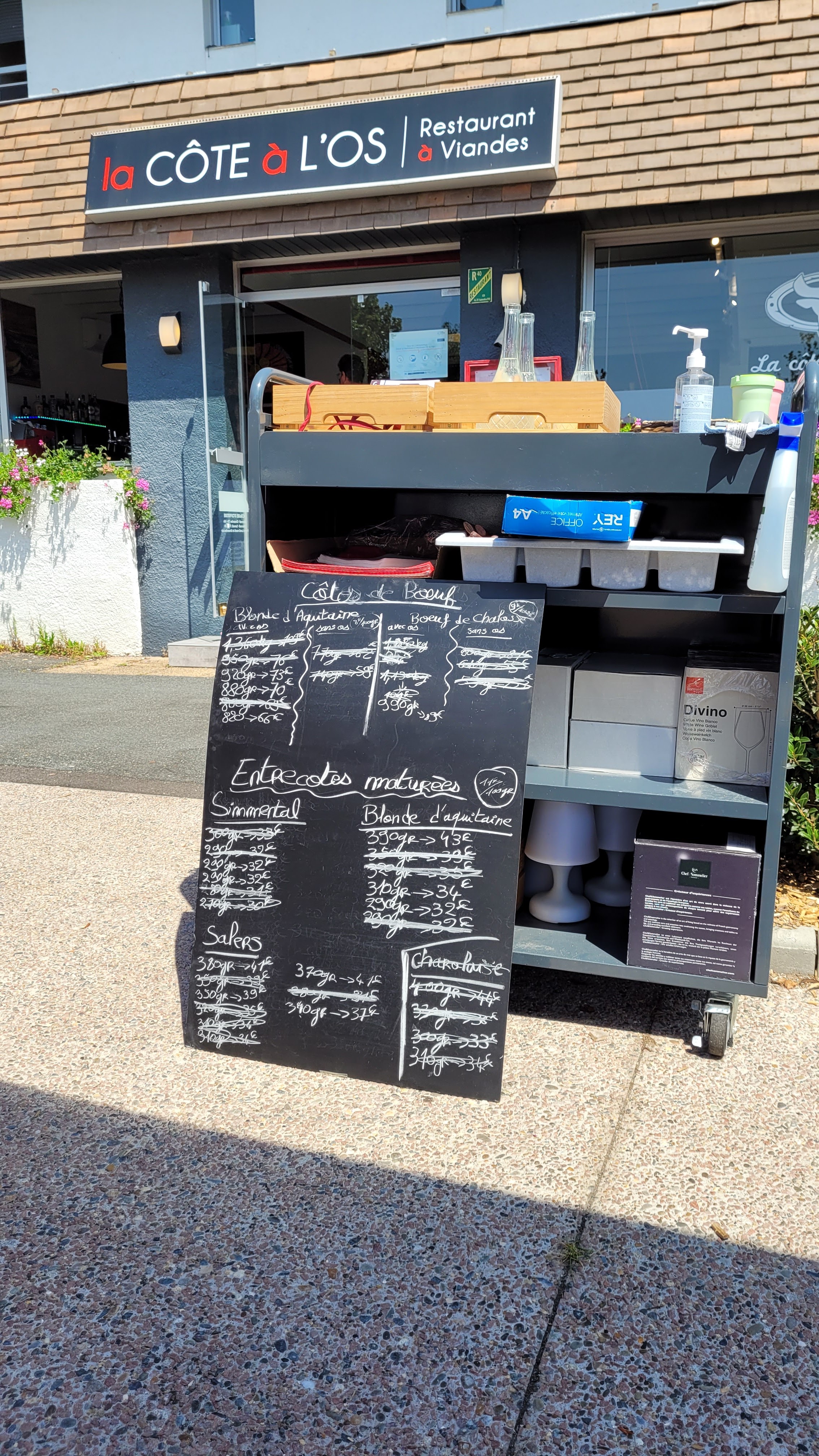 Dès que j'entends Côte à l'Os, j'ai immédiatement l'eau à la bouche. Nous avons découvert ce restaurant il y a un an maintenant et nous n'hésitons pas à faire 1h30 de route pour aller y manger lorsque l'envie nous prend. L'enseigne porte bien son nom et vous y trouverez des côtes de bœuf maturées à l'ardoise. De belles pièces conséquentes et savoureuses. Mais la Côte à l'os c'est également une excellente brochette de gambas et de très bonnes entrées. Mention spéciale pour leurs frites vraiment extraordinaires, je n'en ai jamais mangé de meilleures ailleurs, mais aussi pour le personnel et particulièrement cette dame très agréable qui propose un super service et que nous avons plaisir à revoir à chaque fois.